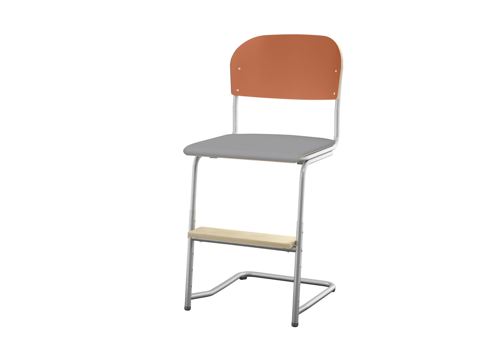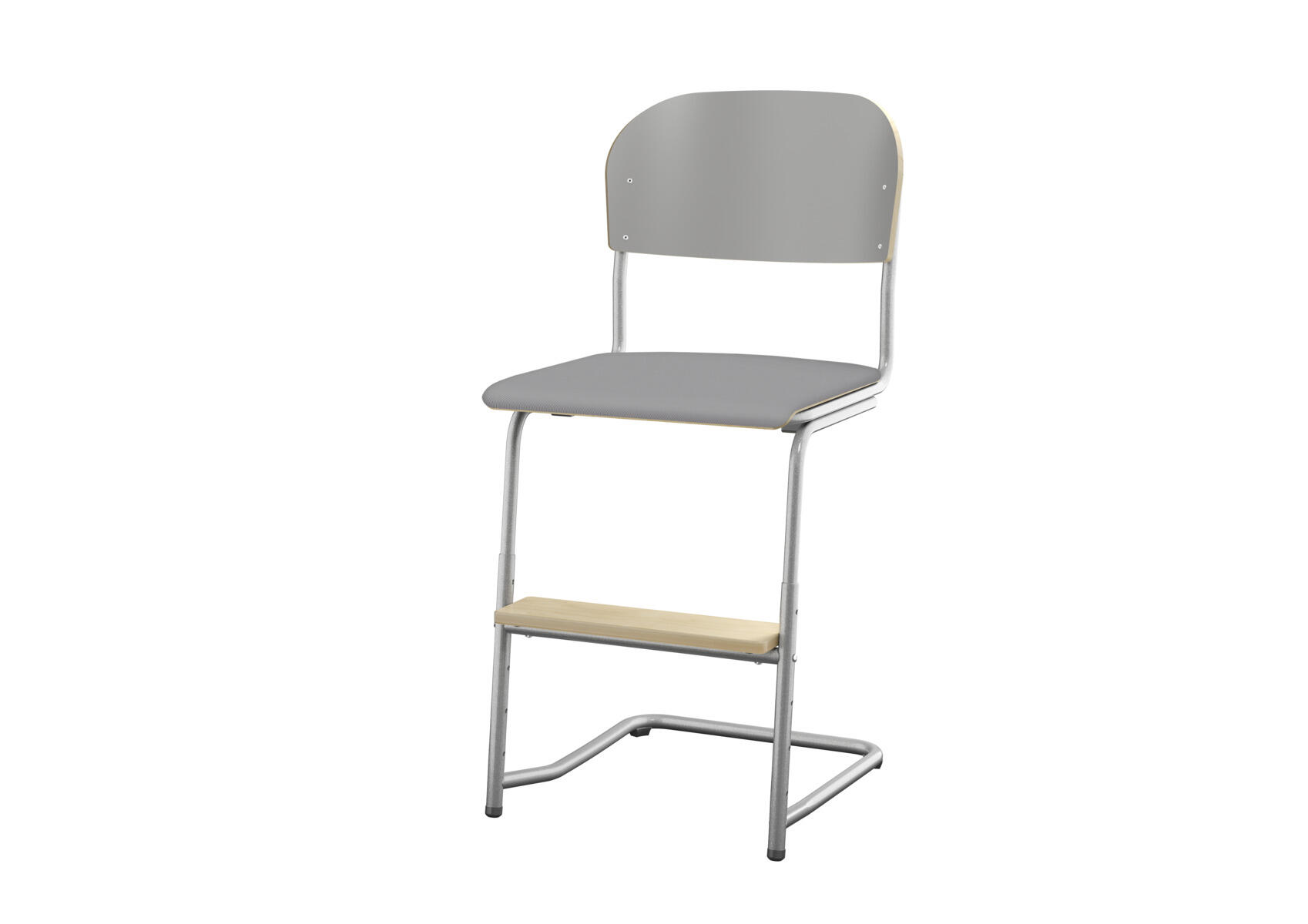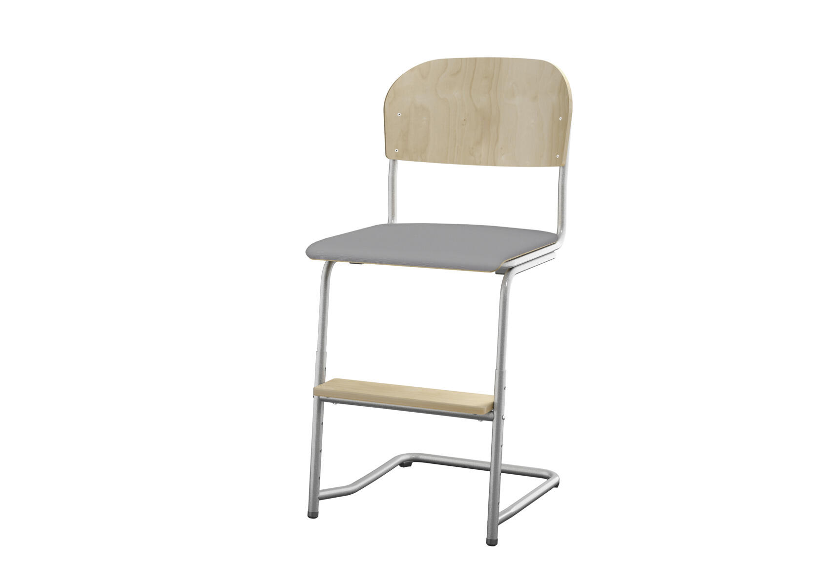 Oppilastuolin istuin ja selkänoja on valmistettu vanerista, pinnassa korkeapainelaminaattia. Istuinkorkeus säädettävissä 38, 43, 46 tai 51 cm. Metalliputkirunko hopeanharmaa RAL 9006. Säädettävät tassut. Lisävalintana istuinpehmuste.