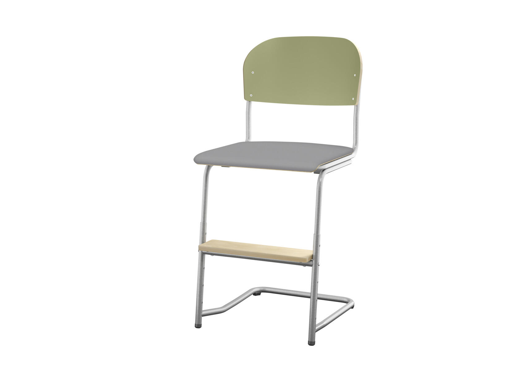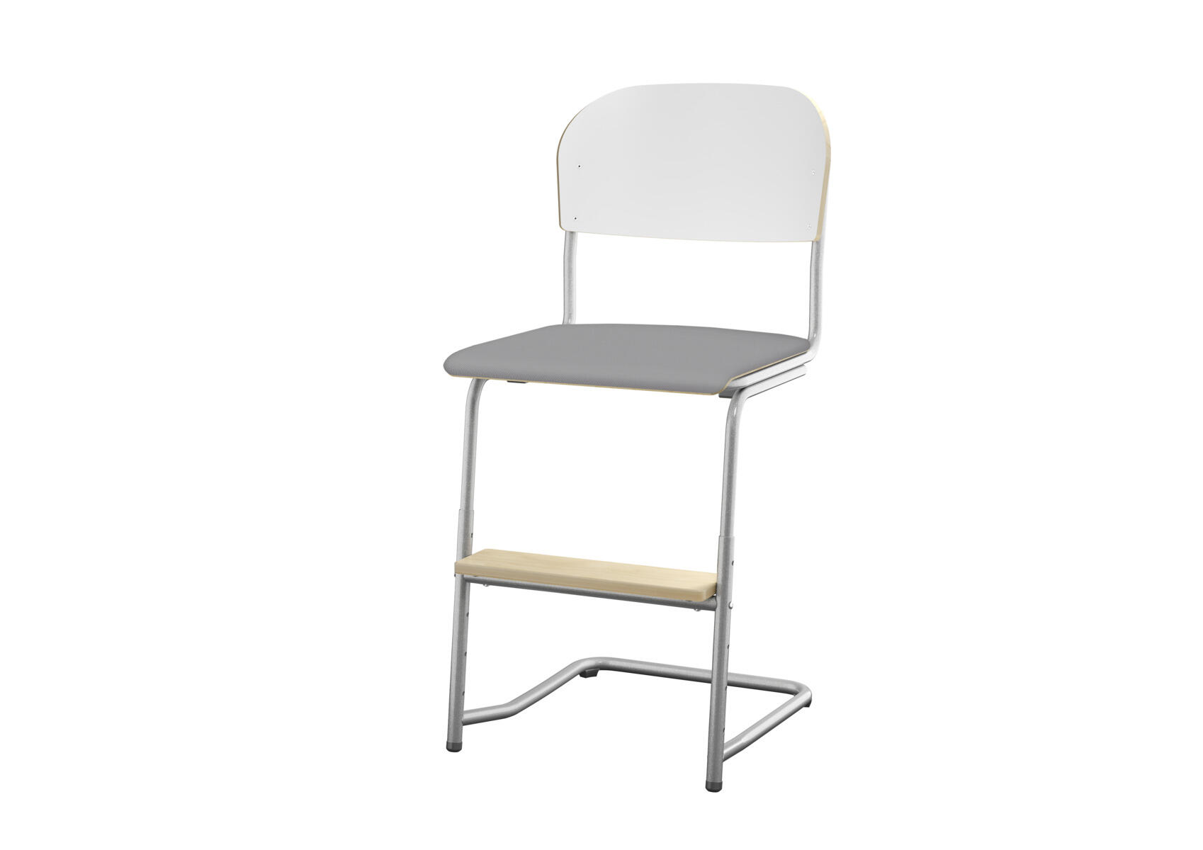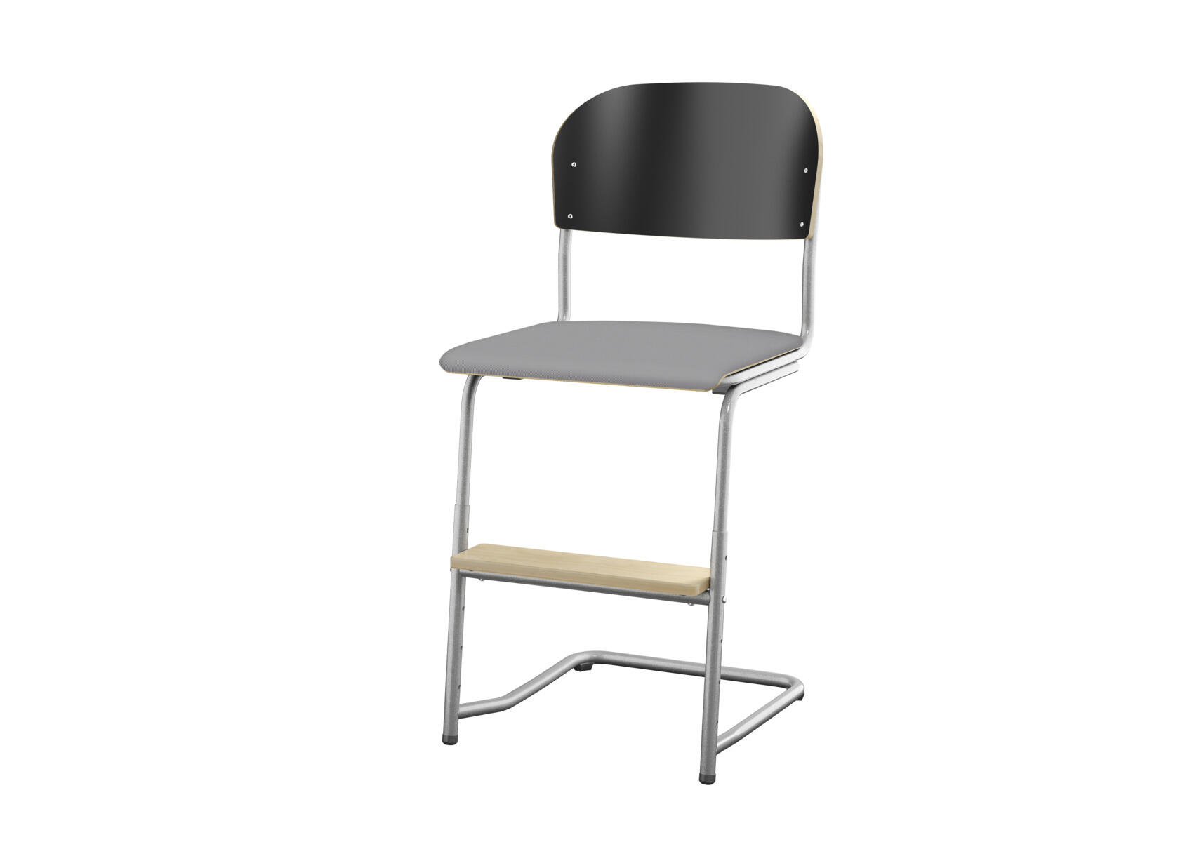 Oppilastuolin istuin ja selkänoja on valmistettu vanerista, pinnassa korkeapainelaminaattia. Istuinkorkeus säädettävissä 38, 43, 46 tai 51 cm. Metalliputkirunko hopeanharmaa RAL 9006. Säädettävät tassut. Lisävalintana istuinpehmuste.
