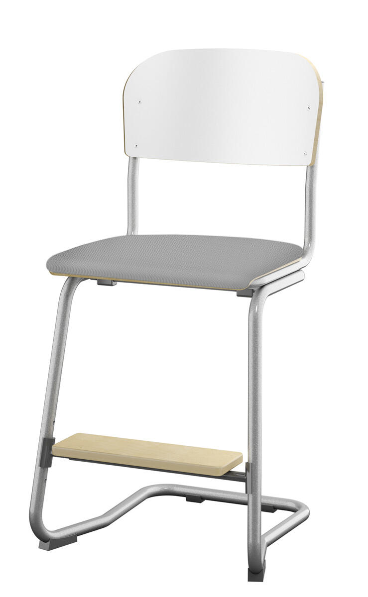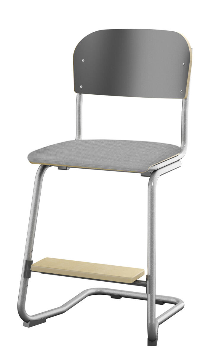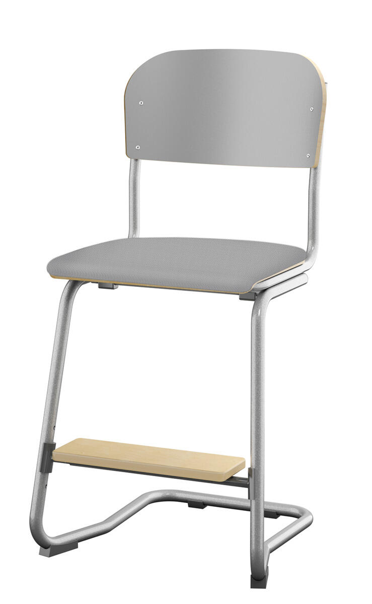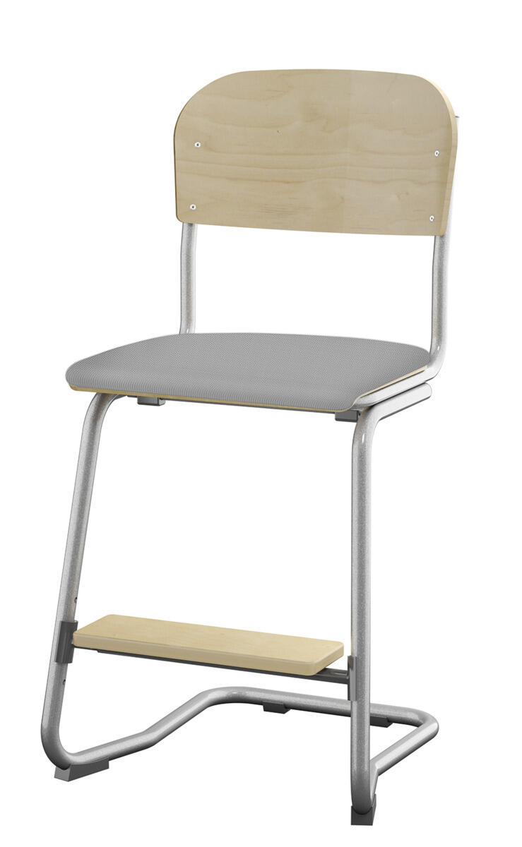 Oppilastuolin istuin ja selkänoja on valmistettu vanerista, pinnassa korkeapainelaminaattia. Korkeussäädettävä, pöytään ripustettava tuoli, joka on pinottavissa 4 kpl päällekkäin. Istuinkorkeudet 45, 51, 57 ja 63 cm. Säädettävällä jalkatuella. 5 eri korkeutta 5 cm välein. Huom! ylemmästä runkoputkestä tulee 2 reikää jäädä alempaan putkeen, tukevuuden varmistamiseksi. Maksimi istumakorkeus 63 cm. Lisävalintana istuinpehmuste.