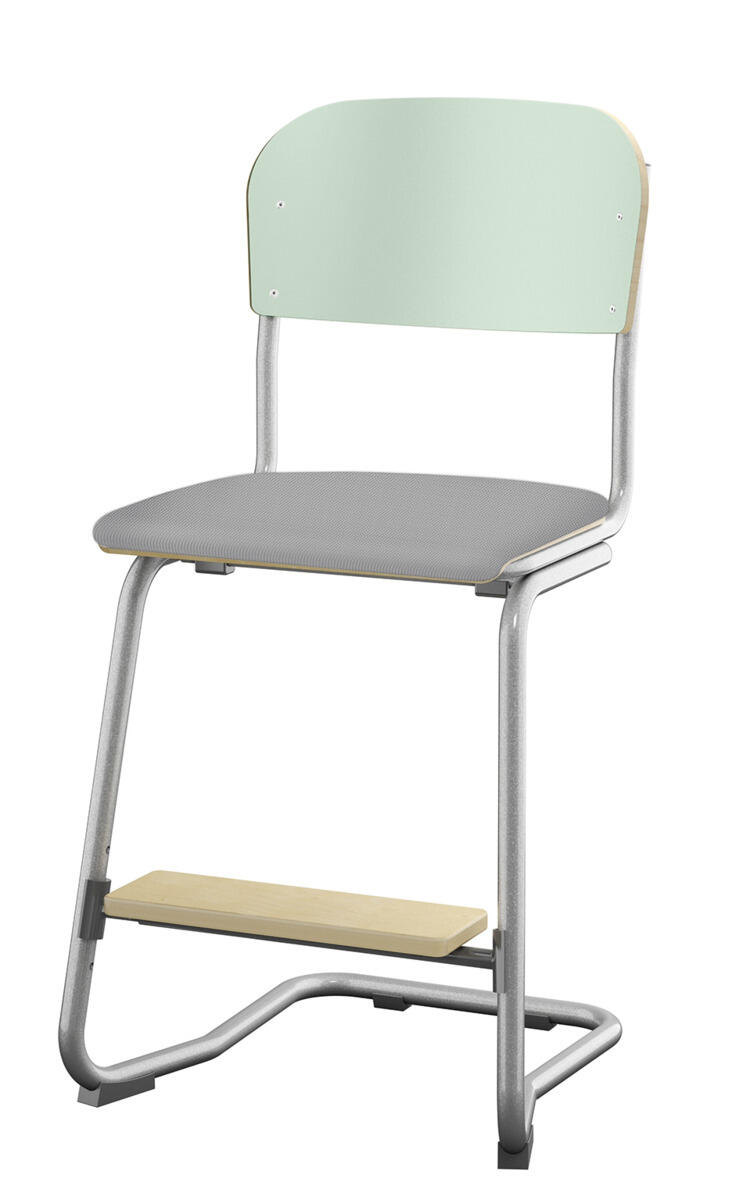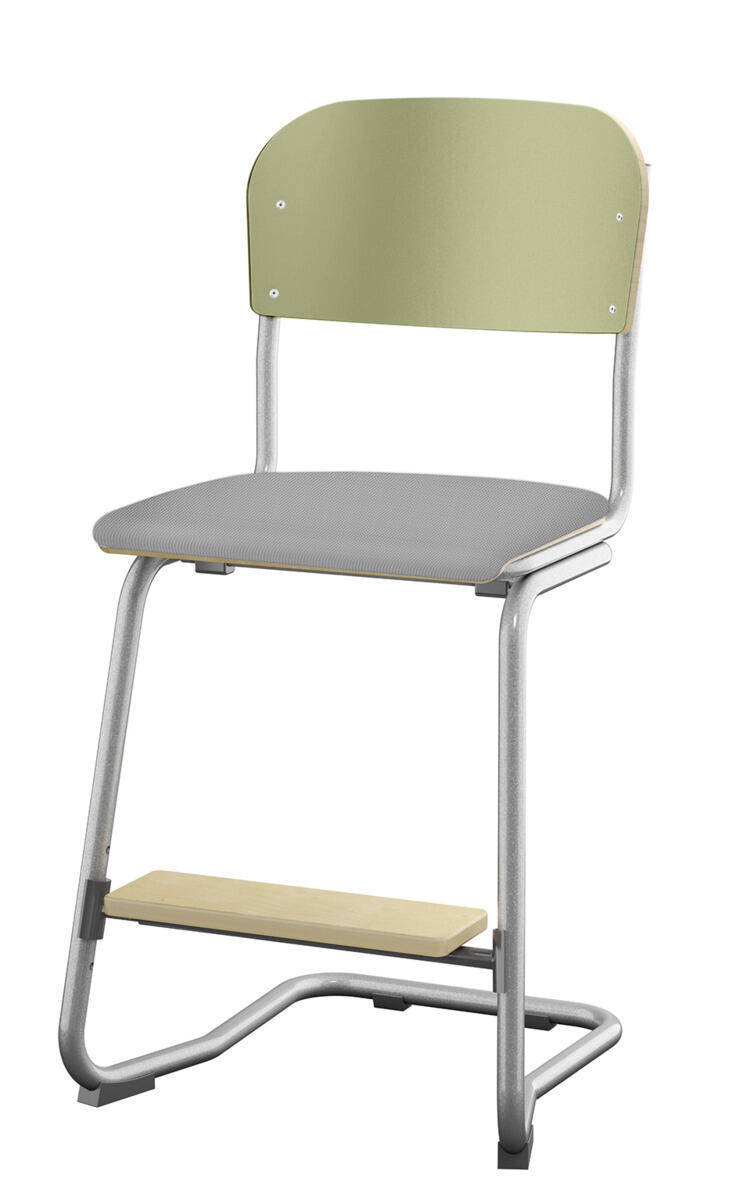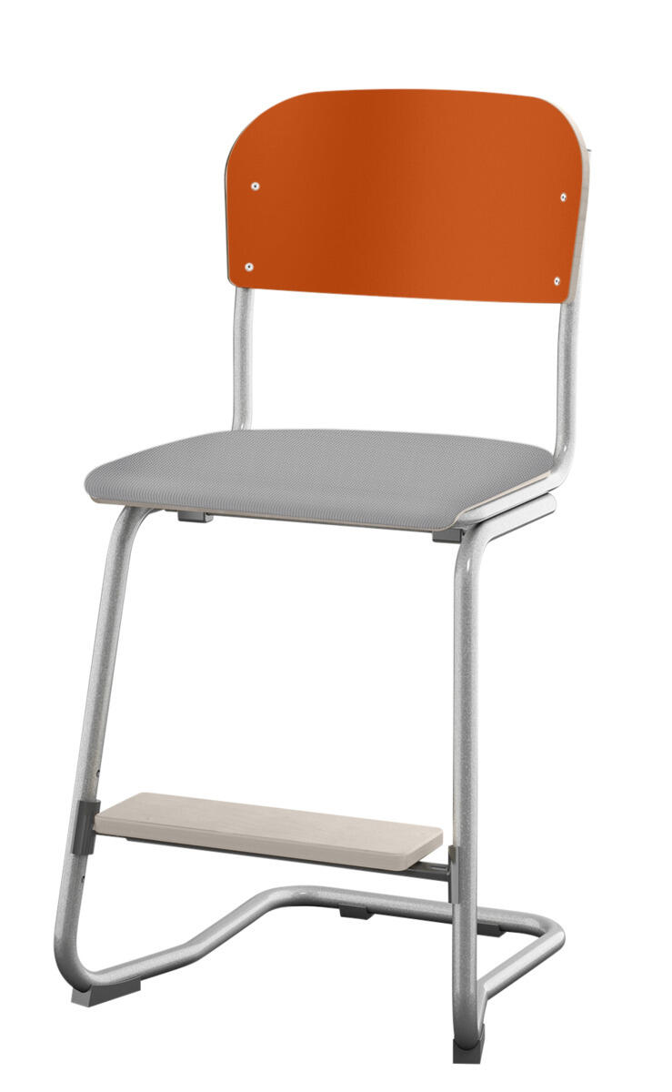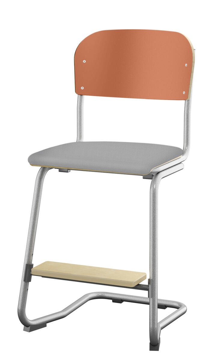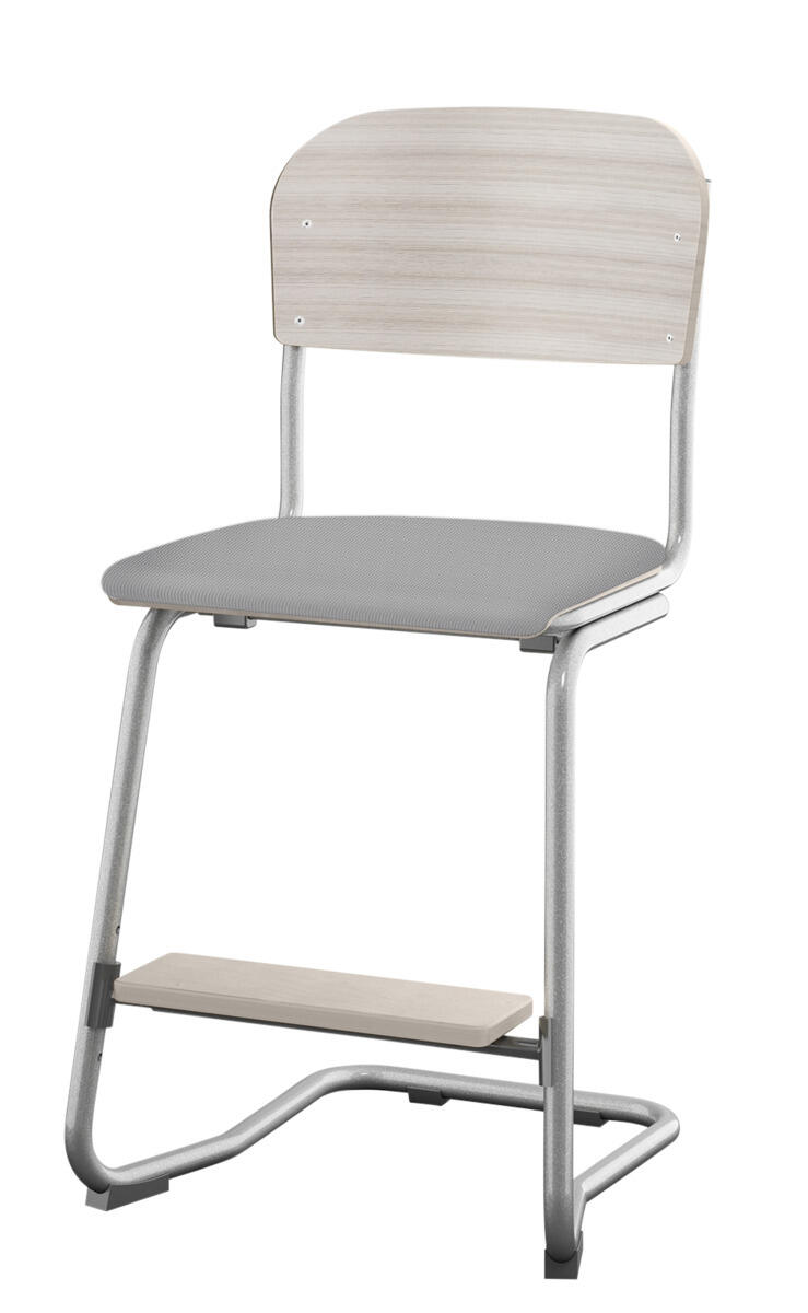 Oppilastuolin istuin ja selkänoja on valmistettu vanerista, pinnassa korkeapainelaminaattia. Korkeussäädettävä, pöytään ripustettava tuoli, joka on pinottavissa 4 kpl päällekkäin. Istuinkorkeudet 45, 51, 57 ja 63 cm. Säädettävällä jalkatuella. 5 eri korkeutta 5 cm välein. Huom! ylemmästä runkoputkestä tulee 2 reikää jäädä alempaan putkeen, tukevuuden varmistamiseksi. Maksimi istumakorkeus 63 cm. Lisävalintana istuinpehmuste.