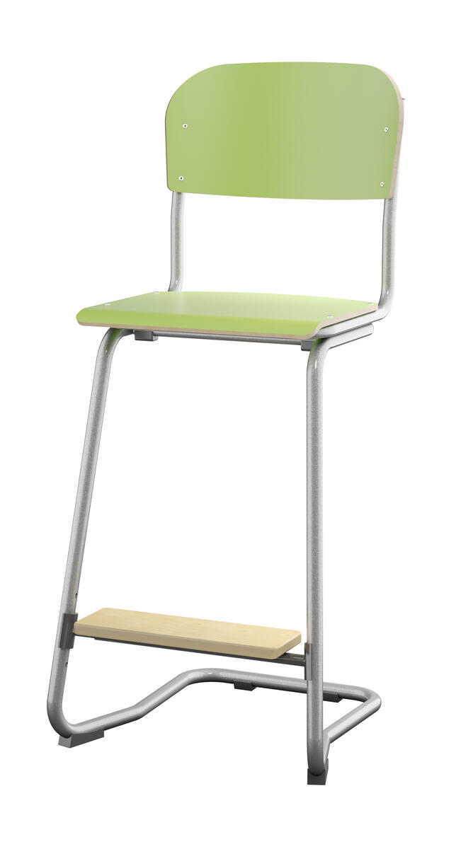 Oppilastuolin istuin ja selkänoja on valmistettu vanerista, pinnassa korkeapainelaminaattia. Korkeussäädettävä, pöytään ripustettava tuoli, joka on pinottavissa 4 kpl päällekkäin. Istuinkorkeudet 45, 51, 57 ja 63 cm. Säädettävällä jalkatuella. 5 eri korkeutta 5 cm välein. Huom! ylemmästä runkoputkestä tulee 2 reikää jäädä alempaan putkeen, tukevuuden varmistamiseksi. Maksimi istumakorkeus 63 cm. Lisävalintana istuinpehmuste.