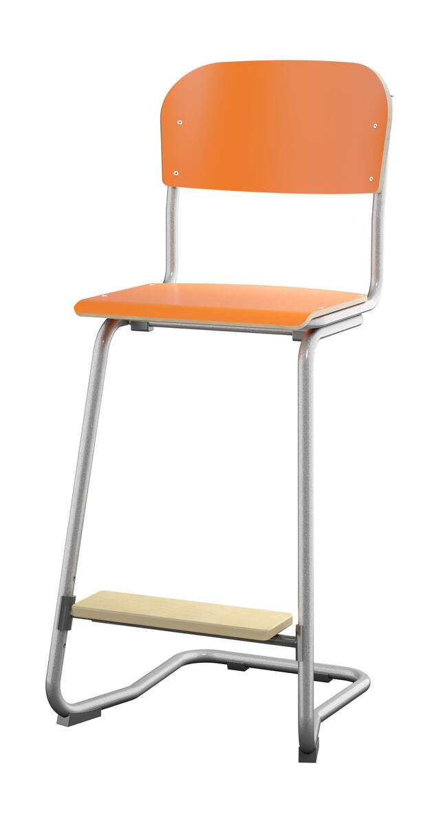 Oppilastuolin istuin ja selkänoja on valmistettu vanerista, pinnassa korkeapainelaminaattia. Korkeussäädettävä, pöytään ripustettava tuoli, joka on pinottavissa 4 kpl päällekkäin. Istuinkorkeudet 45, 51, 57 ja 63 cm. Jalkatuella. Huom! ylemmästä runkoputkestä tulee 2 reikää jäädä alempaan putkeen, tukevuuden varmistamiseksi. Maksimi istumakorkeus 63 cm. Lisävalintana istuinpehmuste.