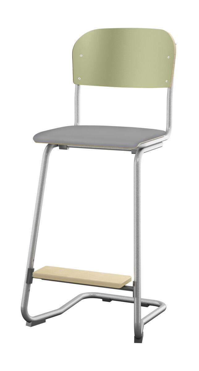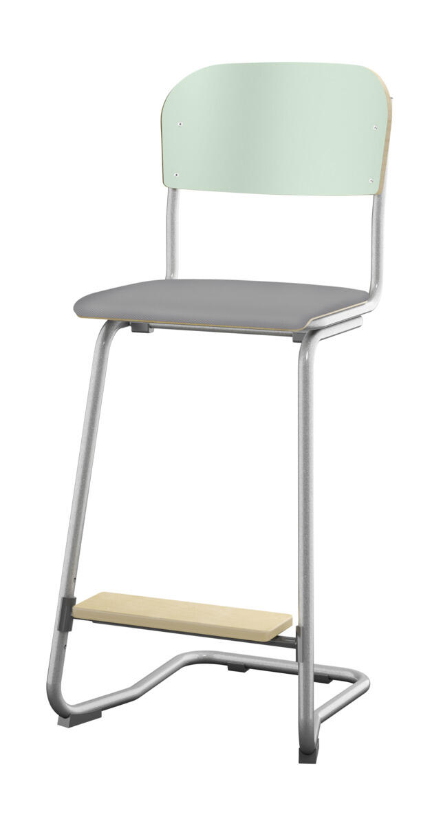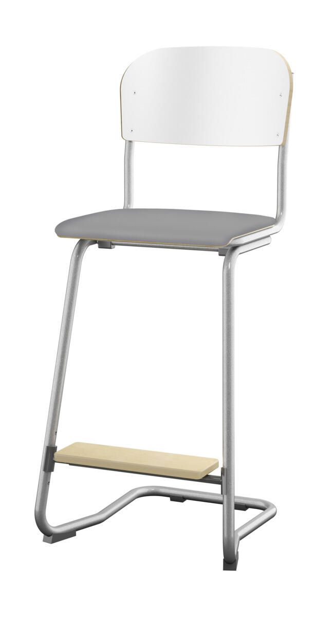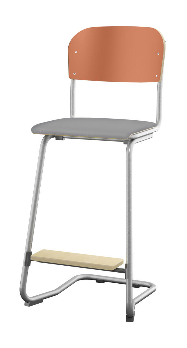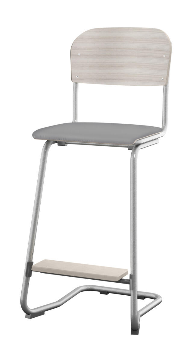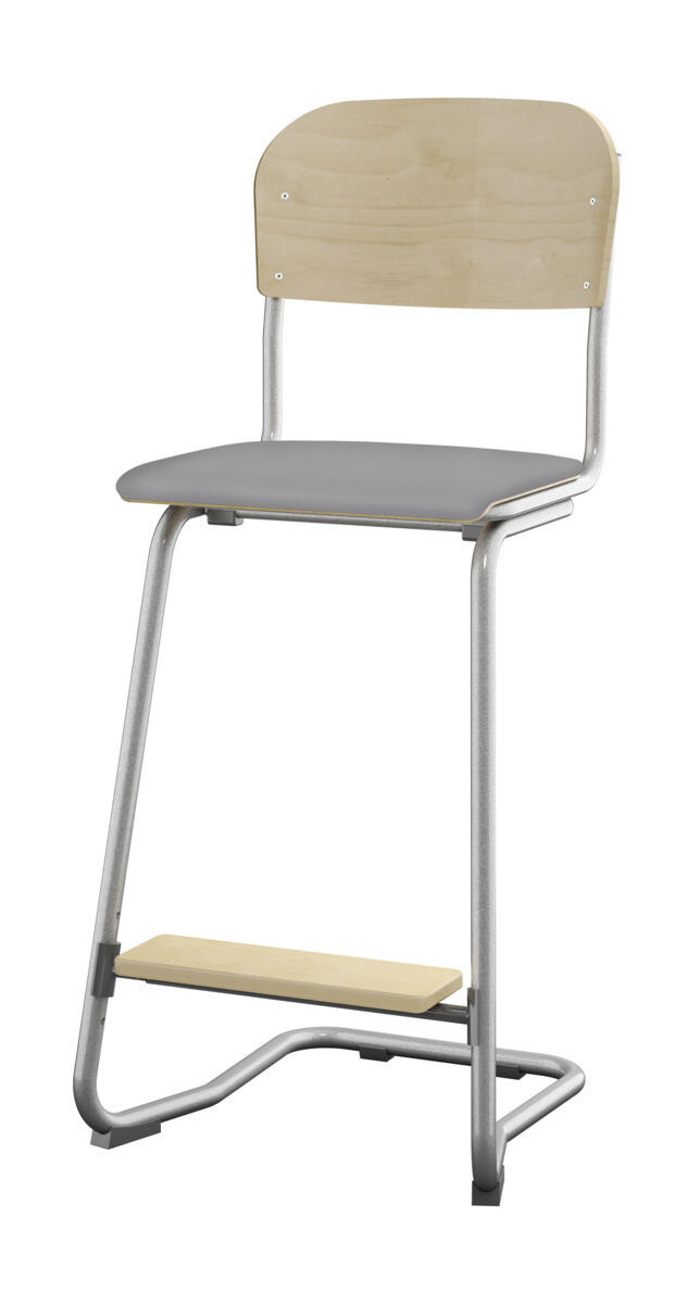 Oppilastuolin istuin ja selkänoja on valmistettu vanerista, pinnassa korkeapainelaminaattia. Korkeussäädettävä, pöytään ripustettava tuoli, joka on pinottavissa 4 kpl päällekkäin. Istuinkorkeudet 45, 51, 57 ja 63 cm. Säädettävällä jalkatuella. 5 eri korkeutta 5 cm välein. Huom! ylemmästä runkoputkestä tulee 2 reikää jäädä alempaan putkeen, tukevuuden varmistamiseksi. Maksimi istumakorkeus 63 cm. Lisävalintana istuinpehmuste.