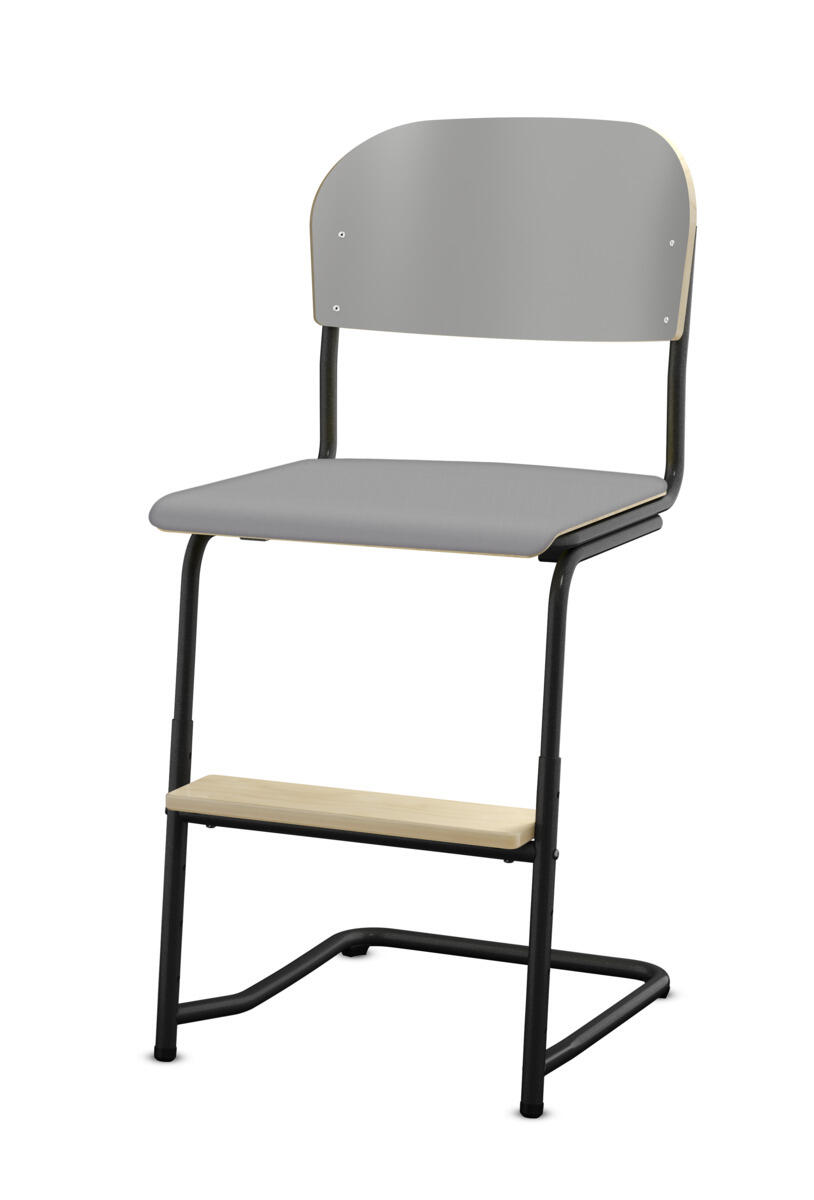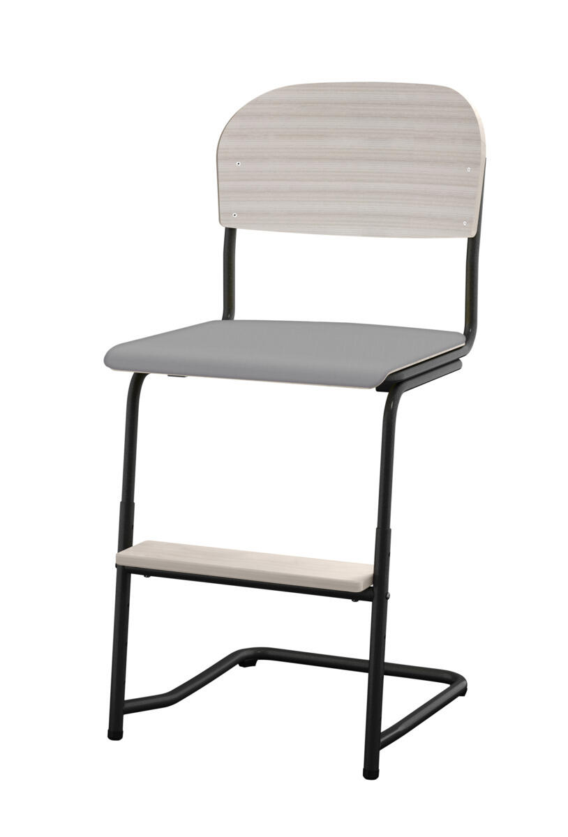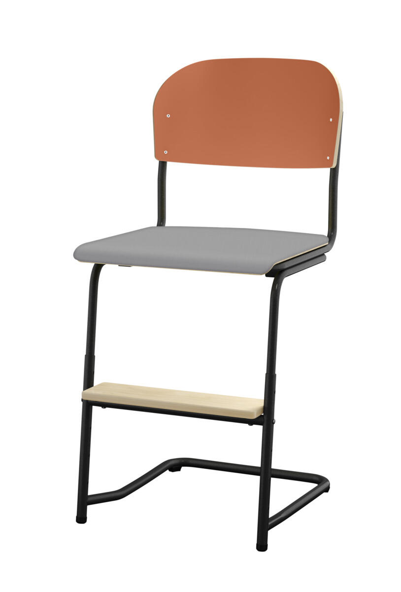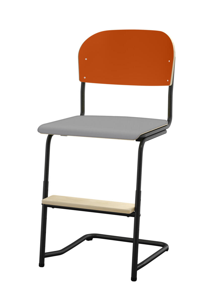Oppilastuolin istuin ja selkänoja on valmistettu vanerista, pinnassa korkeapainelaminaattia. Säädettävä istuinkorkeus 45, 51, 57 tai 63 cm. HUOM! Varmista, että tuolin yläosa kiinnittyy kahteen reikään rungon alaosassa, jotta rungon osat tukevat toisiaan. Sisältää jalkatuen. Lisävalintana istuinpehmuste.
