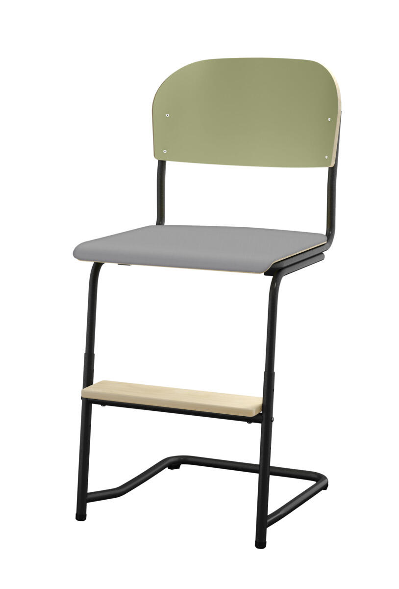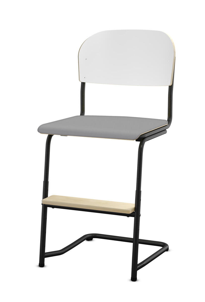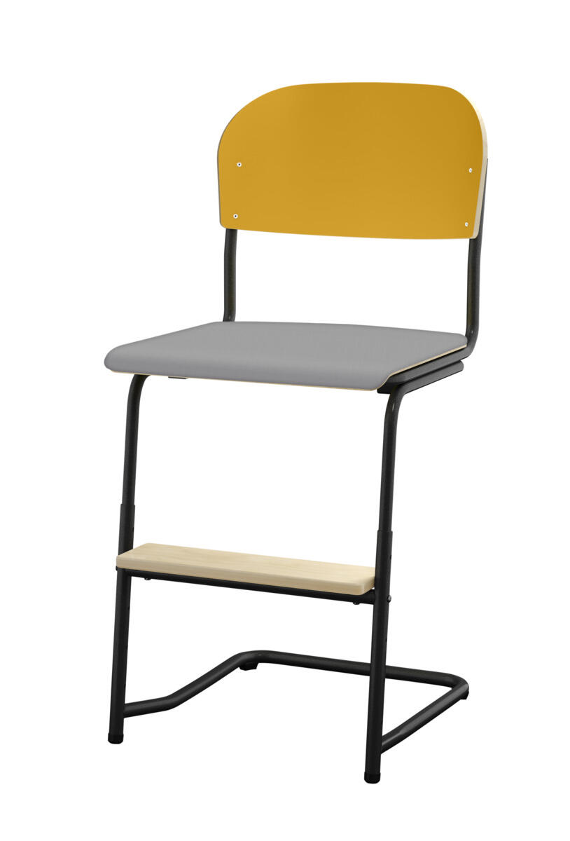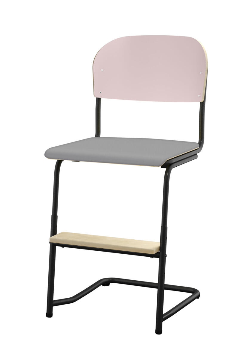 Oppilastuolin istuin ja selkänoja on valmistettu vanerista, pinnassa korkeapainelaminaattia. Säädettävä istuinkorkeus 45, 51, 57 tai 63 cm. HUOM! Varmista, että tuolin yläosa kiinnittyy kahteen reikään rungon alaosassa, jotta rungon osat tukevat toisiaan. Sisältää jalkatuen. Lisävalintana istuinpehmuste.