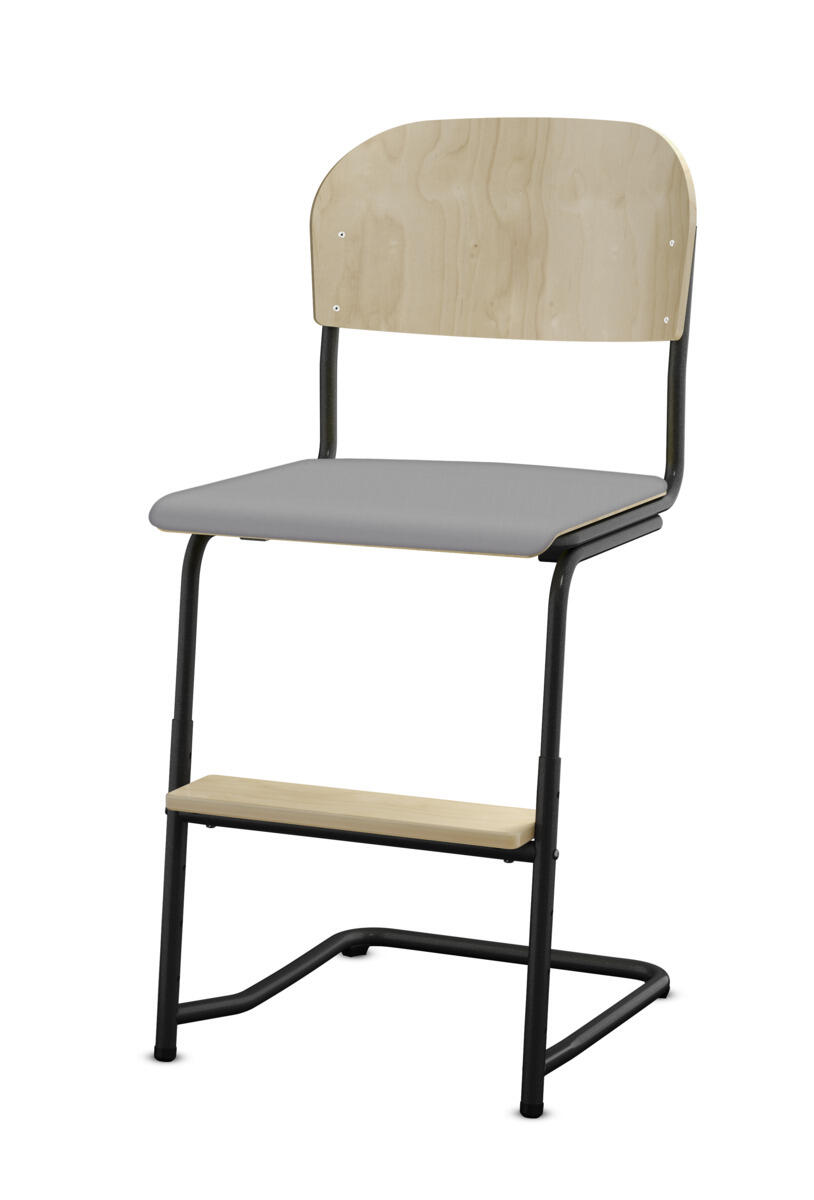 Oppilastuolin istuin ja selkänoja on valmistettu vanerista, pinnassa korkeapainelaminaattia. Pinottava (max 4 tuolia/pino). Säädettävä istuinkorkeus 57, 60 tai 63 cm. Metalliputkirunko musta RAL 9005. Korkeussäädettävä jalkatuki, 3 eri korkeutta. Ääntävaimentavat tassut. Ripustettavissa pöytään. Lisävalintana istuinpehmuste.
