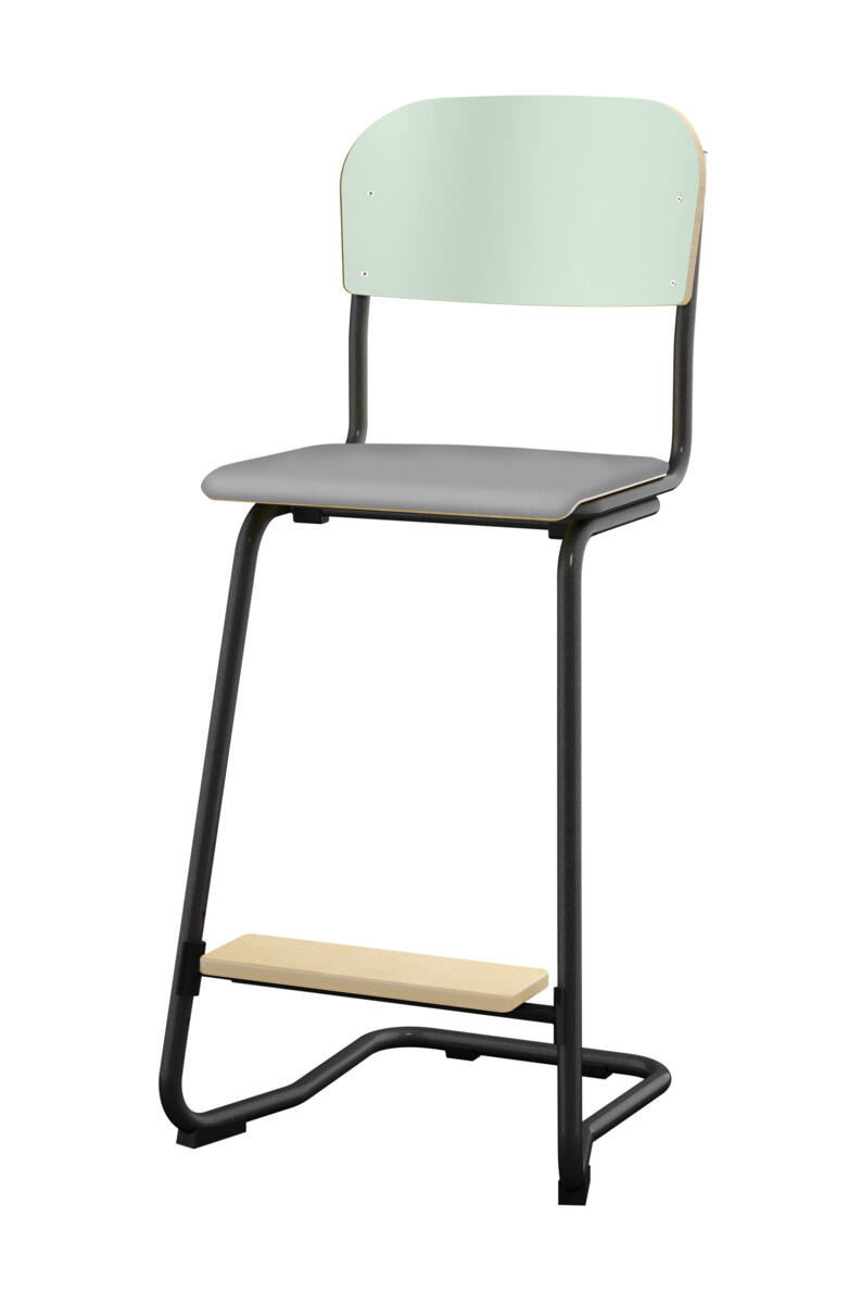 Oppilastuolin istuin ja selkänoja on valmistettu vanerista, pinnassa korkeapainelaminaattia. Korkeussäädettävä, pöytään ripustettava tuoli, joka on pinottavissa 4 kpl päällekkäin. Istuinkorkeudet 45, 51, 57 ja 63 cm. Säädettävällä jalkatuella. 5 eri korkeutta 5 cm välein. Huom! ylemmästä runkoputkestä tulee 2 reikää jäädä alempaan putkeen, tukevuuden varmistamiseksi. Maksimi istumakorkeus 63 cm. Lisävalintana istuinpehmuste.