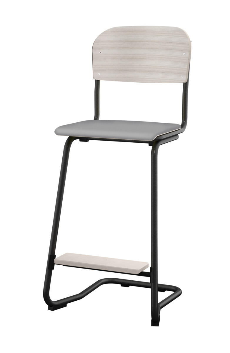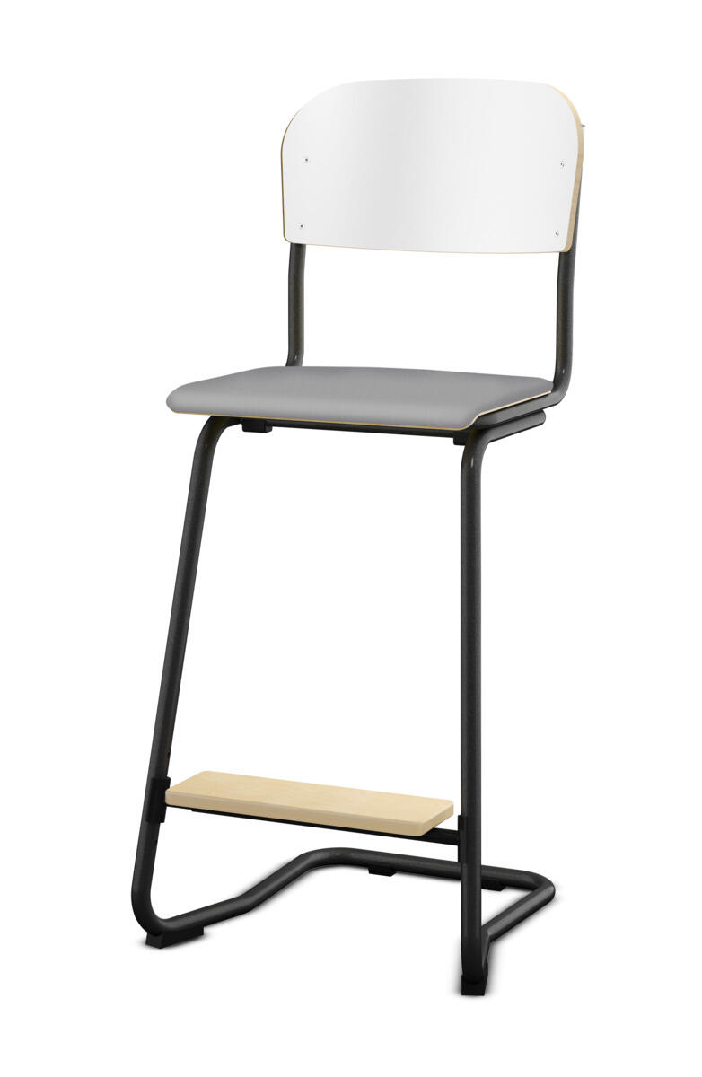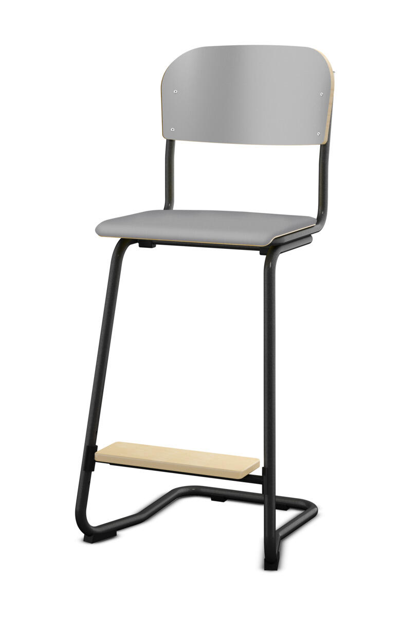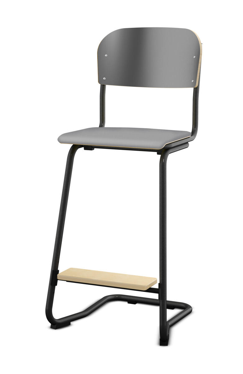 Istuin ja selkänoja korkeapainelaminaattia. Istuimen mitat: 42x39 cm (LxS). Istuinkorkeus 63 cm, rungon kokonaissyvyys 54 cm. Metalliputkirunko musta RAL 9005. Korkeussäädettävä jalkatuki, 3 eri korkeutta. Paino 7,4 kg. Ääntävaimentavat tassut. Pinottava (max 4 tuolia/pino). Ripustettavissa pöytään. Lisävalintana istuinpehmuste.