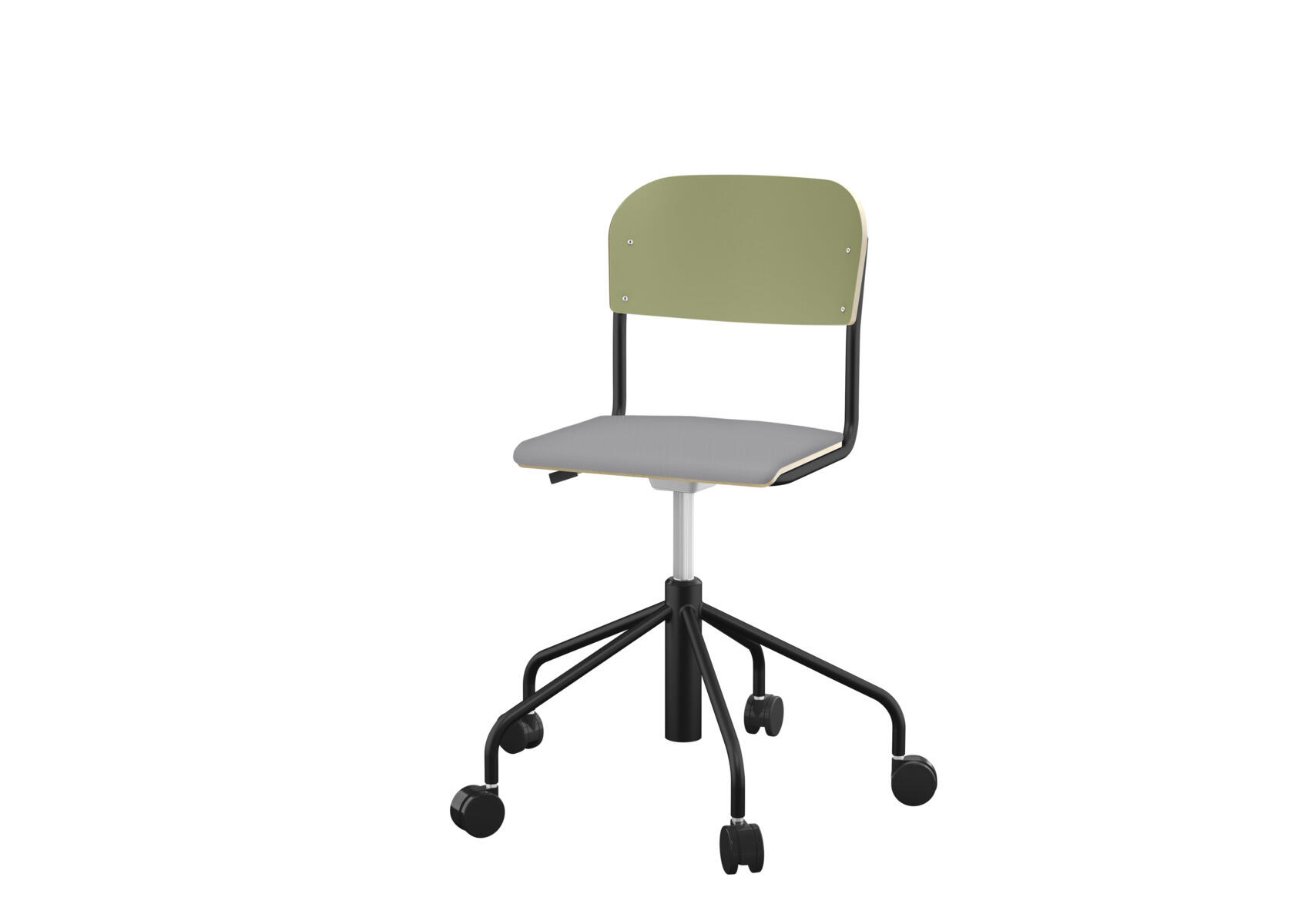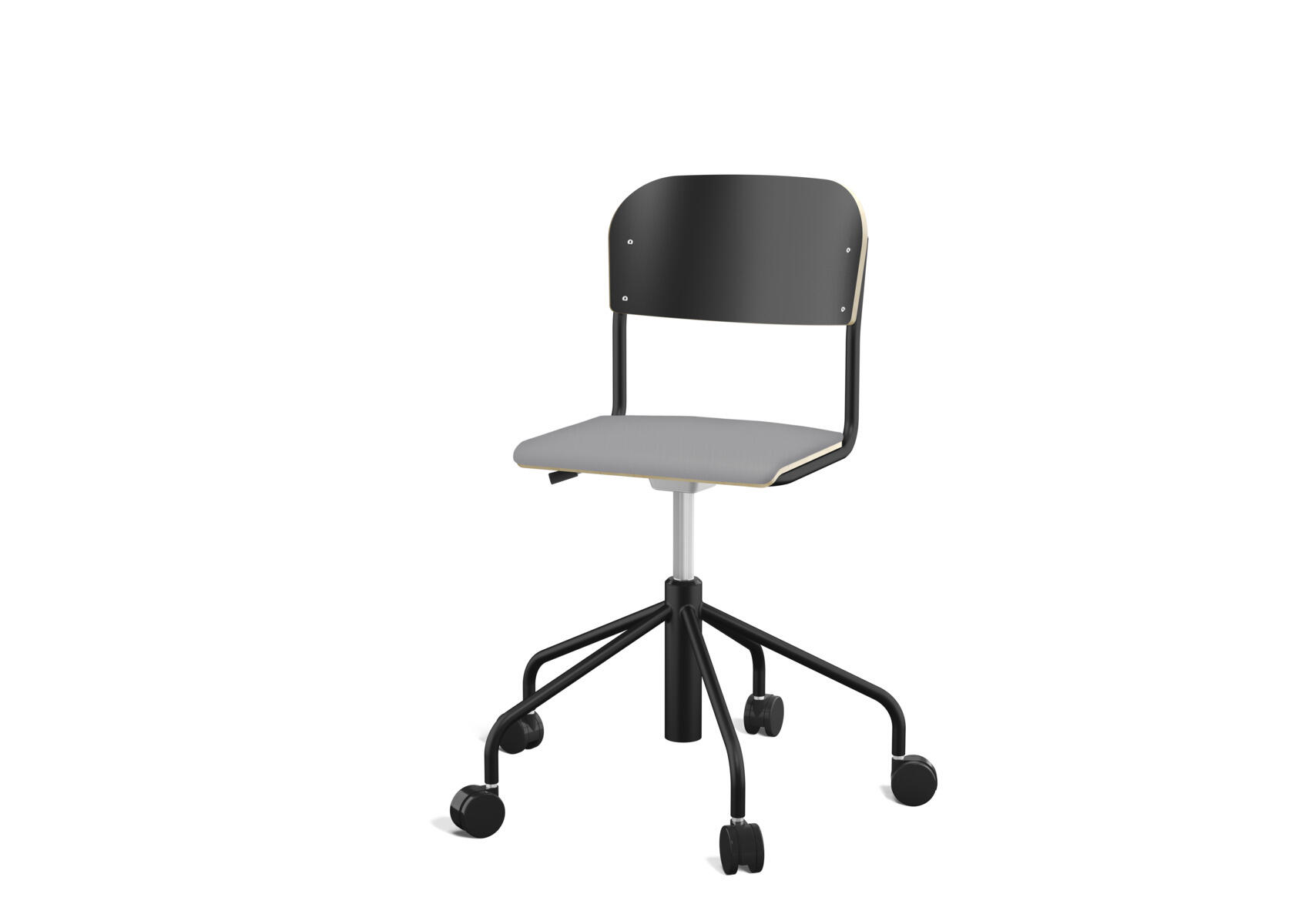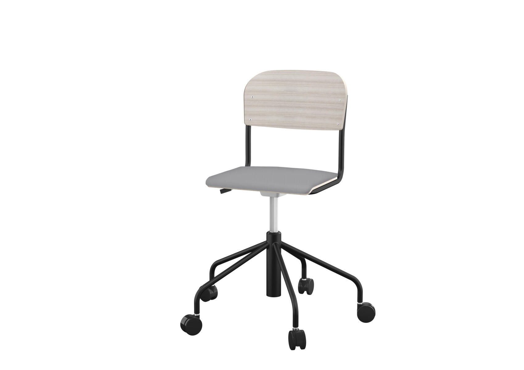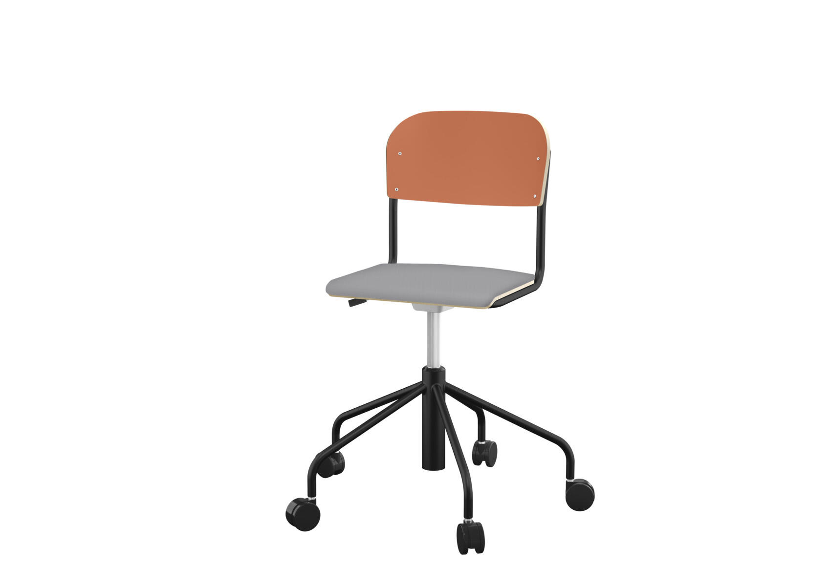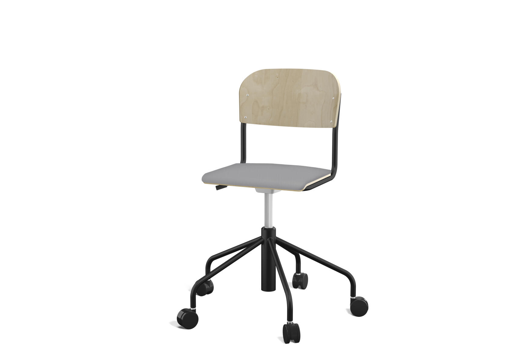 Oppilastuolin istuin ja selkänoja on valmistettu vanerista, pinnassa korkeapainelaminaattia. Kaasujousella portaattomasti säädettävä istuinkorkeus 38-51 cm. Pyörillä. Koottava. Lisävalintana istuinpehmuste.
