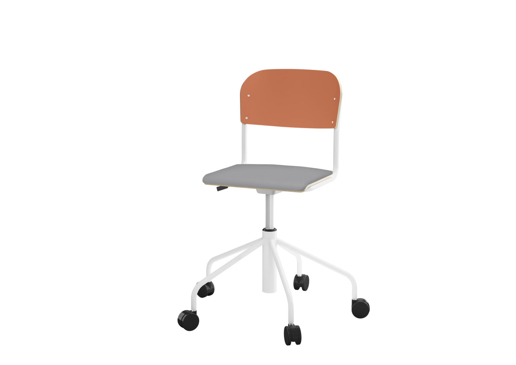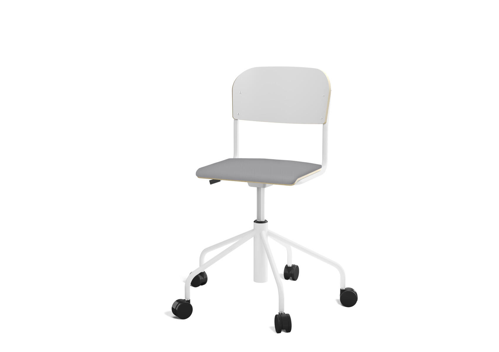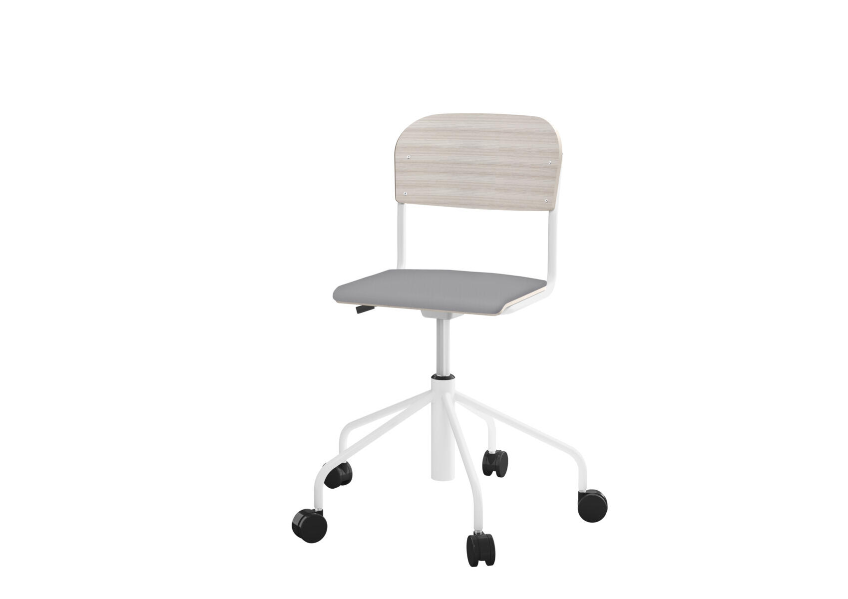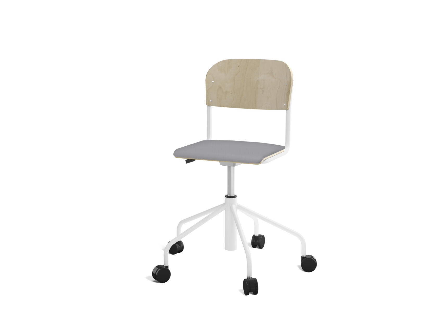 Oppilastuolin istuin ja selkänoja on valmistettu vanerista, pinnassa korkeapainelaminaattia. Kaasujousella portaattomasti säädettävä istuinkorkeus 38-51 cm. Toimitetaan osissa. Pyörillä. Lisävalintana istuinpehmuste.
