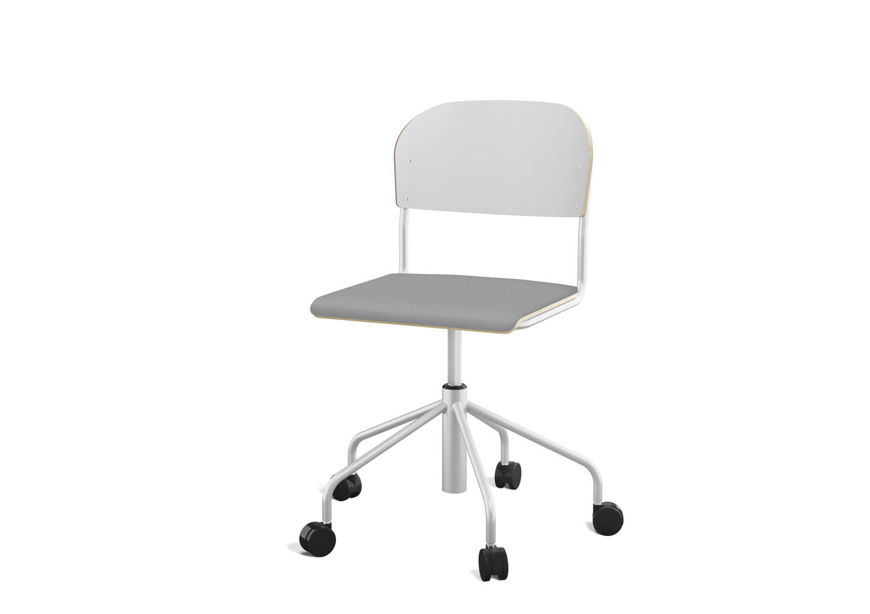 Oppilastuolin istuin ja selkänoja on valmistettu vanerista, pinnassa korkeapainelaminaattia. Kaasujousella portaattomasti säädettävä istuinkorkeus 38-51 cm. Toimitetaan osissa. Pyörillä. Lisävalintana istuinpehmuste.