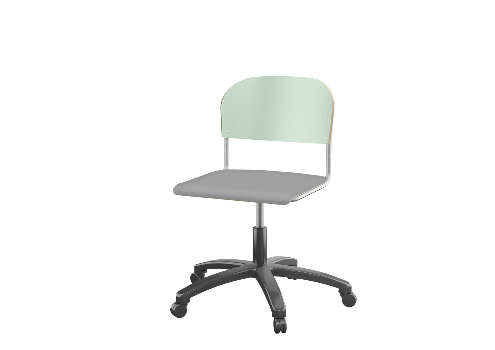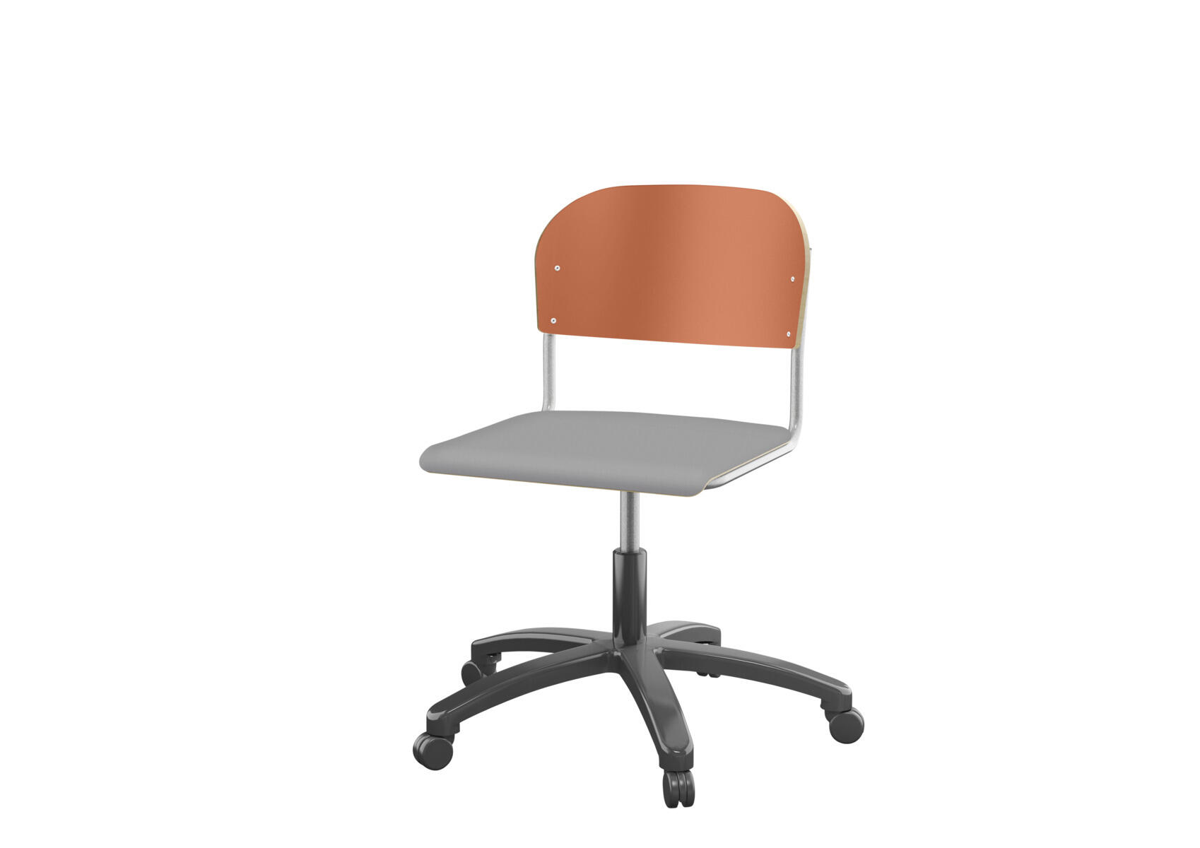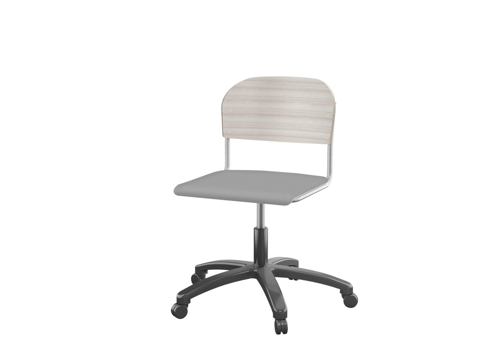 Oppilastuolin istuin ja selkänoja on valmistettu vanerista, pinnassa korkeapainelaminaattia. Kaasujousella portaattomasti säädettävä istuinkorkeus 38-51 cm. Toimitetaan osissa. Pyörillä. Lisävalintana istuinpehmuste.