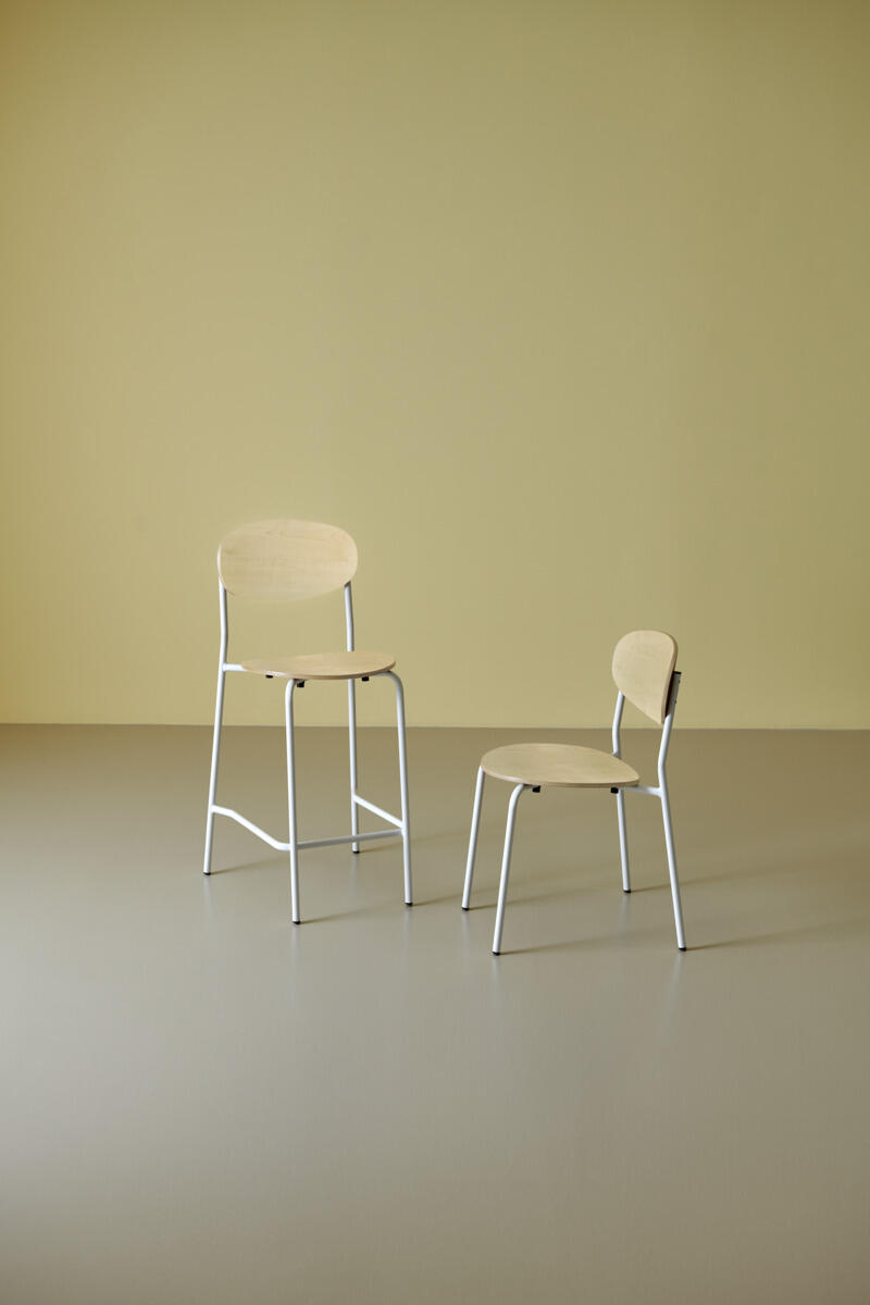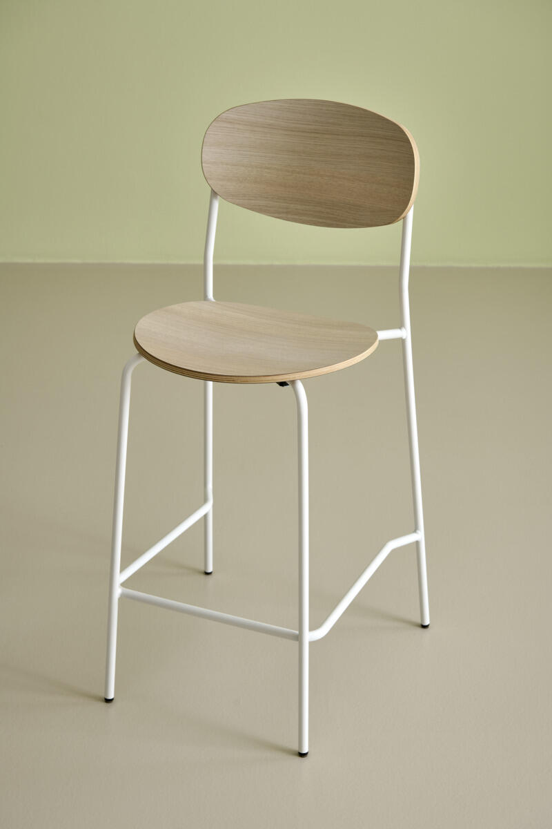 Tyylikäs ja monikäyttöinen baarituoli. Istuin ja selkänoja on valmistettu muotoonpuristetusta vanerista. Kestävä 16 mm teräsputkirunko. Tuoli on testattu ja hyväksytty EN 1729-2:2023 standardin mukaan. Pinottava.