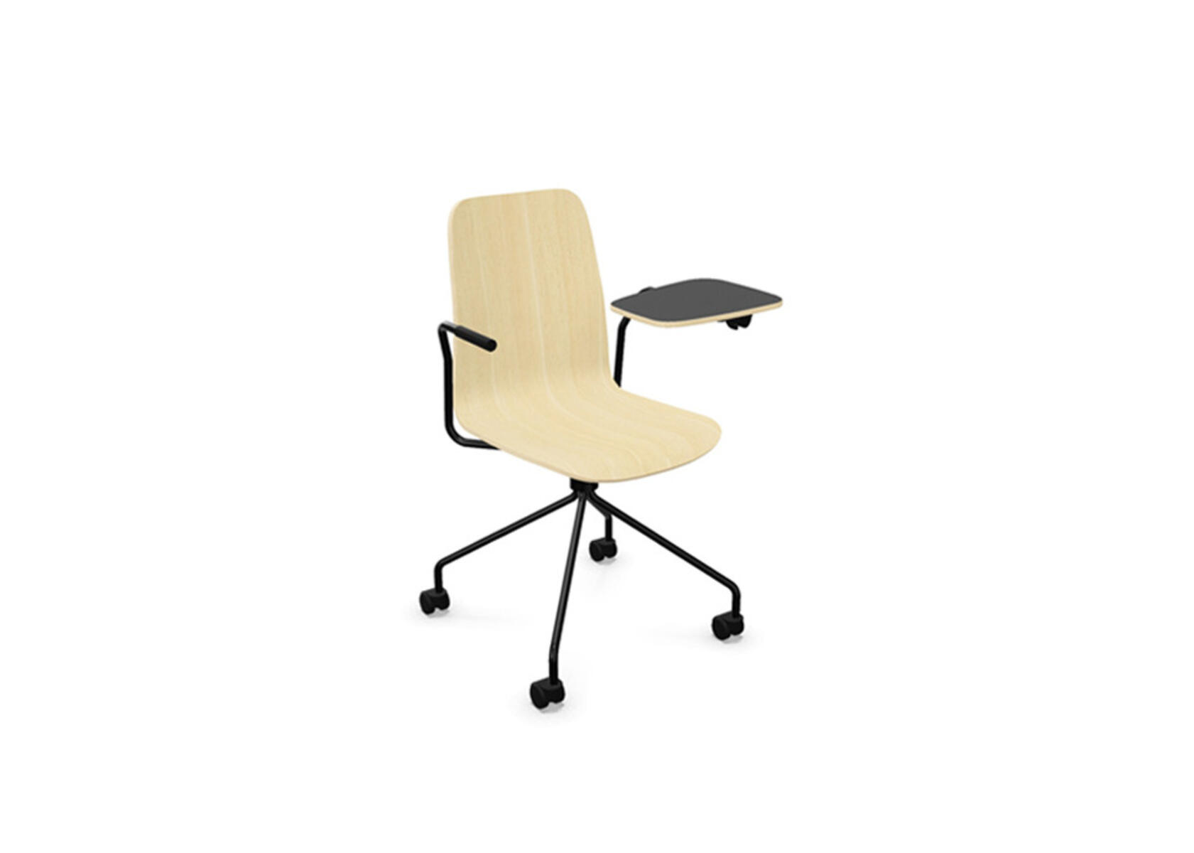 Ympäriverhoiltu, vaahtomuovilla pehmustettu istuinosa on valmistettu muotoonpuristetusta vanerista. Vakaa, jauhemaalattu jalusta ø 18 mm teräsputkesta, varustettu kalustetassuilla lattian suojaamiseksi. Kirjoitustaso on korkeapainelaminaattipintaista vaneria, vahvuus 10,5 mm. Erikseen myytävillä liitosheloilla tuoleista voidaan muodostaa rivejä tai istuinryhmiä. Enimmäiskuormitus 110 kg. Tuoli on pinottavissa enintään 6 kpl pinoon.