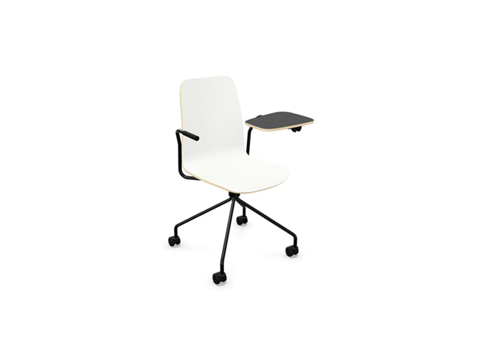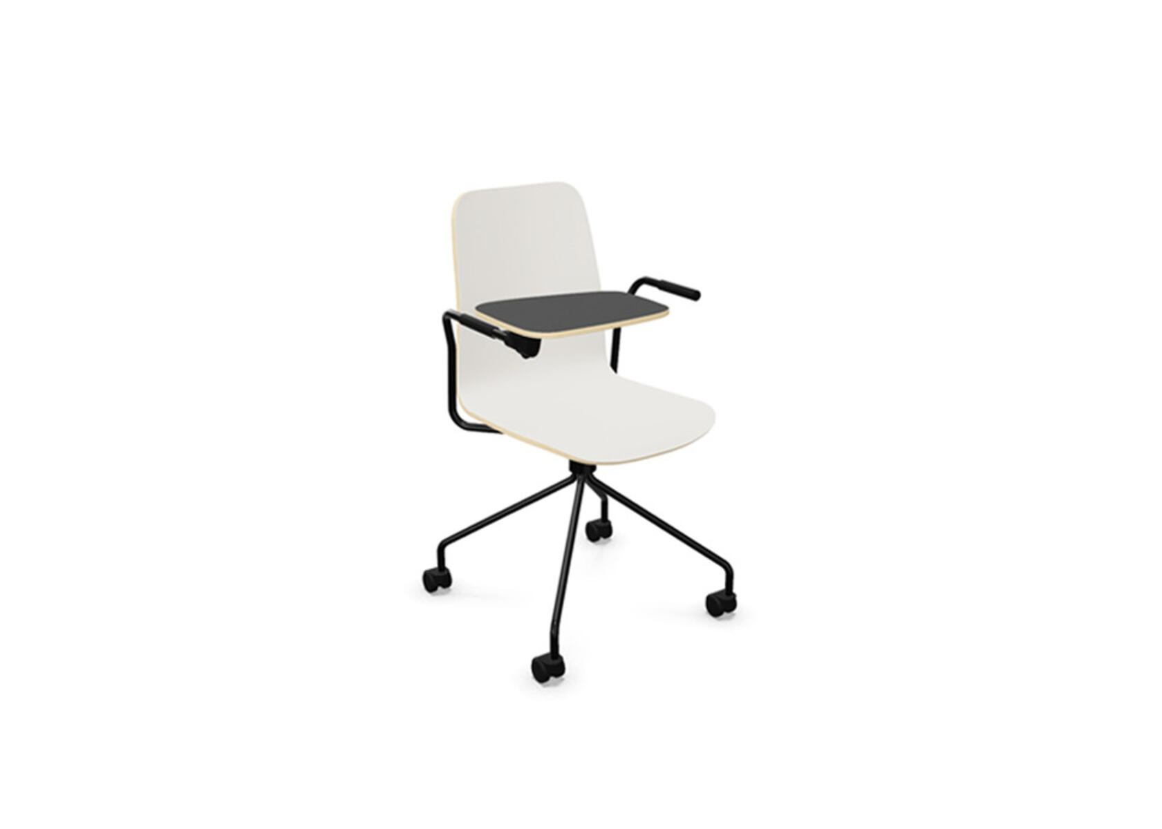 Vapaa tuoli, korkea selkä, kirjoitustaso, musta ristikko pyörillä