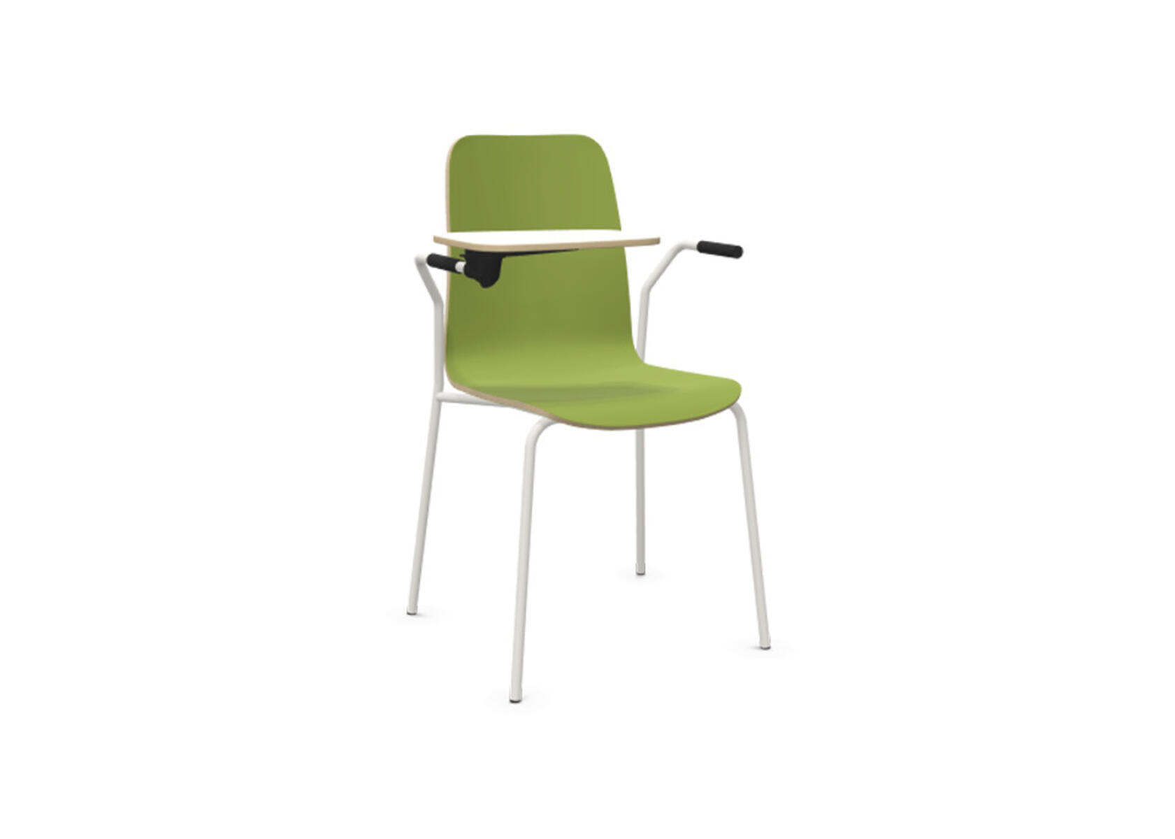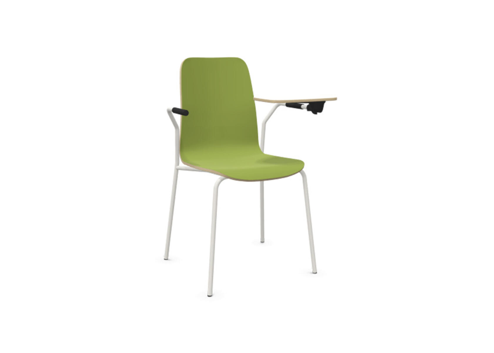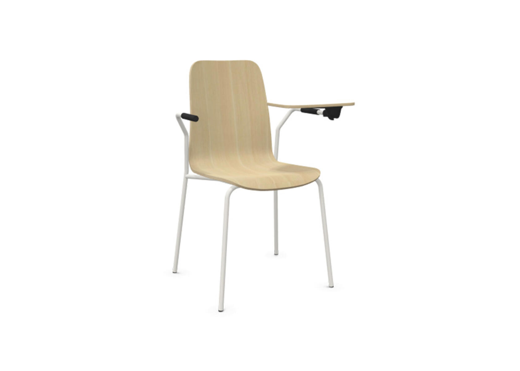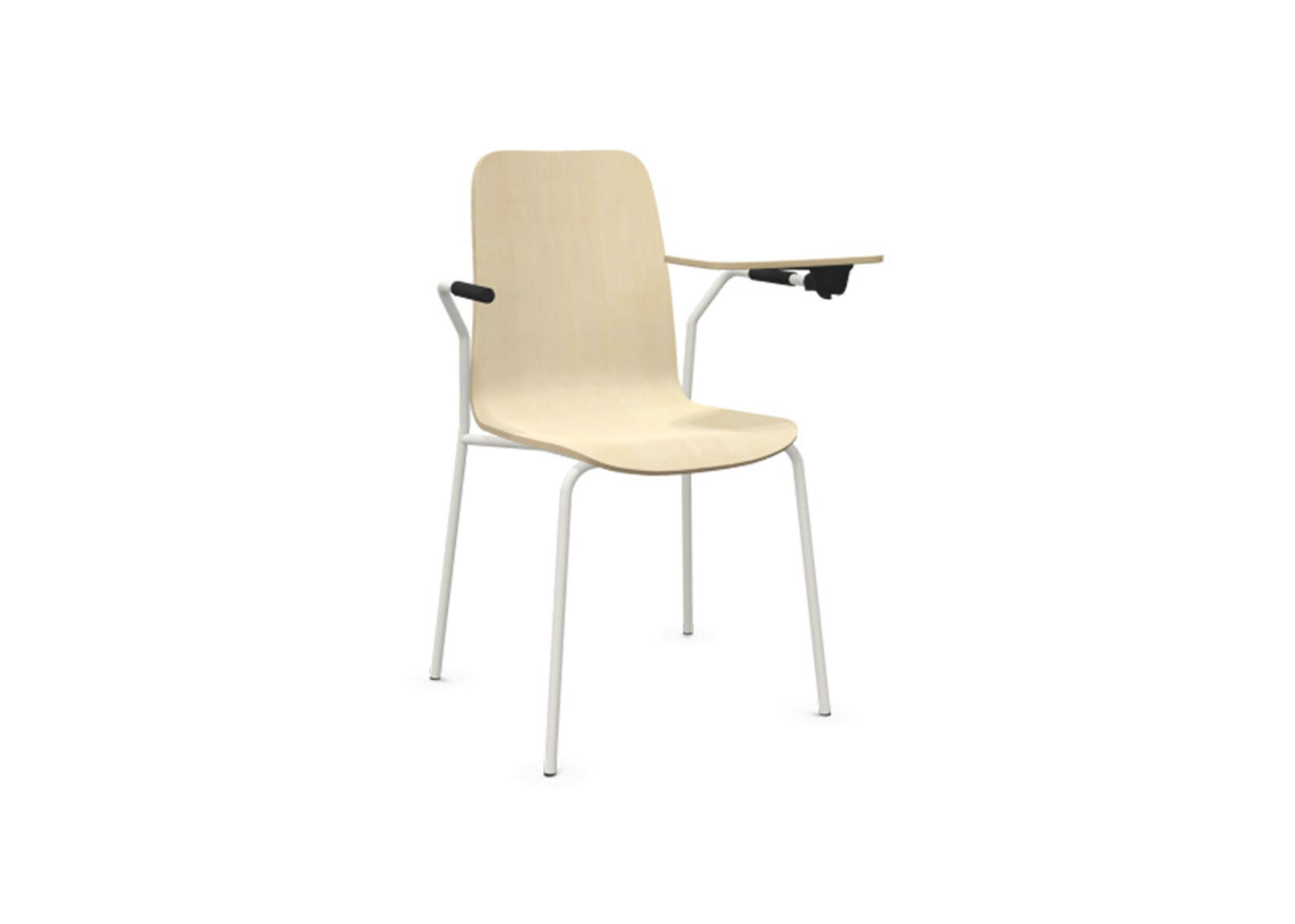 Ympäriverhoiltu, vaahtomuovilla pehmustettu istuinosa on valmistettu muotoonpuristetusta vanerista. Vakaa, jauhemaalattu jalusta ø 18 mm teräsputkesta, varustettu kalustetassuilla lattian suojaamiseksi. Kirjoitustaso on korkeapainelaminaattipintaista vaneria, vahvuus 10,5 mm. Erikseen myytävillä liitosheloilla tuoleista voidaan muodostaa rivejä tai istuinryhmiä. Enimmäiskuormitus 110 kg. Tuoli on pinottavissa enintään 6 kpl pinoon.