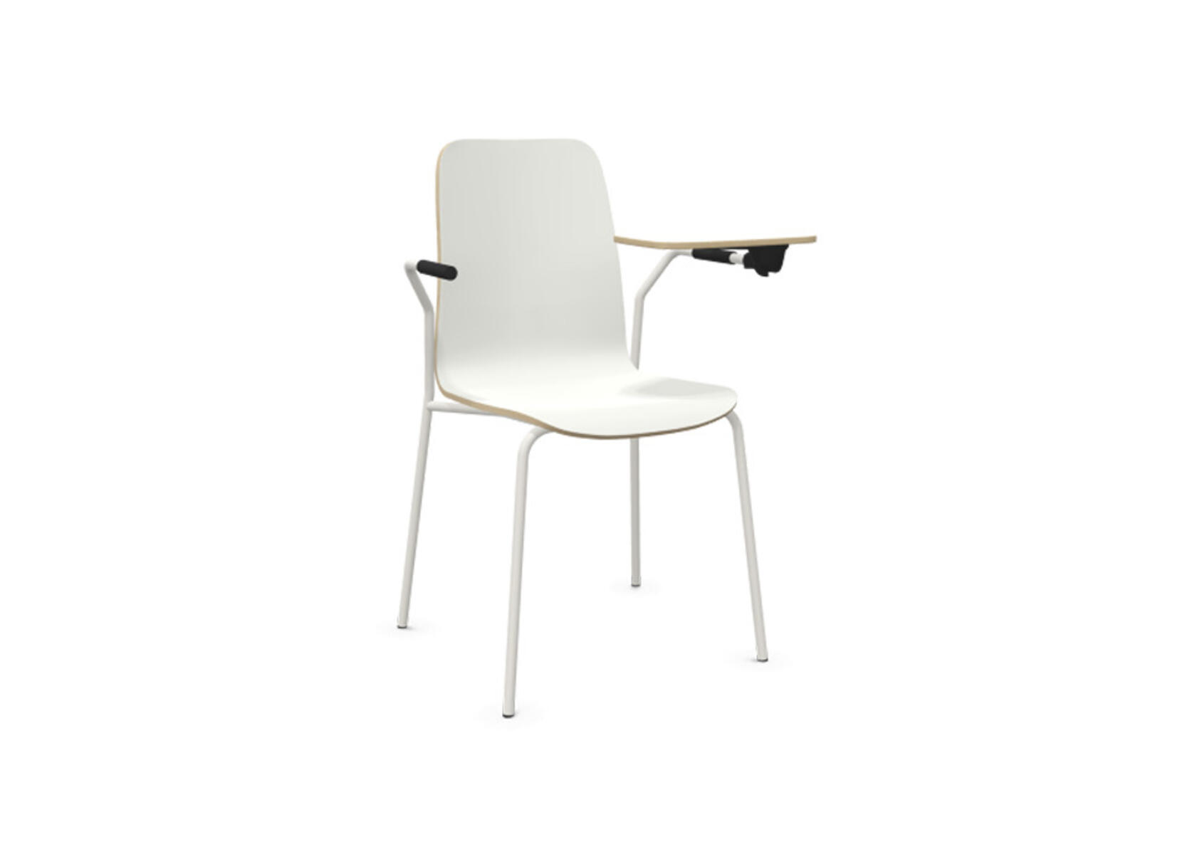 Vapaa tuoli, korkea selkä, kirjoitustaso, valkoinen 4-pistejalusta