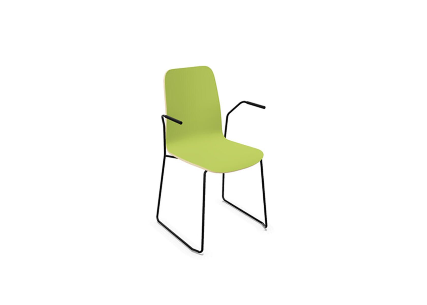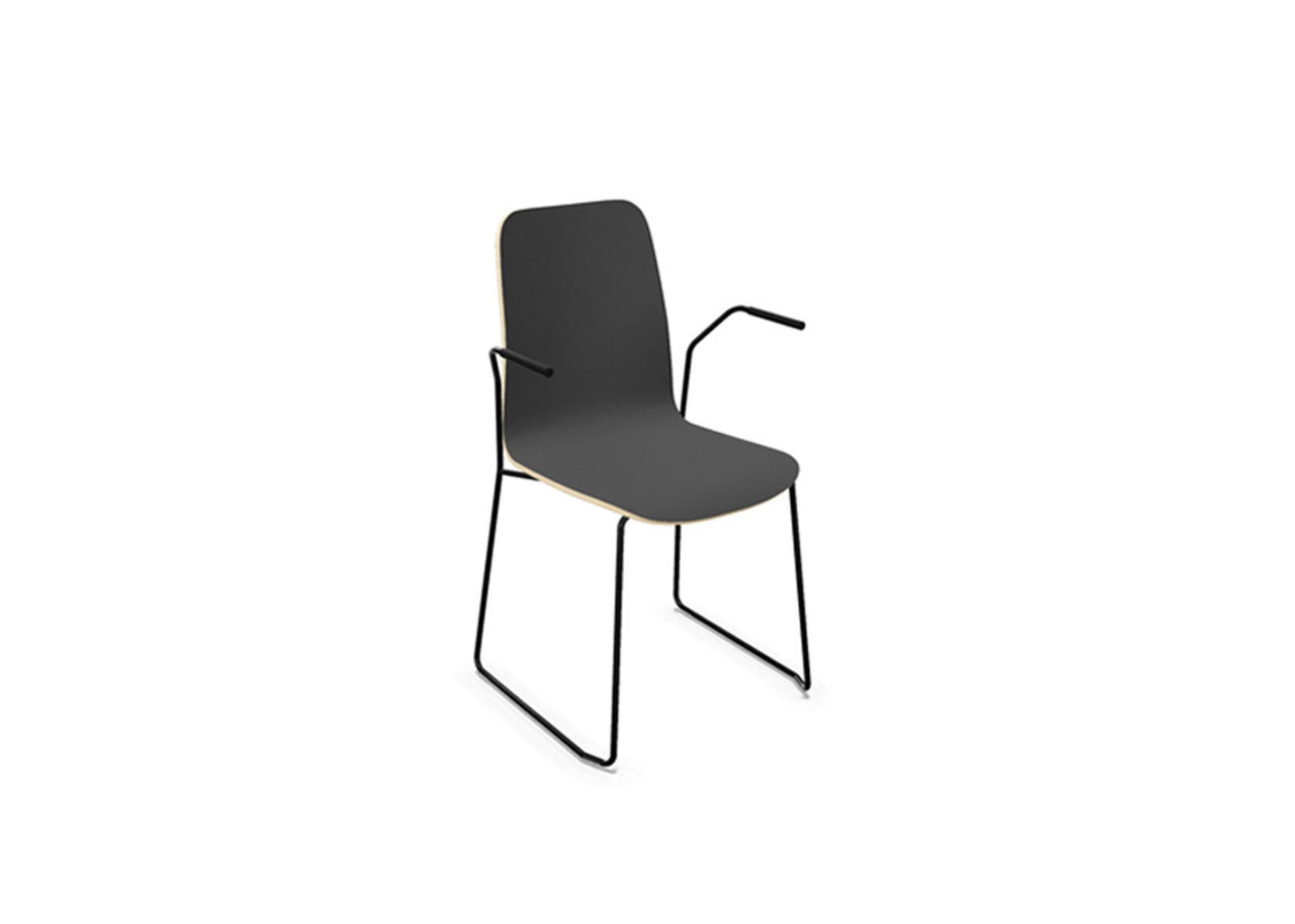 Ympäriverhoiltu, vaahtomuovilla pehmustettu istuinosa on valmistettu muotoonpuristetusta vanerista. Vakaa, jauhemaalattu jalusta ø 18 mm teräsputkesta, varustettu kalustetassuilla lattian suojaamiseksi. Valittavana käsinojat. Erikseen myytävillä liitosheloilla tuoleista voidaan muodostaa rivejä tai istuinryhmiä. Enimmäiskuormitus 110 kg. Tuoli on pinottavissa enintään 6 kpl pinoon.
