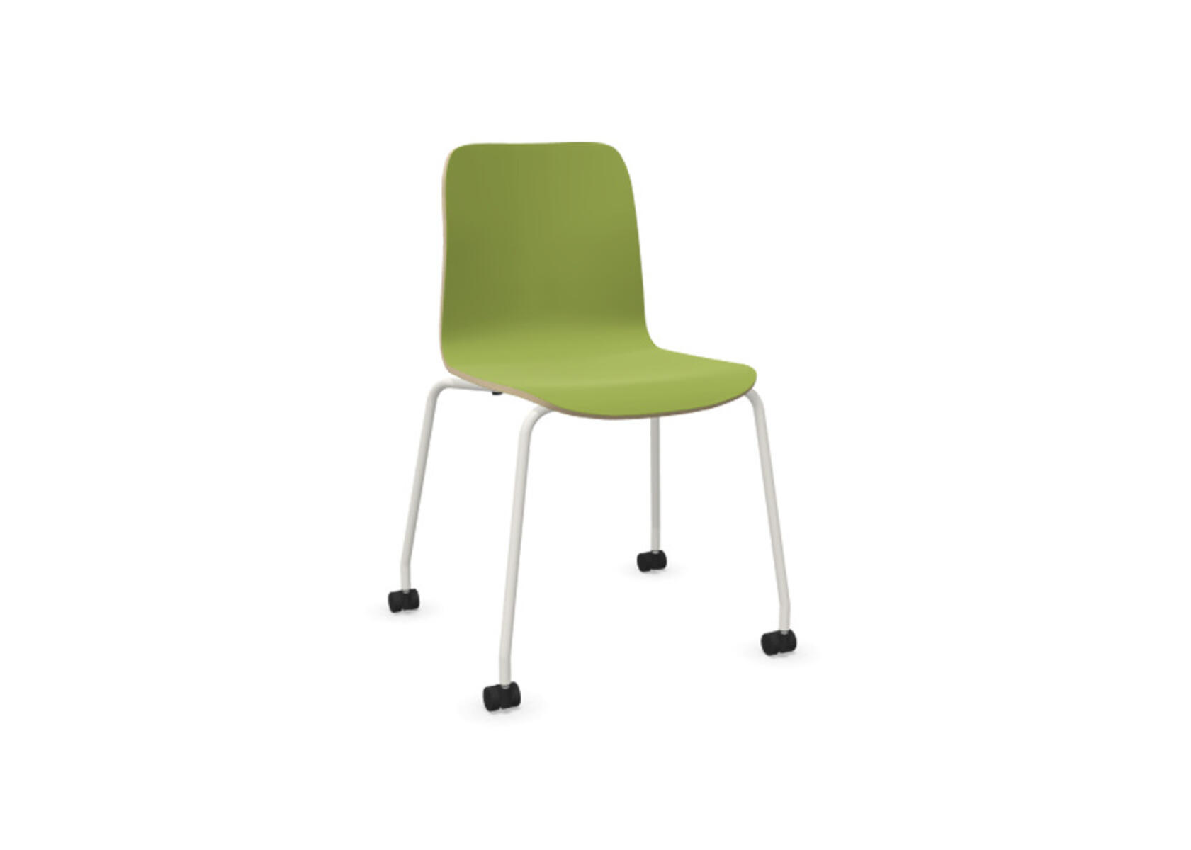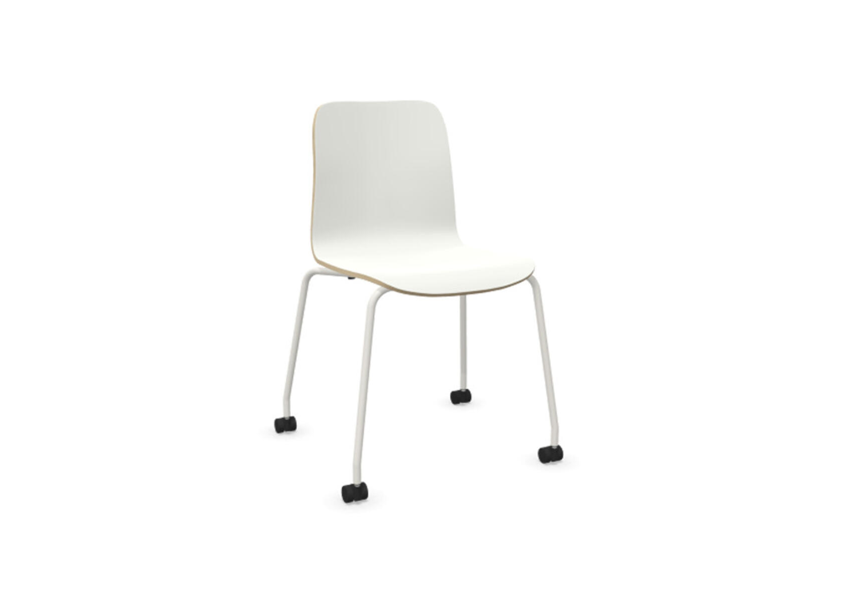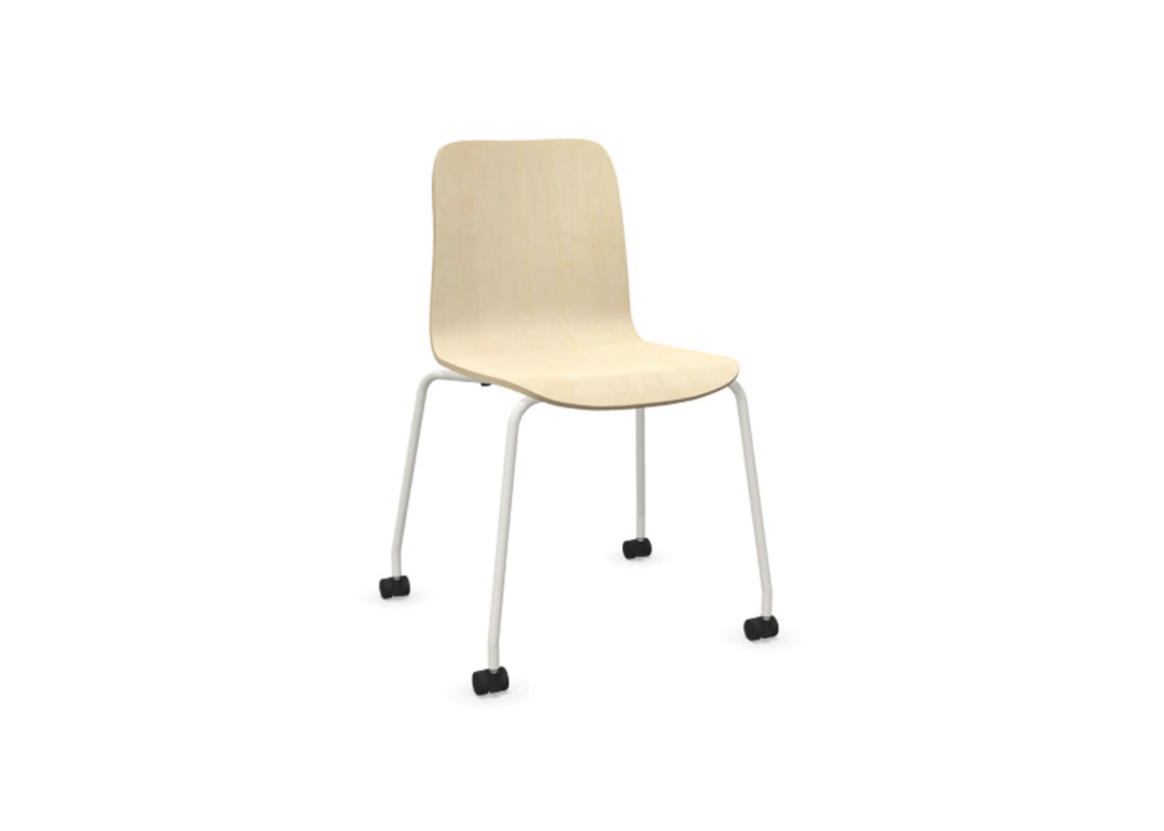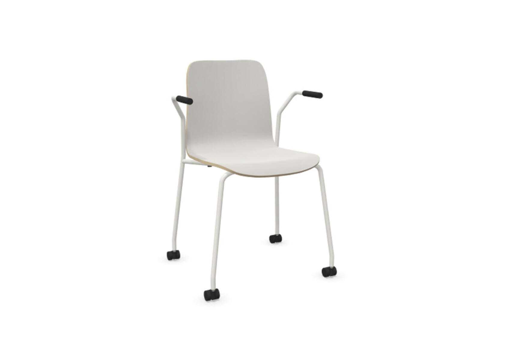 Ympäriverhoiltu, vaahtomuovilla pehmustettu istuinosa on valmistettu muotoonpuristetusta vanerista. Vakaa, jauhemaalattu jalusta ø 18 mm teräsputkesta. Korkea 4-sakarainen ristikko kovalle lattialle sopivilla pyörillä. Valittavana käsinojat. Vapaasti pyörivä, ei korkeussäädettävä.