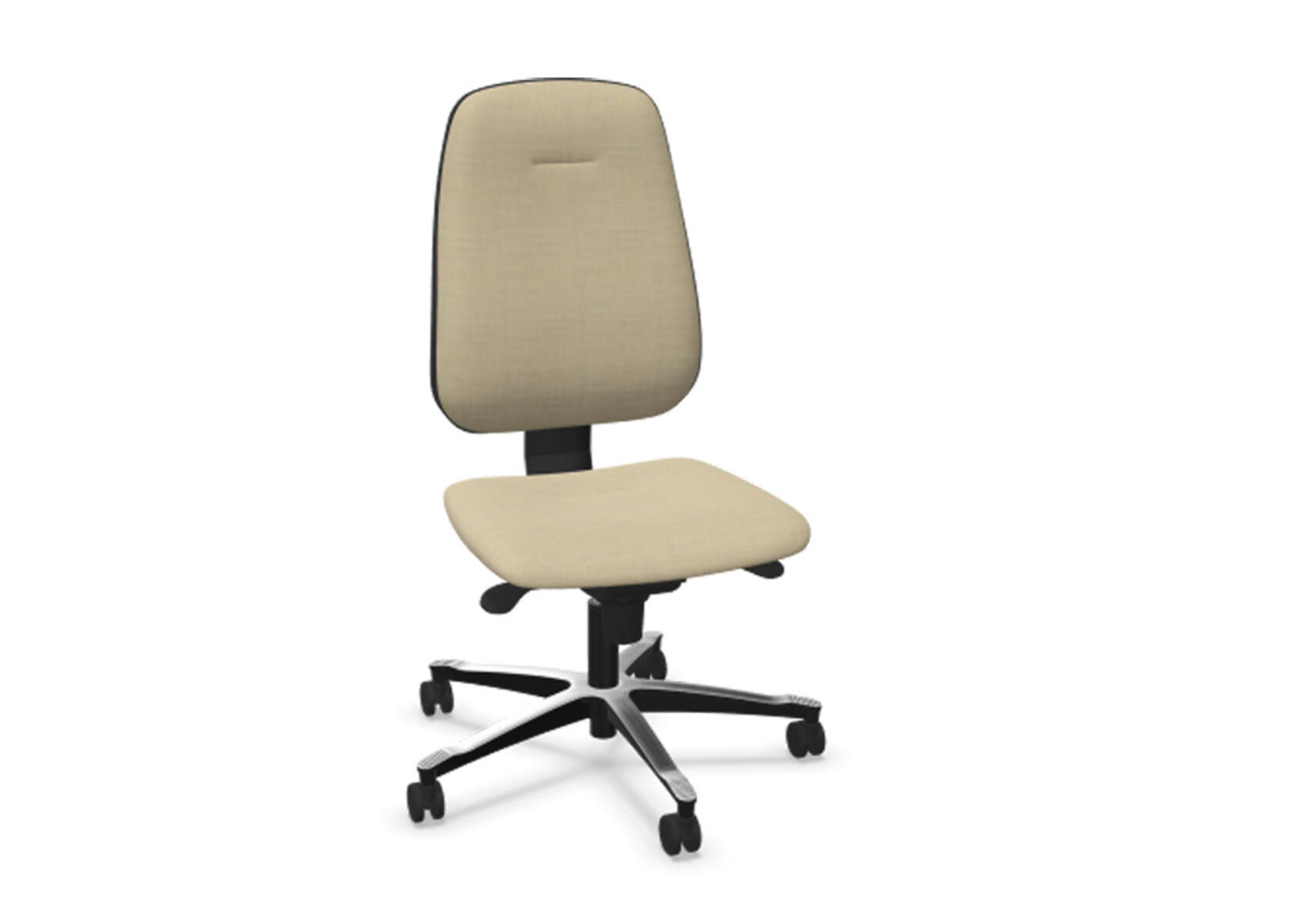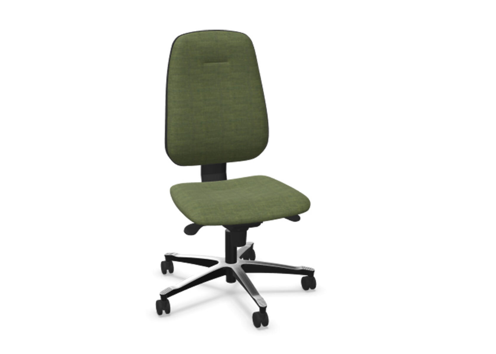 Ergonominen toimistotuoli, jossa on puoliverhoiltu keskikorkea selkänoja ja synkronimekanismi aktiiviseen työskentelyasentoon. Selkänojan kallistuskulma 20° ja istuinosan 11°, synkronoitu liike. Selkänoja lukittavissa viiteen asentoon, vastus säädettävissä säätönupilla. Selkänojan korkeussäätö 75 mm, 13 lukitusasentoa. Anti-Shock-toiminto estää selkänojan äkillisen palautumisen. Valittavissa musta polyamidiristikko tai kiillotettu alumiiniristikko. Itsejarruttavat pyörät pehmeille tai koville lattioille. Käsinojat (2D, 3D tai 4D) myydään erikseen.