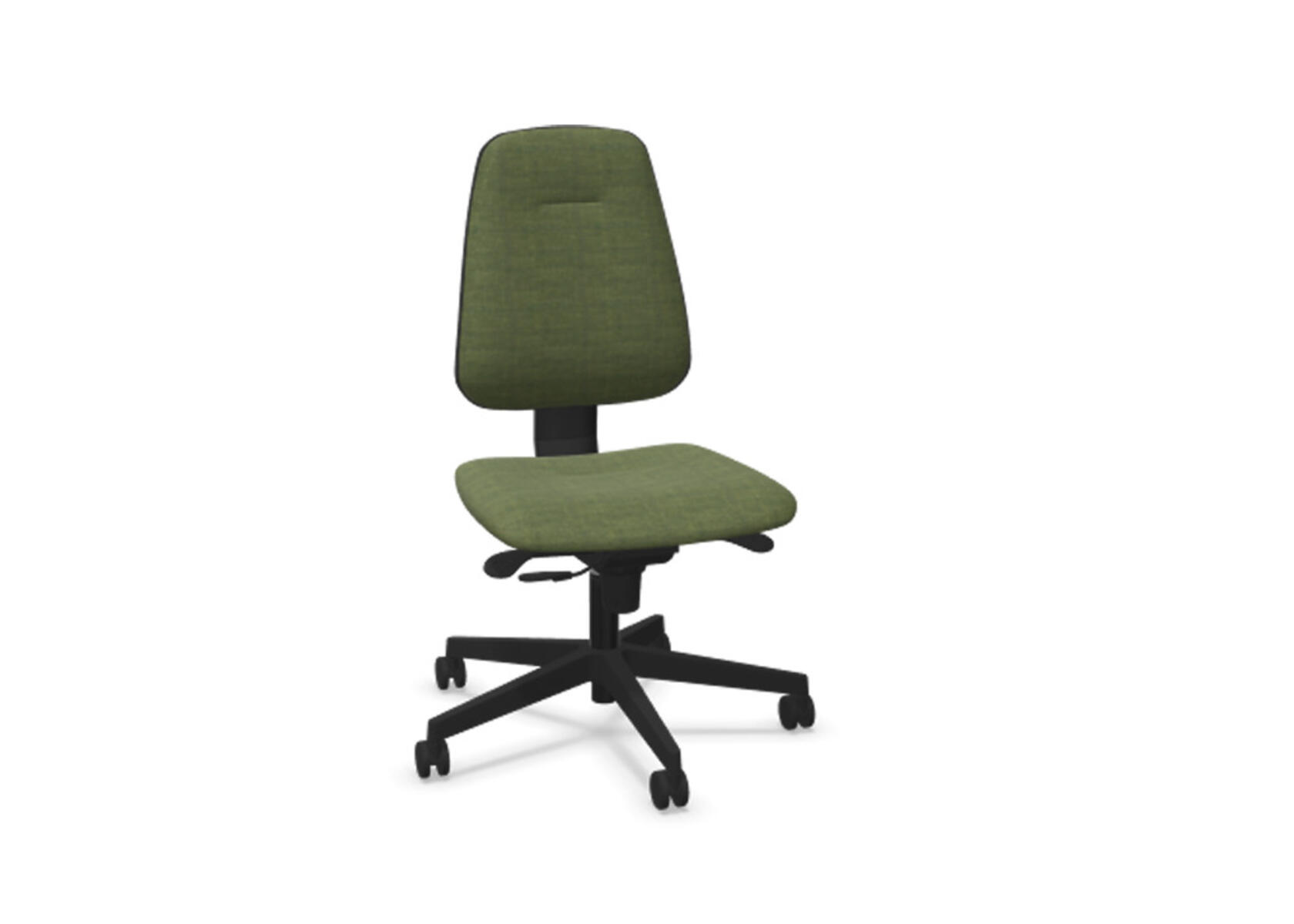 Ergonominen toimistotuoli, jossa on puoliverhoiltu keskikorkea selkänoja ja synkronimekanismi aktiiviseen työskentelyasentoon. Selkänojan kallistuskulma 20° ja istuinosan 11°, synkronoitu liike. Selkänoja lukittavissa viiteen asentoon, vastus säädettävissä säätönupilla. Selkänojan korkeussäätö 75 mm, 13 lukitusasentoa. Anti-Shock-toiminto estää selkänojan äkillisen palautumisen. Valittavissa musta polyamidiristikko tai kiillotettu alumiiniristikko. Itsejarruttavat pyörät pehmeille tai koville lattioille. Käsinojat (2D, 3D tai 4D) myydään erikseen.