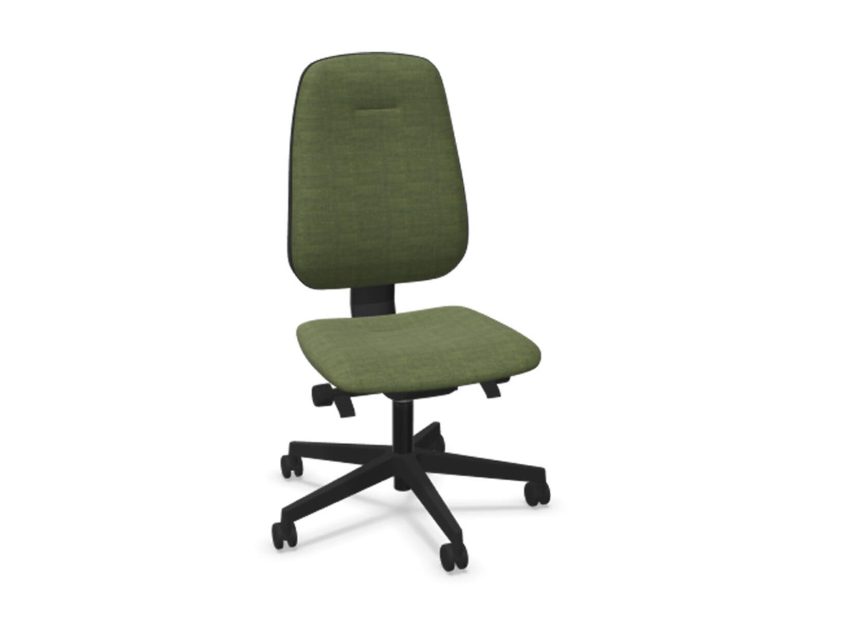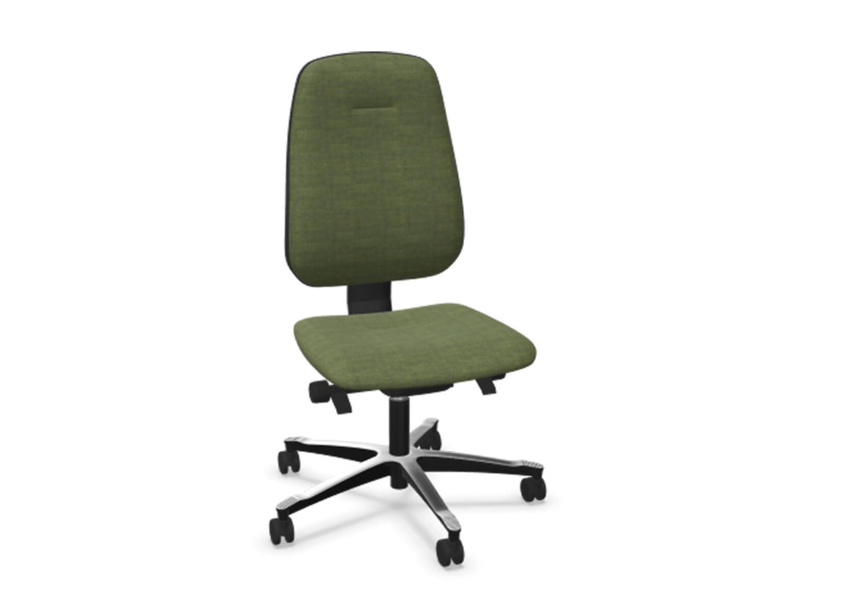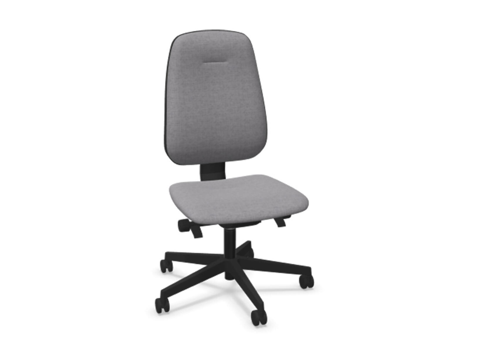 Ergonominen toimistotuoli, jossa on puoliverhoiltu keskikorkea selkänoja ja synkronimekanismi aktiiviseen työskentelyasentoon. Selkänojan kallistuskulma 20° ja istuinosan 11°, synkronoitu liike. Selkänoja lukittavissa viiteen asentoon, vastus säädettävissä säätönupilla. Selkänojan korkeussäätö 75 mm, 13 lukitusasentoa. Anti-Shock-toiminto estää selkänojan äkillisen palautumisen. Valittavissa musta polyamidiristikko tai kiillotettu alumiiniristikko. Itsejarruttavat pyörät pehmeille tai koville lattioille. Käsinojat (2D, 3D tai 4D) myydään erikseen.