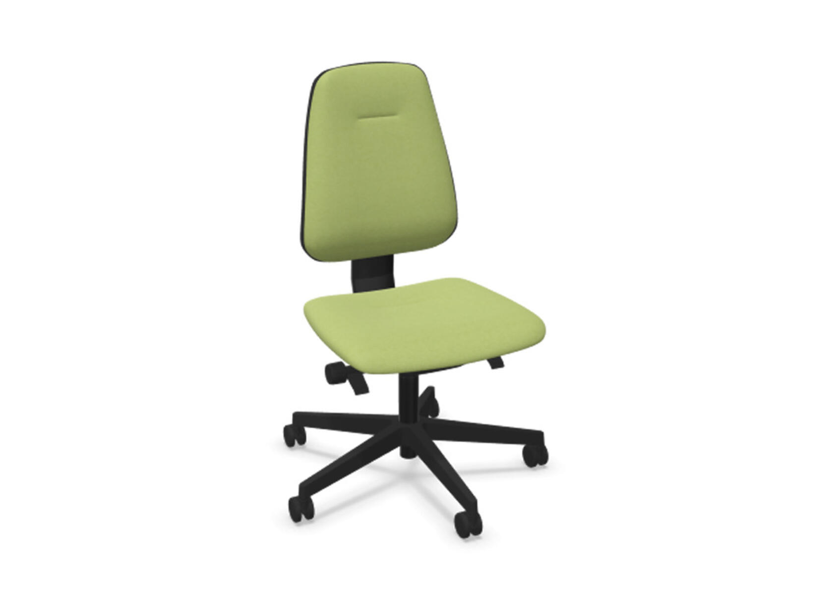 Ergonominen toimistotuoli, jossa on puoliverhoiltu keskikorkea selkänoja ja synkronimekanismi aktiiviseen työskentelyasentoon. Selkänojan kallistuskulma 20° ja istuinosan 11°, synkronoitu liike. Selkänoja lukittavissa viiteen asentoon, vastus säädettävissä säätönupilla. Selkänojan korkeussäätö 75 mm, 13 lukitusasentoa. Anti-Shock-toiminto estää selkänojan äkillisen palautumisen. Valittavissa musta polyamidiristikko tai kiillotettu alumiiniristikko. Itsejarruttavat pyörät pehmeille tai koville lattioille. Käsinojat (2D, 3D tai 4D) myydään erikseen.