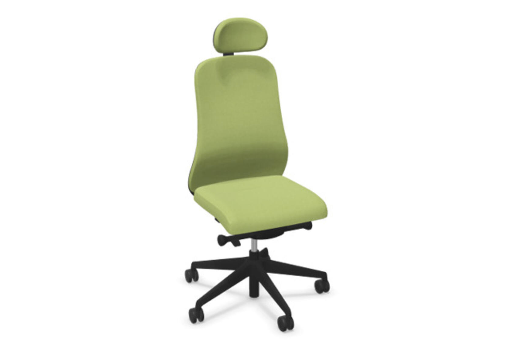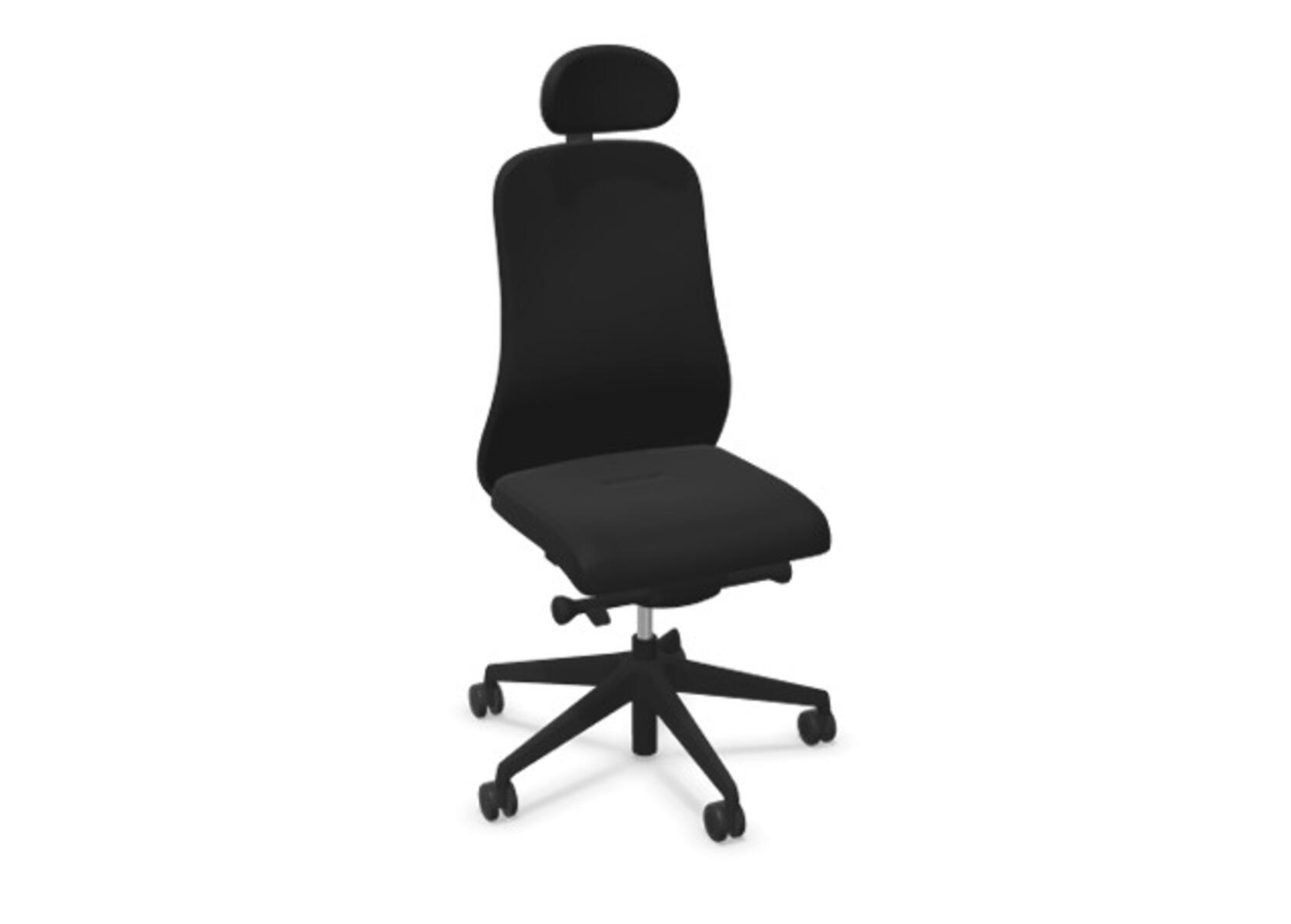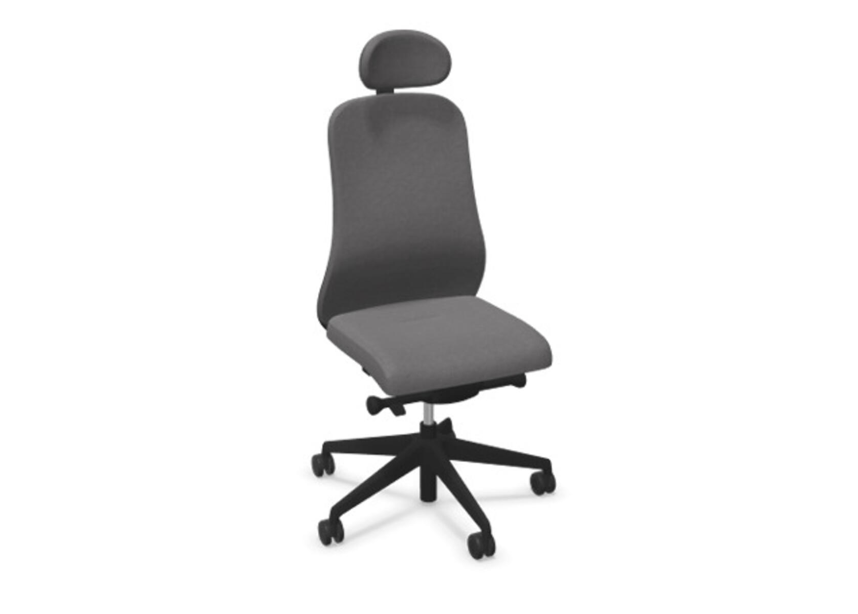 Moderni ja ergonominen toimistotuoli, jossa verhoiltu selkänoja, kehittynyt synkromekanismi ja istuinsyvyyden säätö, tarjoen optimaalisen tuen aktiiviseen istumiseen koko työpäivän ajan. Verhoiltu polyesterikankaalla. Synkronoitu selkänojan ja istuimen kallistus mahdollistaa aktiivisen ja mukavan istuma-asennon. Selkänojan kallistuskulma 23° synkronoitu istuimen 10° kallistuskulman kanssa. Selkänoja lukittavissa 5 eri asentoon mahdollistaen yksilöllisen säädön, ja sen vastusta voi säätää helposti säätönupilla, 7 eri kohtaan. Ei selkänojan korkeussäätöä. Istuinsyvyyden säätö 60 mm, 7 lukitusasentoa. Negatiivinen istuinkulma –2°, synkronoitu selkänojan 5° kallistukseen, mikä takaa optimaalisen tuen kaikissa kallistusasennossa. Selkänojassa on Anti-Shock-toiminto, joka estää selkänojaa palautumasta äkillisesti, kun kallistus vapautetaan. Verhoiltu niskatuki, säädettävä: syvyys 20 mm, kulma 70° ja korkeus 100 mm. Valitse ristikko mustasta polyamidista tai kiillotetusta alumiinista sekä itsestään jarruttavat pyörät pehmeille tai koville lattioille. Lisävarusteena saatavilla lannerangan tuki, manuaalisesti säädettävä korkeussuunnassa (55 mm). Käsinojat (2D, 3D tai 4D) myydään erikseen.