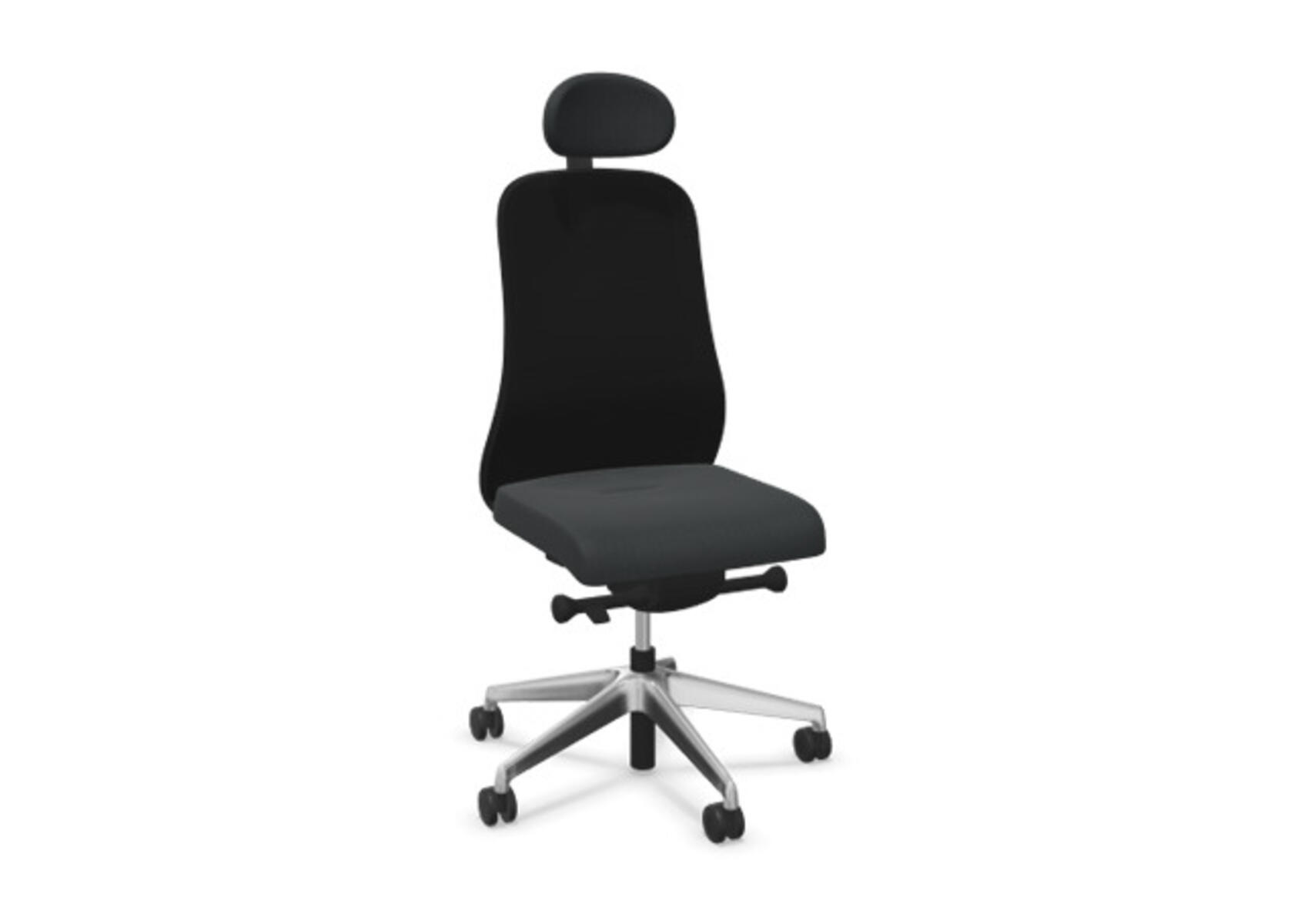 Moderni ja ergonominen toimistotuoli, jossa verhoiltu selkänoja, kehittynyt synkromekanismi ja istuinsyvyyden säätö, tarjoen optimaalisen tuen aktiiviseen istumiseen koko työpäivän ajan. Verhoiltu polyesterikankaalla. Synkronoitu selkänojan ja istuimen kallistus mahdollistaa aktiivisen ja mukavan istuma-asennon. Selkänojan kallistuskulma 21° synkronoitu istuimen 7° kallistuskulman kanssa. Selkänoja lukittavissa neljään asentoon. Varustettu automaattisella vastussäädöllä käyttäjän painon mukaan sekä lisäsäätömahdollisuudella 3 kohtaan. Ei selkänojan korkeussäätöä. Istuinsyvyyden säätö 60 mm, 7 lukitusasentoa. Selkänojassa on Anti-Shock-toiminto, joka estää selkänojaa palautumasta äkillisesti, kun kallistus vapautetaan. Valitse ristikko mustasta polyamidista tai kiillotetusta alumiinista sekä itsestään jarruttavat pyörät pehmeille tai koville lattioille. Lisävarusteena saatavilla lannerangan tuki, manuaalisesti säädettävä korkeussuunnassa (55 mm). Käsinojat (2D, 3D tai 4D) myydään erikseen.