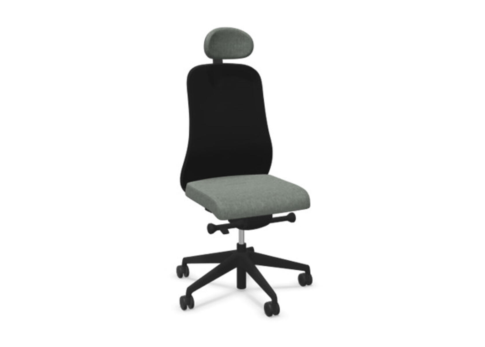 Moderni ja ergonominen toimistotuoli, jossa verkkoselkänoja, kehittynyt synkromekanismi ja istuinsyvyyden säätö, tarjoen optimaalisen tuen aktiiviseen istumiseen koko työpäivän ajan. Verhoiltu villakankaalla. Synkronoitu selkänojan ja istuimen kallistus mahdollistaa aktiivisen ja mukavan istuma-asennon. Selkänojan kallistuskulma 23° synkronoitu istuimen 10° kallistuskulman kanssa. Selkänoja lukittavissa 5 eri asentoon mahdollistaen yksilöllisen säädön, ja sen vastusta voi säätää helposti säätönupilla, 7 eri kohtaan. Ei selkänojan korkeussäätöä. Istuinsyvyyden säätö 60 mm, 7 lukitusasentoa. Negatiivinen istuinkulma –2°, synkronoitu selkänojan 5° kallistukseen, mikä takaa optimaalisen tuen kaikissa kallistusasennossa. Selkänojassa on Anti-Shock-toiminto, joka estää selkänojaa palautumasta äkillisesti, kun kallistus vapautetaan. Verhoiltu niskatuki, säädettävä: syvyys 20 mm, kulma 70° ja korkeus 100 mm. Valitse ristikko mustasta polyamidista tai kiillotetusta alumiinista sekä itsestään jarruttavat pyörät pehmeille tai koville lattioille. Lisävarusteena saatavilla lannerangan tuki, manuaalisesti säädettävä korkeussuunnassa (55 mm). Käsinojat (2D, 3D tai 4D) myydään erikseen.