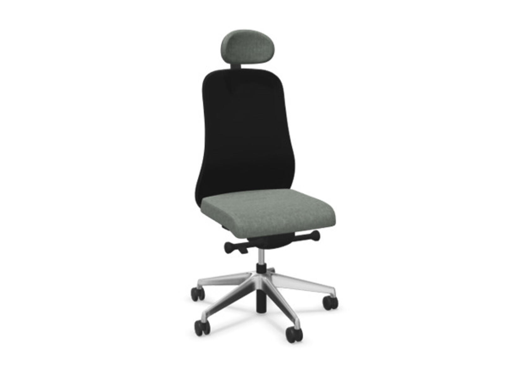 Moderni ja ergonominen toimistotuoli, jossa verhoiltu selkänoja, kehittynyt synkromekanismi ja istuinsyvyyden säätö, tarjoen optimaalisen tuen aktiiviseen istumiseen koko työpäivän ajan. Verhoiltu polyesterikankaalla. Synkronoitu selkänojan ja istuimen kallistus mahdollistaa aktiivisen ja mukavan istuma-asennon. Selkänojan kallistuskulma 23° synkronoitu istuimen 10° kallistuskulman kanssa. Selkänoja lukittavissa 5 eri asentoon mahdollistaen yksilöllisen säädön, ja sen vastusta voi säätää helposti säätönupilla, 7 eri kohtaan. Ei selkänojan korkeussäätöä. Istuinsyvyyden säätö 60 mm, 7 lukitusasentoa. Negatiivinen istuinkulma –2°, synkronoitu selkänojan 5° kallistukseen, mikä takaa optimaalisen tuen kaikissa kallistusasennossa. Selkänojassa on Anti-Shock-toiminto, joka estää selkänojaa palautumasta äkillisesti, kun kallistus vapautetaan. Verhoiltu niskatuki, säädettävä: syvyys 20 mm, kulma 70° ja korkeus 100 mm. Valitse ristikko vaaleanharmaasta polyamidista tai kiillotetusta alumiinista sekä itsestään jarruttavat pyörät pehmeille tai koville lattioille. Lisävarusteena saatavilla lannerangan tuki, manuaalisesti säädettävä korkeussuunnassa (55 mm). Käsinojat (2D, 3D tai 4D) myydään erikseen.