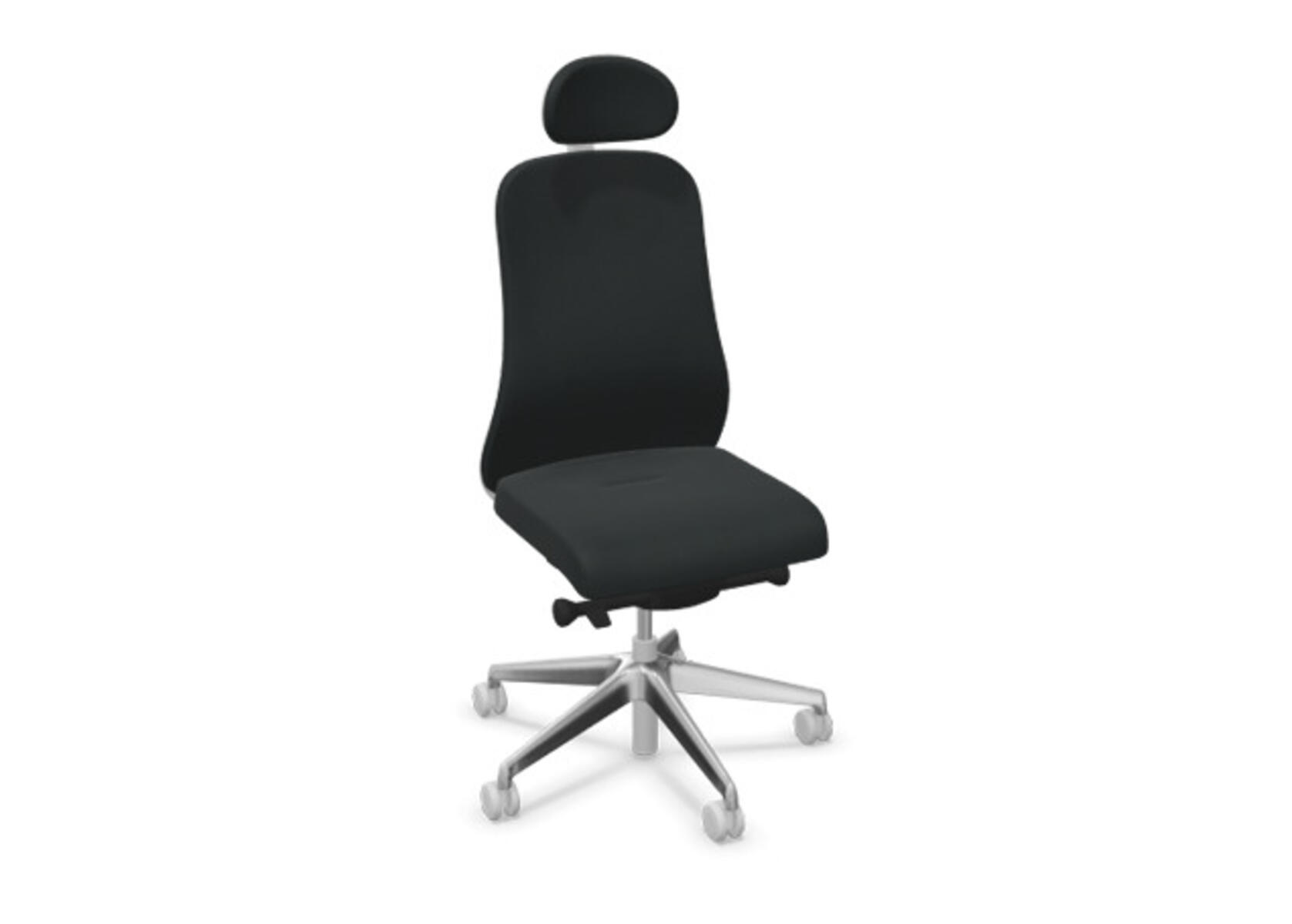 Moderni ja ergonominen toimistotuoli, jossa verhoiltu selkänoja, kehittynyt synkromekanismi ja istuinsyvyyden säätö, tarjoen optimaalisen tuen aktiiviseen istumiseen koko työpäivän ajan. Verhoiltu villakankaalla. Synkronoitu selkänojan ja istuimen kallistus mahdollistaa aktiivisen ja mukavan istuma-asennon. Selkänojan kallistuskulma 23° synkronoitu istuimen 10° kallistuskulman kanssa. Selkänoja lukittavissa 5 eri asentoon mahdollistaen yksilöllisen säädön, ja sen vastusta voi säätää helposti säätönupilla, 7 eri kohtaan. Ei selkänojan korkeussäätöä. Istuinsyvyyden säätö 60 mm, 7 lukitusasentoa. Negatiivinen istuinkulma –2°, synkronoitu selkänojan 5° kallistukseen, mikä takaa optimaalisen tuen kaikissa kallistusasennossa. Selkänojassa on Anti-Shock-toiminto, joka estää selkänojaa palautumasta äkillisesti, kun kallistus vapautetaan. Verhoiltu niskatuki, säädettävä: syvyys 20 mm, kulma 70° ja korkeus 100 mm. Valitse ristikko mustasta polyamidista tai kiillotetusta alumiinista sekä itsestään jarruttavat pyörät pehmeille tai koville lattioille. Lisävarusteena saatavilla lannerangan tuki, manuaalisesti säädettävä korkeussuunnassa (55 mm). Käsinojat (2D, 3D tai 4D) myydään erikseen.