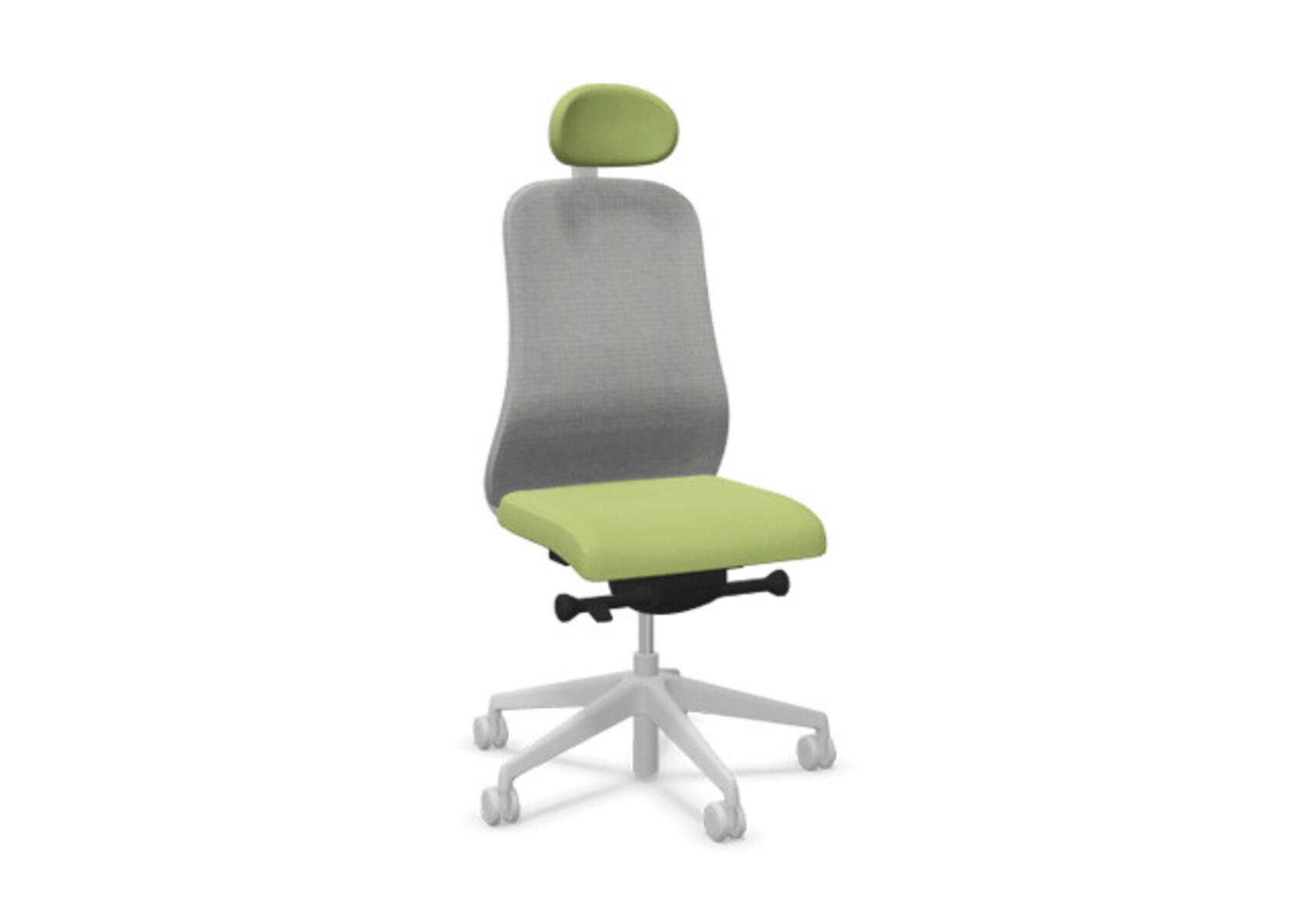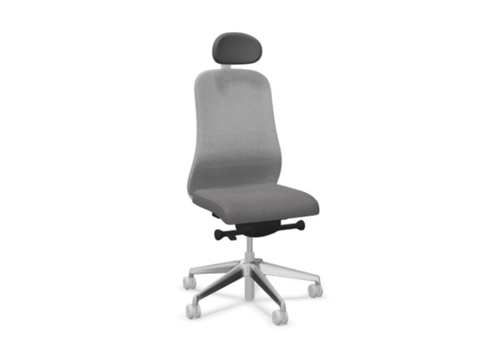 Moderni ja ergonominen toimistotuoli, jossa verhoiltu selkänoja, kehittynyt synkromekanismi ja istuinsyvyyden säätö, tarjoen optimaalisen tuen aktiiviseen istumiseen koko työpäivän ajan. Verhoiltu villakankaalla. Synkronoitu selkänojan ja istuimen kallistus mahdollistaa aktiivisen ja mukavan istuma-asennon. Selkänojan kallistuskulma 23° synkronoitu istuimen 10° kallistuskulman kanssa. Selkänoja lukittavissa 5 eri asentoon mahdollistaen yksilöllisen säädön, ja sen vastusta voi säätää helposti säätönupilla, 7 eri kohtaan. Ei selkänojan korkeussäätöä. Istuinsyvyyden säätö 60 mm, 7 lukitusasentoa. Negatiivinen istuinkulma –2°, synkronoitu selkänojan 5° kallistukseen, mikä takaa optimaalisen tuen kaikissa kallistusasennossa. Selkänojassa on Anti-Shock-toiminto, joka estää selkänojaa palautumasta äkillisesti, kun kallistus vapautetaan. Verhoiltu niskatuki, säädettävä: syvyys 20 mm, kulma 70° ja korkeus 100 mm. Valitse ristikko mustasta polyamidista tai kiillotetusta alumiinista sekä itsestään jarruttavat pyörät pehmeille tai koville lattioille. Lisävarusteena saatavilla lannerangan tuki, manuaalisesti säädettävä korkeussuunnassa (55 mm). Käsinojat (2D, 3D tai 4D) myydään erikseen.