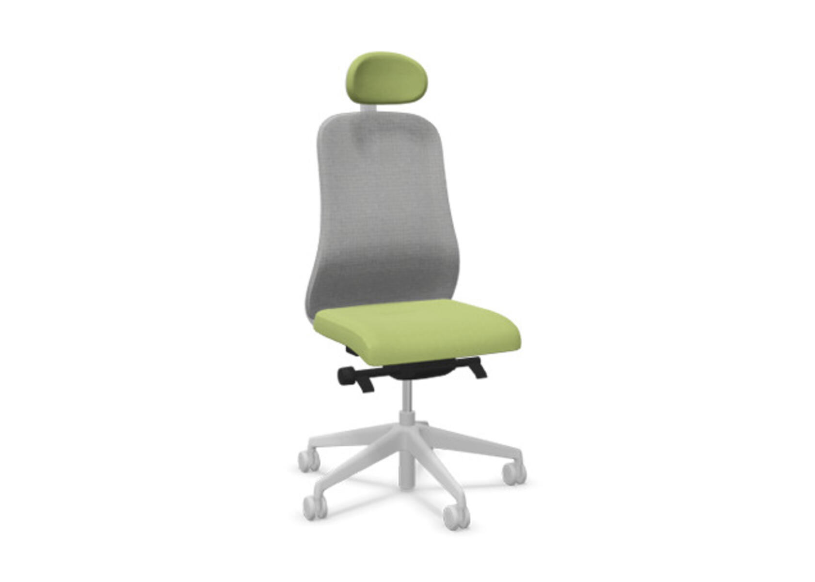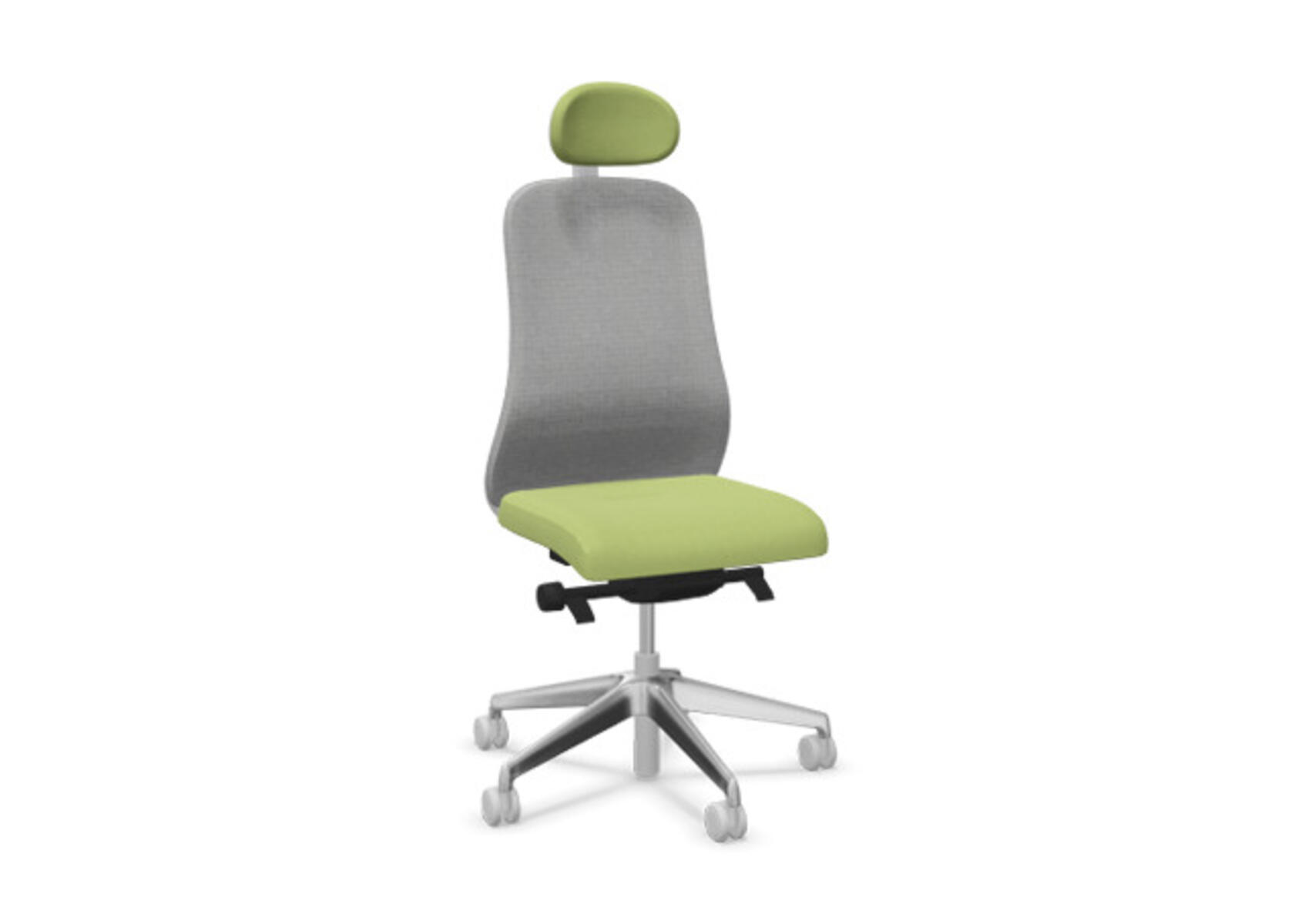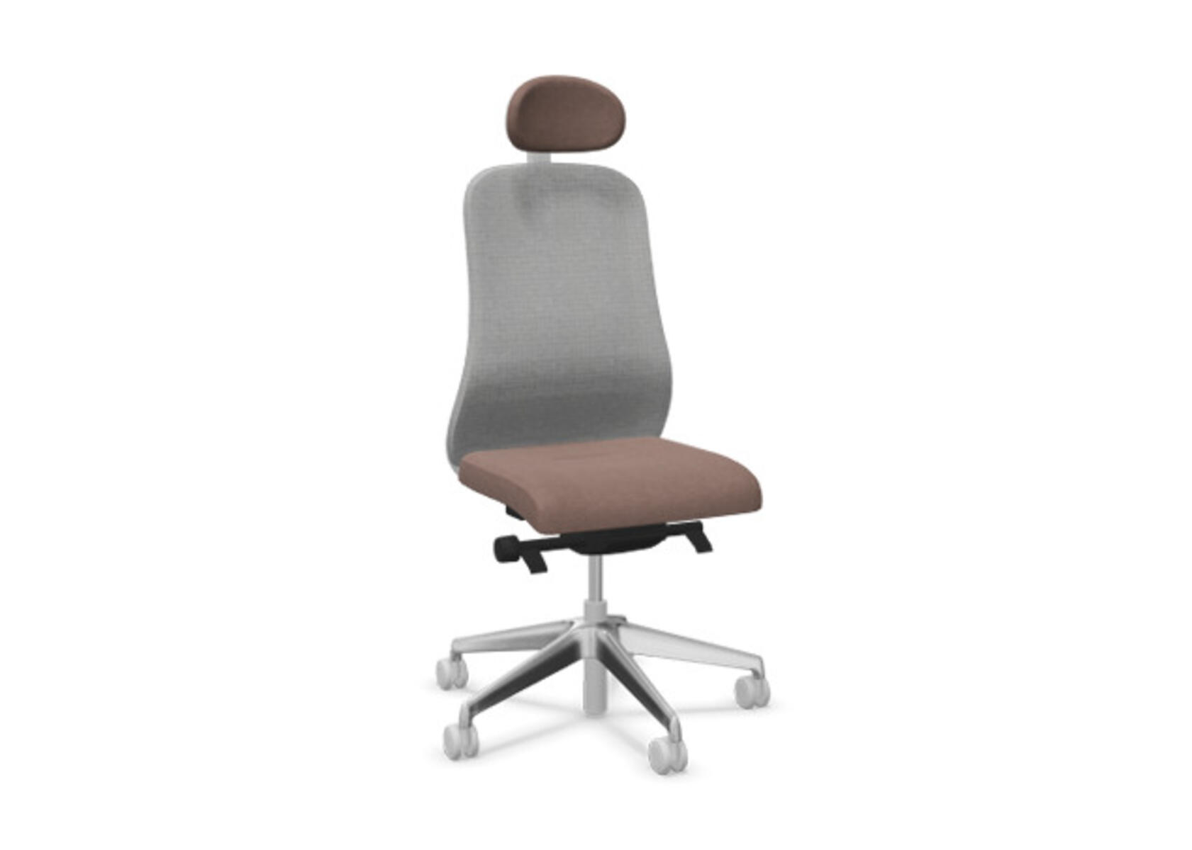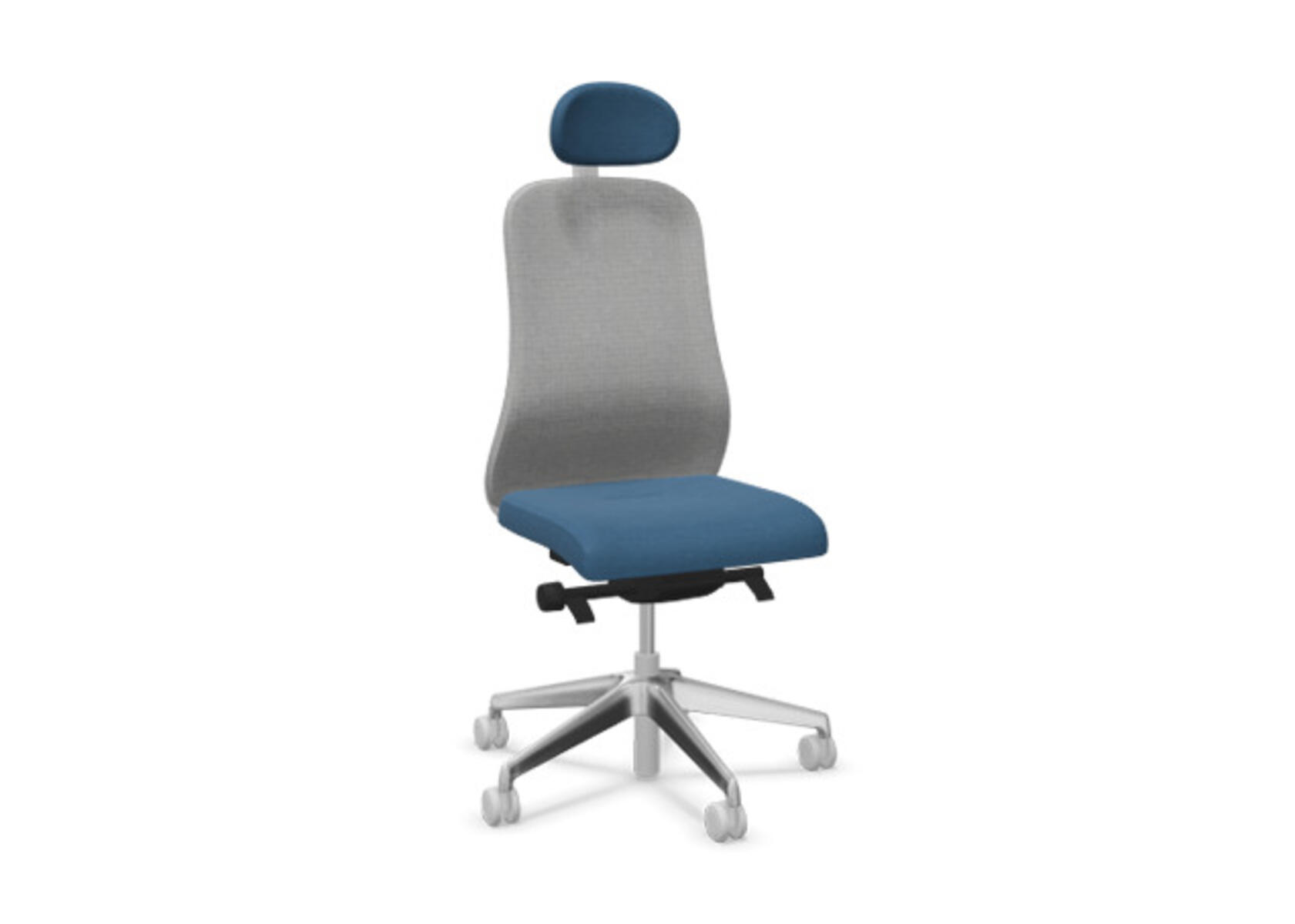 Moderni ja ergonominen toimistotuoli, jossa verhoiltu selkänoja, kehittynyt synkromekanismi ja istuinsyvyyden säätö, tarjoen optimaalisen tuen aktiiviseen istumiseen koko työpäivän ajan. Verhoiltu polyesterikankaalla. Synkronoitu selkänojan ja istuimen kallistus mahdollistaa aktiivisen ja mukavan istuma-asennon. Selkänojan kallistuskulma 23° synkronoitu istuimen 10° kallistuskulman kanssa. Selkänoja lukittavissa 5 eri asentoon mahdollistaen yksilöllisen säädön, ja sen vastusta voi säätää helposti säätönupilla, 7 eri kohtaan. Ei selkänojan korkeussäätöä. Istuinsyvyyden säätö 60 mm, 7 lukitusasentoa. Negatiivinen istuinkulma –2°, synkronoitu selkänojan 5° kallistukseen, mikä takaa optimaalisen tuen kaikissa kallistusasennossa. Selkänojassa on Anti-Shock-toiminto, joka estää selkänojaa palautumasta äkillisesti, kun kallistus vapautetaan. Verhoiltu niskatuki, säädettävä: syvyys 20 mm, kulma 70° ja korkeus 100 mm. Valitse ristikko vaaleanharmaasta polyamidista tai kiillotetusta alumiinista sekä itsestään jarruttavat pyörät pehmeille tai koville lattioille. Lisävarusteena saatavilla lannerangan tuki, manuaalisesti säädettävä korkeussuunnassa (55 mm). Käsinojat (2D, 3D tai 4D) myydään erikseen.