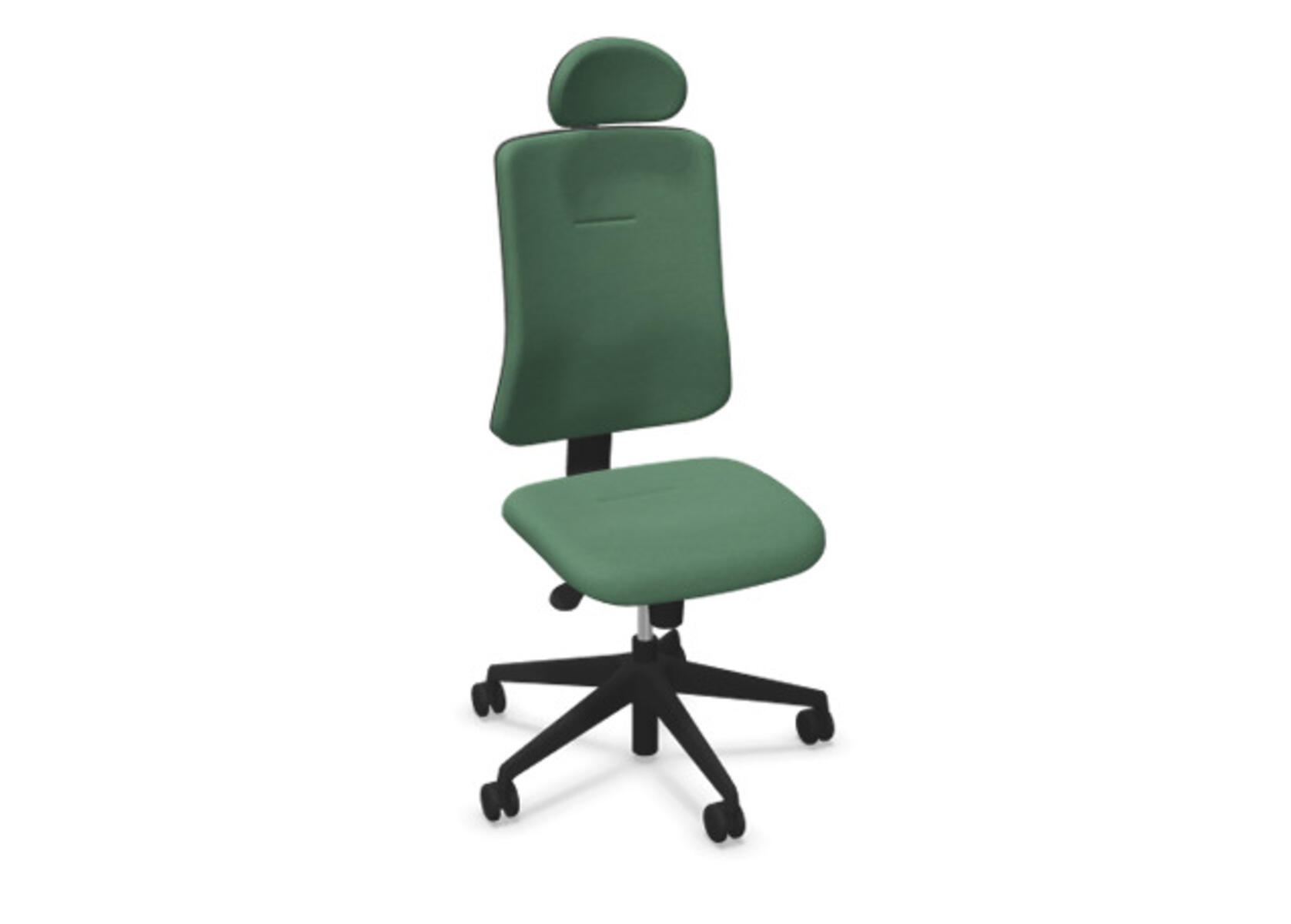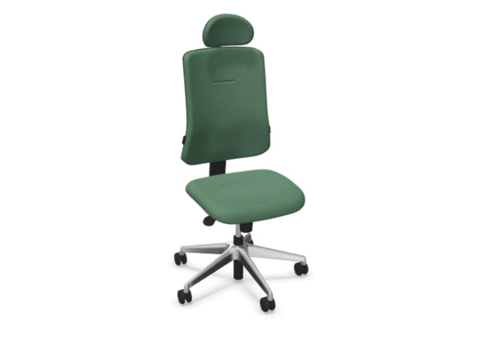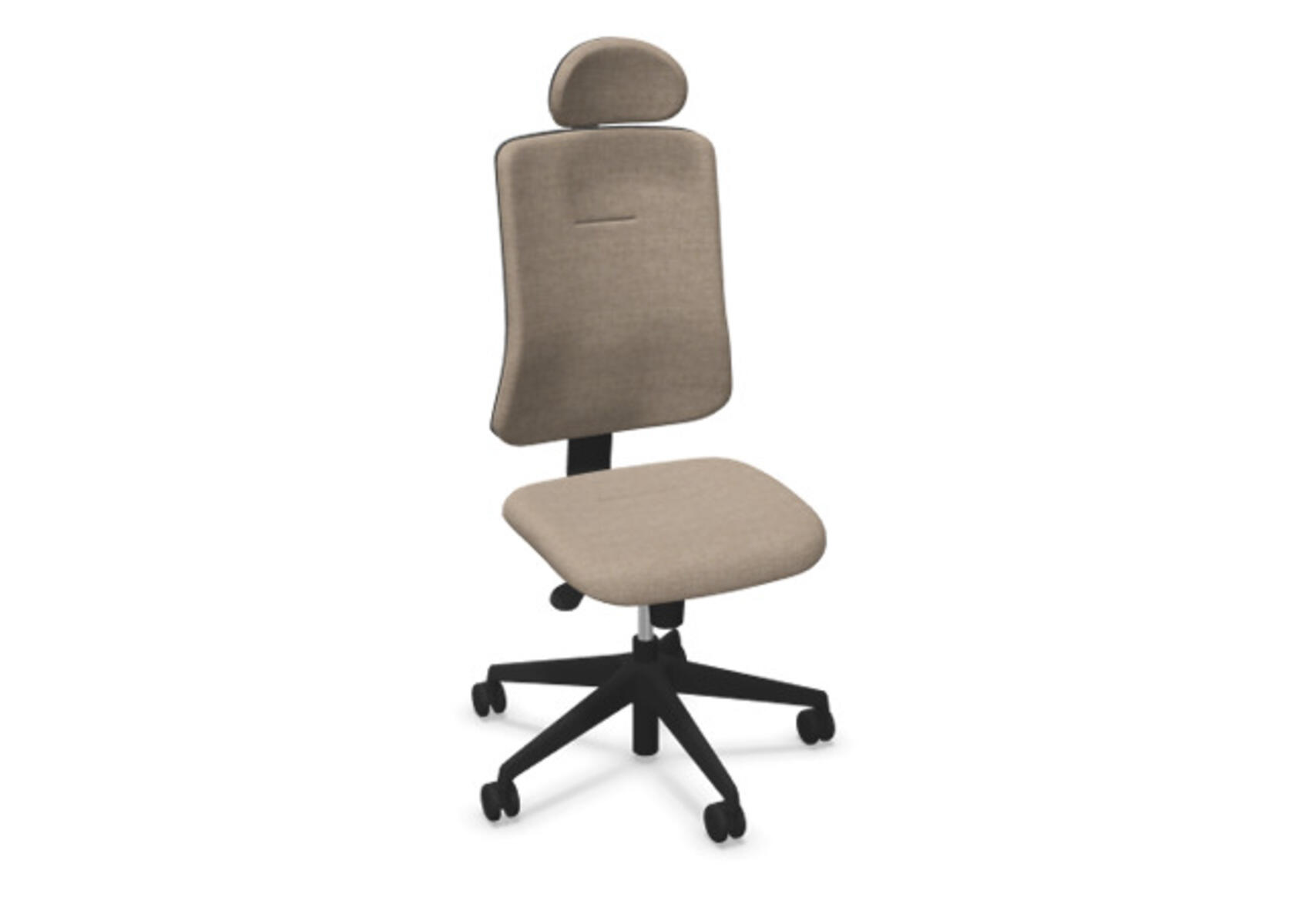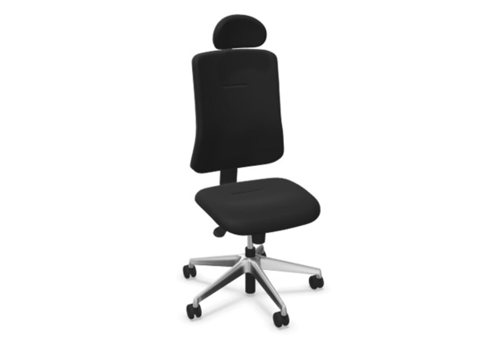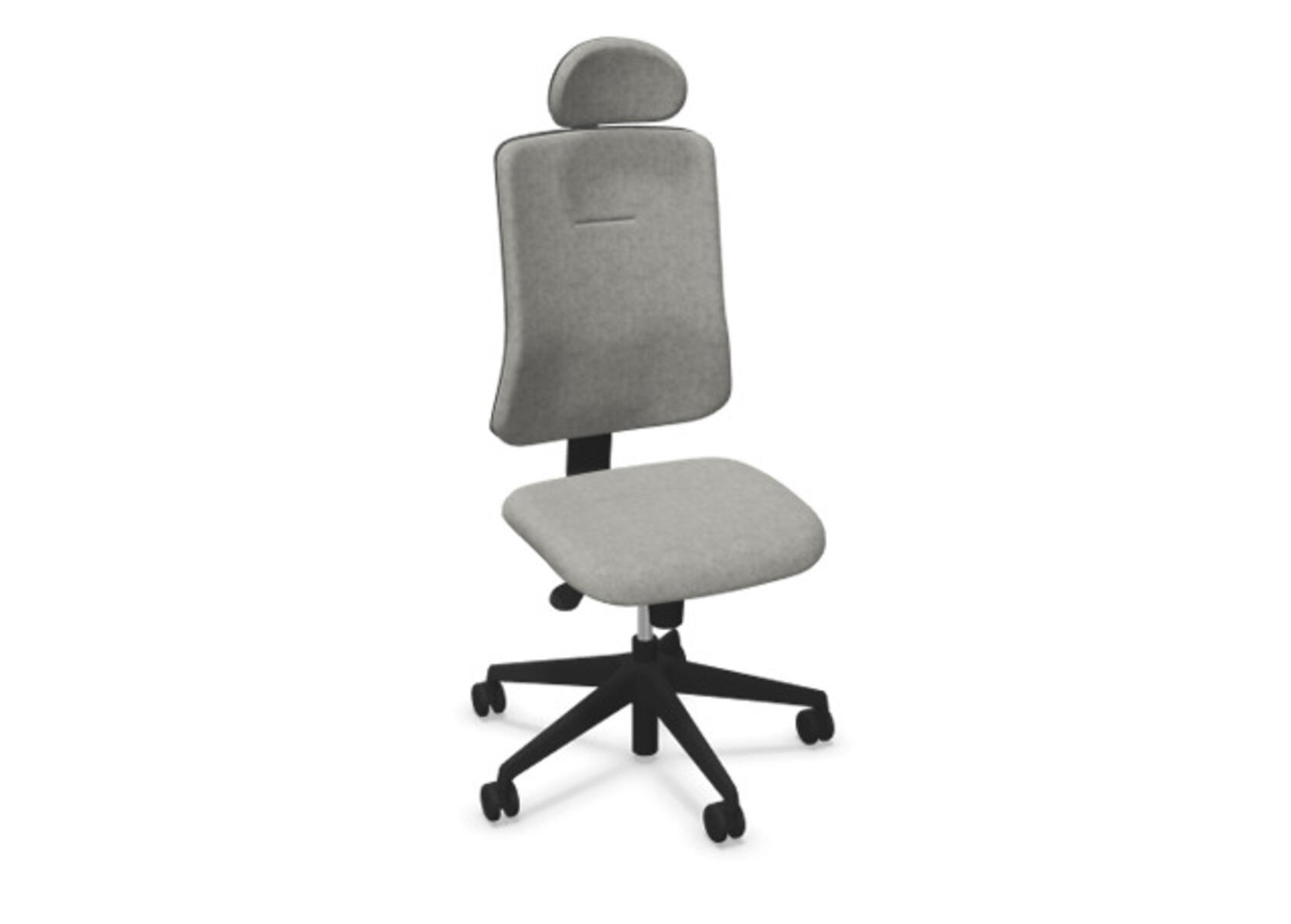 Ergonominen toimistotuoli, jossa verhoiltu selkänoja. Edistynyt synkronimekanismi takaa aktiivisen ja mukavan istuma-asennon koko työpäivän ajan. Verhoiltu polyesterikankaalla. Synkronoitu selkänojan ja istuimen kallistus mahdollistaa aktiivisen ja mukavan istuma-asennon. Selkänojan kallistuskulma 20° synkronoitu istuimen 11° kallistuskulman kanssa. Selkänoja lukittavissa 5 asentoon, selkänojan vastus säädettävissä säätönupilla. Selkänoja on korkeussäädettävä 70 mm ja lukittavissa 5 eri asentoon. Verhoiltu niskatuki, säädettävä: syvyys 20 mm, kulma 70° ja korkeus 100 mm. Selkänojassa on Anti-Shock-toiminto, joka estää selkänojaa palautumasta äkillisesti, kun kallistus vapautetaan. Valitse ristikko mustasta polyamidista tai kiillotetusta alumiinista sekä itsestään jarruttavat pyörät pehmeille tai koville lattioille. Lisävarusteena saatavilla lannerangan tuki, manuaalisesti säädettävä syvyyssuunnassa (15 mm) ja korkeussuunnassa (20 mm). Käsinojat (2D, 3D tai 4D) myydään erikseen.