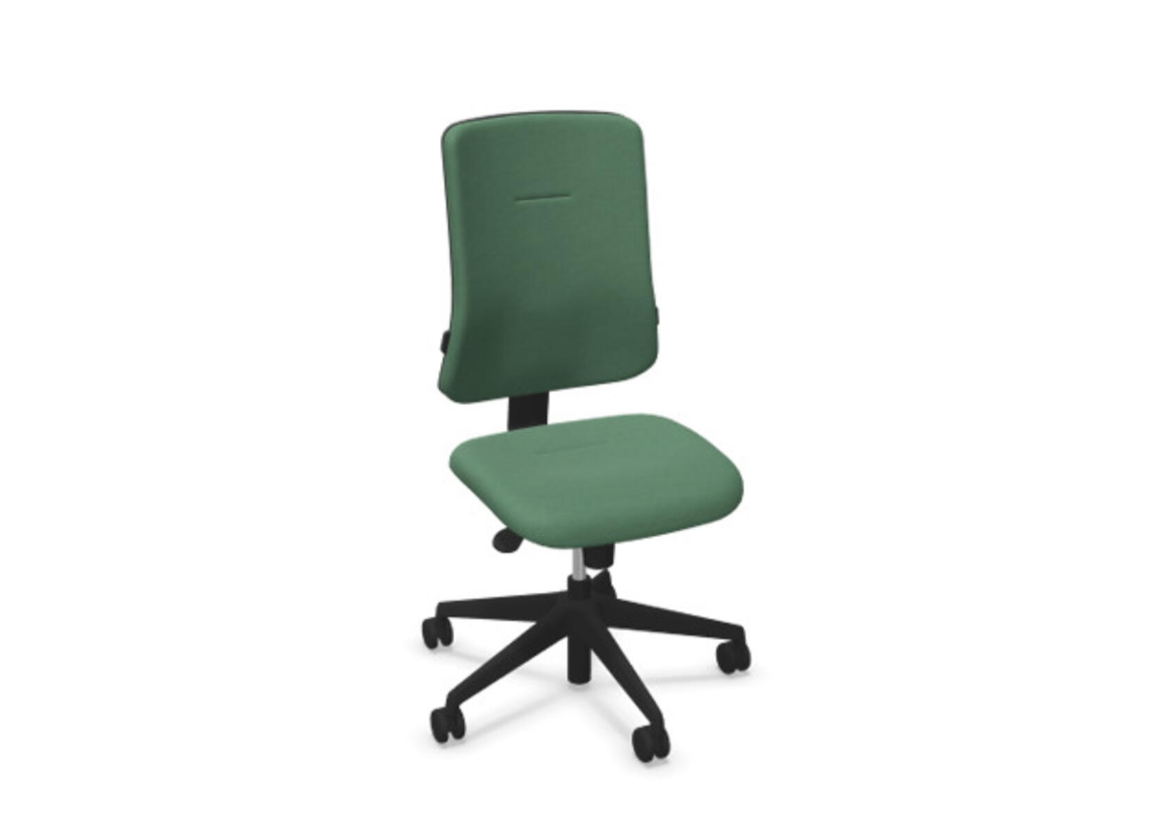 Ergonominen toimistotuoli, jossa verhoiltu selkänoja. Edistynyt synkronimekanismi takaa aktiivisen ja mukavan istuma-asennon koko työpäivän ajan. Verhoiltu polyesterikankaalla. Synkronoitu selkänojan ja istuimen kallistus mahdollistaa aktiivisen ja mukavan istuma-asennon. Selkänojan kallistuskulma 20° synkronoitu istuimen 11° kallistuskulman kanssa. Selkänoja lukittavissa 5 asentoon, selkänojan vastus säädettävissä säätönupilla. Selkänoja on korkeussäädettävä 70 mm ja lukittavissa 5 eri asentoon. Verhoiltu niskatuki, säädettävä: syvyys 20 mm, kulma 70° ja korkeus 100 mm. Selkänojassa on Anti-Shock-toiminto, joka estää selkänojaa palautumasta äkillisesti, kun kallistus vapautetaan. Valitse ristikko mustasta polyamidista tai kiillotetusta alumiinista sekä itsestään jarruttavat pyörät pehmeille tai koville lattioille. Lisävarusteena saatavilla lannerangan tuki, manuaalisesti säädettävä syvyyssuunnassa (15 mm) ja korkeussuunnassa (20 mm). Käsinojat (2D, 3D tai 4D) myydään erikseen.