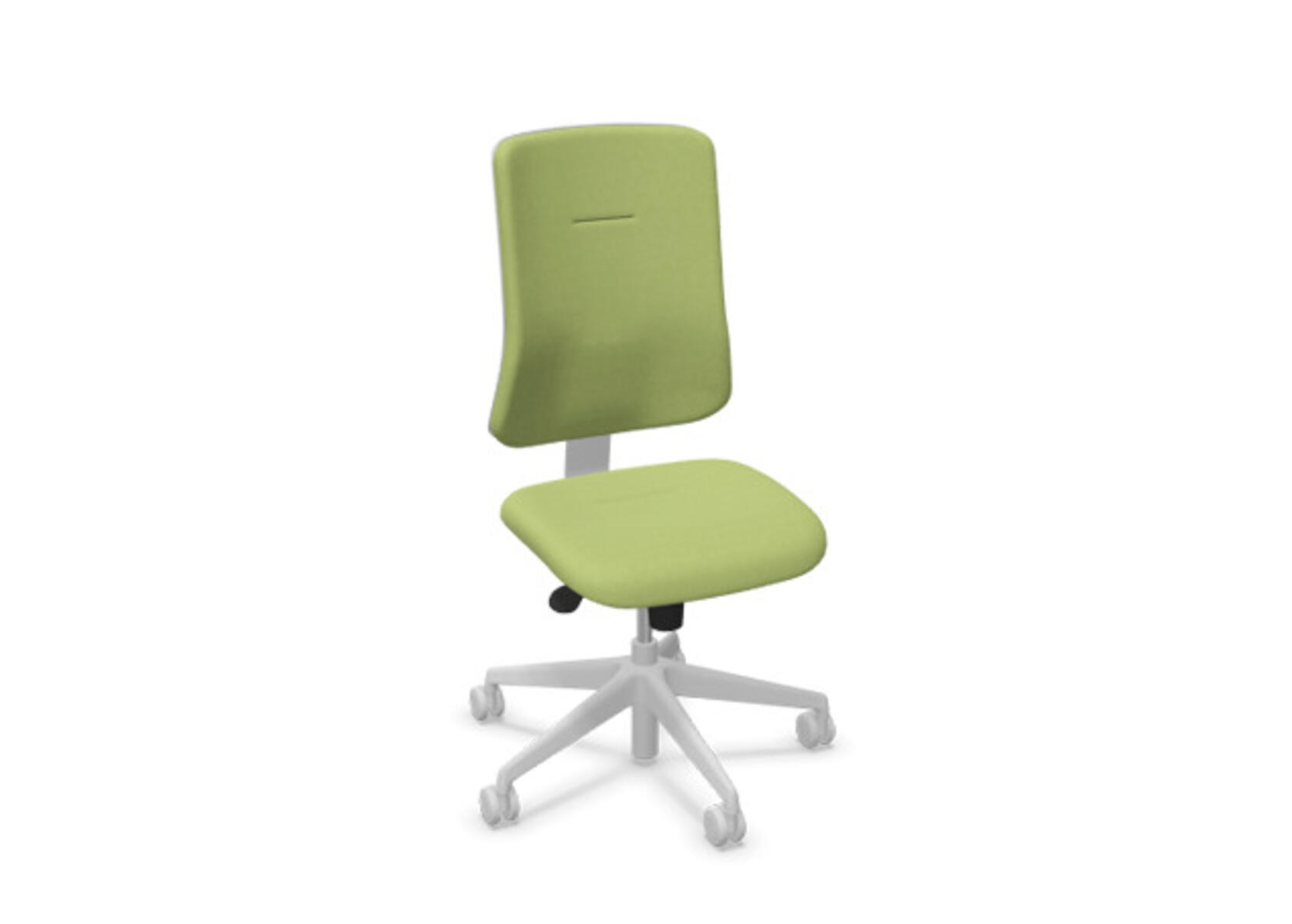 Ergonominen toimistotuoli, jossa verhoiltu selkänoja. Edistynyt synkronimekanismi takaa aktiivisen ja mukavan istuma-asennon koko työpäivän ajan. Verhoiltu polyesterikankaalla. Synkronoitu selkänojan ja istuimen kallistus mahdollistaa aktiivisen ja mukavan istuma-asennon. Selkänojan kallistuskulma 20° synkronoitu istuimen 11° kallistuskulman kanssa. Selkänoja lukittavissa 5 asentoon, selkänojan vastus säädettävissä säätönupilla. Selkänoja on korkeussäädettävä 70 mm ja lukittavissa 5 eri asentoon. Selkänojassa on Anti-Shock-toiminto, joka estää selkänojaa palautumasta äkillisesti, kun kallistus vapautetaan. Valitse ristikko vaaleanharmaasta polyamidista tai kiillotetusta alumiinista sekä itsestään jarruttavat pyörät pehmeille tai koville lattioille. Lisävarusteena saatavilla lannerangan tuki, manuaalisesti säädettävä syvyyssuunnassa (15 mm) ja korkeussuunnassa (20 mm). Käsinojat (2D, 3D tai 4D) myydään erikseen.