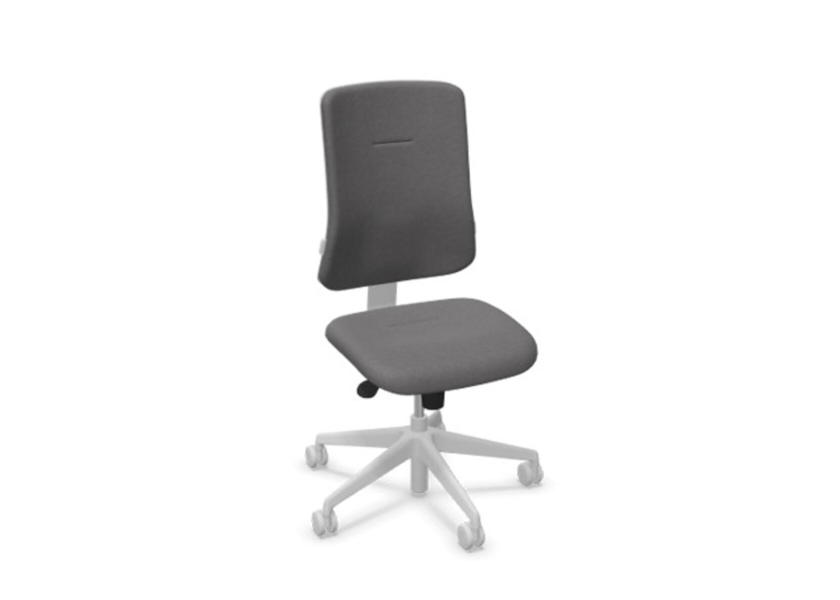 Ergonominen toimistotuoli, jossa verhoiltu selkänoja. Edistynyt synkronimekanismi takaa aktiivisen ja mukavan istuma-asennon koko työpäivän ajan. Verhoiltu polyesterikankaalla. Synkronoitu selkänojan ja istuimen kallistus mahdollistaa aktiivisen ja mukavan istuma-asennon. Selkänojan kallistuskulma 20° synkronoitu istuimen 11° kallistuskulman kanssa. Selkänoja lukittavissa 5 asentoon, selkänojan vastus säädettävissä säätönupilla. Selkänoja on korkeussäädettävä 70 mm ja lukittavissa 5 eri asentoon. Verhoiltu niskatuki, säädettävä: syvyys 20 mm, kulma 70° ja korkeus 100 mm. Selkänojassa on Anti-Shock-toiminto, joka estää selkänojaa palautumasta äkillisesti, kun kallistus vapautetaan. Valitse ristikko vaaleanharmaasta polyamidista tai kiillotetusta alumiinista sekä itsestään jarruttavat pyörät pehmeille tai koville lattioille. Lisävarusteena saatavilla lannerangan tuki, manuaalisesti säädettävä syvyyssuunnassa (15 mm) ja korkeussuunnassa (20 mm). Käsinojat (2D, 3D tai 4D) myydään erikseen.