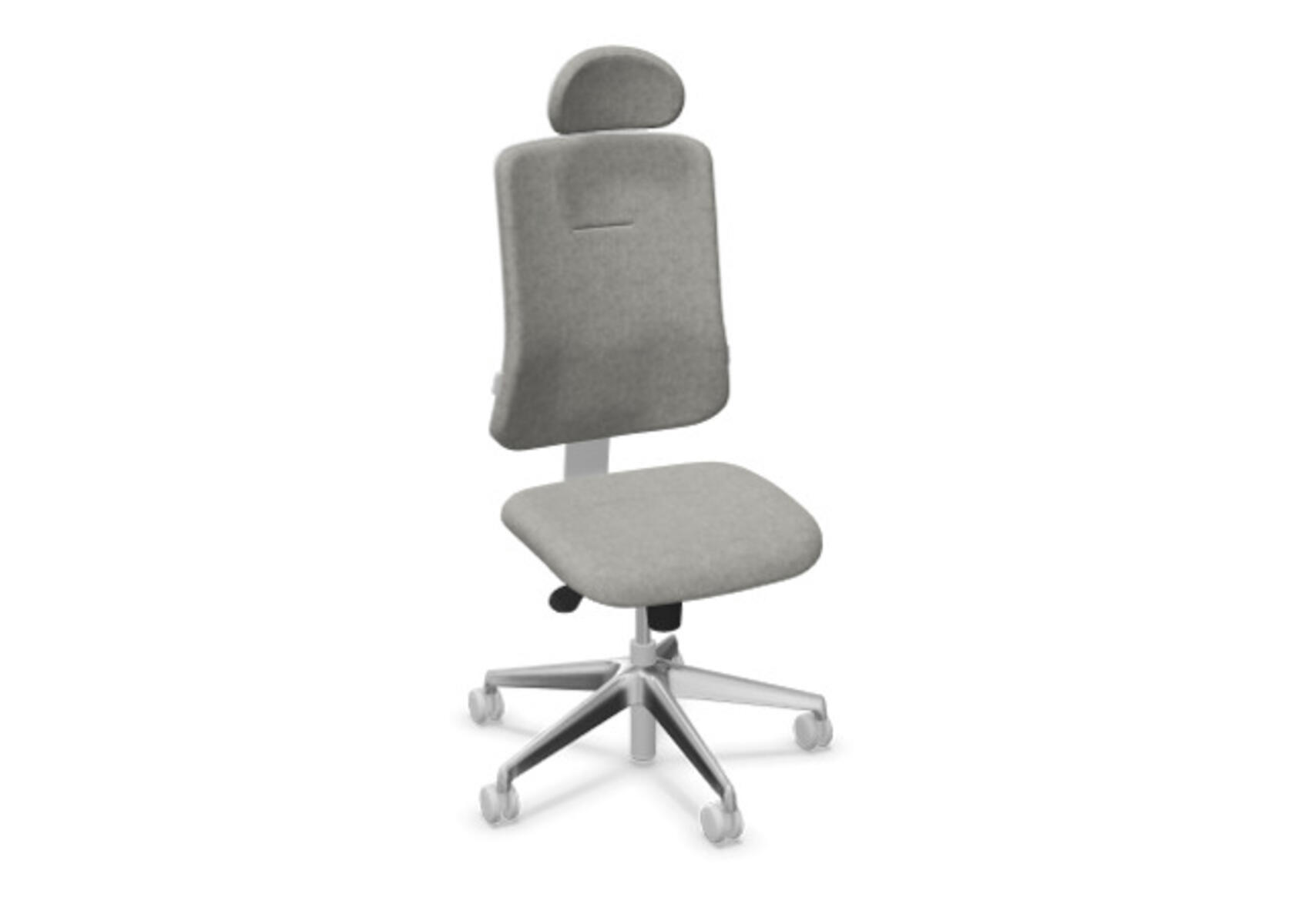 Ergonominen toimistotuoli, jossa verhoiltu selkänoja. Edistynyt synkronimekanismi takaa aktiivisen ja mukavan istuma-asennon koko työpäivän ajan. Verhoiltu polyesterikankaalla. Synkronoitu selkänojan ja istuimen kallistus mahdollistaa aktiivisen ja mukavan istuma-asennon. Selkänojan kallistuskulma 20° synkronoitu istuimen 11° kallistuskulman kanssa. Selkänoja lukittavissa 5 asentoon, selkänojan vastus säädettävissä säätönupilla. Selkänoja on korkeussäädettävä 70 mm ja lukittavissa 5 eri asentoon. Verhoiltu niskatuki, säädettävä: syvyys 20 mm, kulma 70° ja korkeus 100 mm. Selkänojassa on Anti-Shock-toiminto, joka estää selkänojaa palautumasta äkillisesti, kun kallistus vapautetaan. Valitse ristikko vaaleanharmaasta polyamidista tai kiillotetusta alumiinista sekä itsestään jarruttavat pyörät pehmeille tai koville lattioille. Lisävarusteena saatavilla lannerangan tuki, manuaalisesti säädettävä syvyyssuunnassa (15 mm) ja korkeussuunnassa (20 mm). Käsinojat (2D, 3D tai 4D) myydään erikseen.