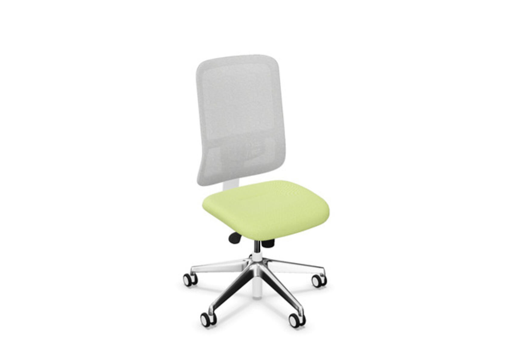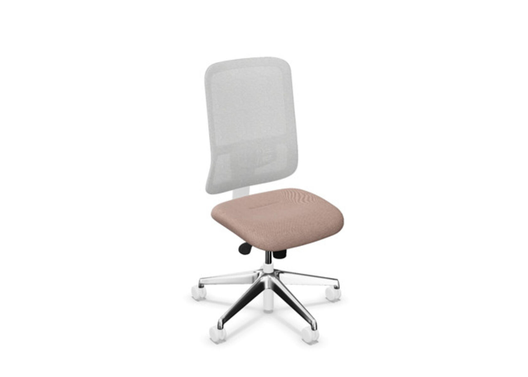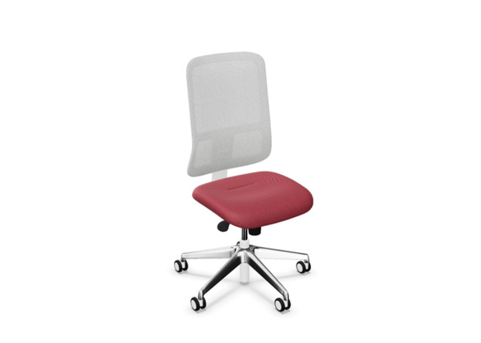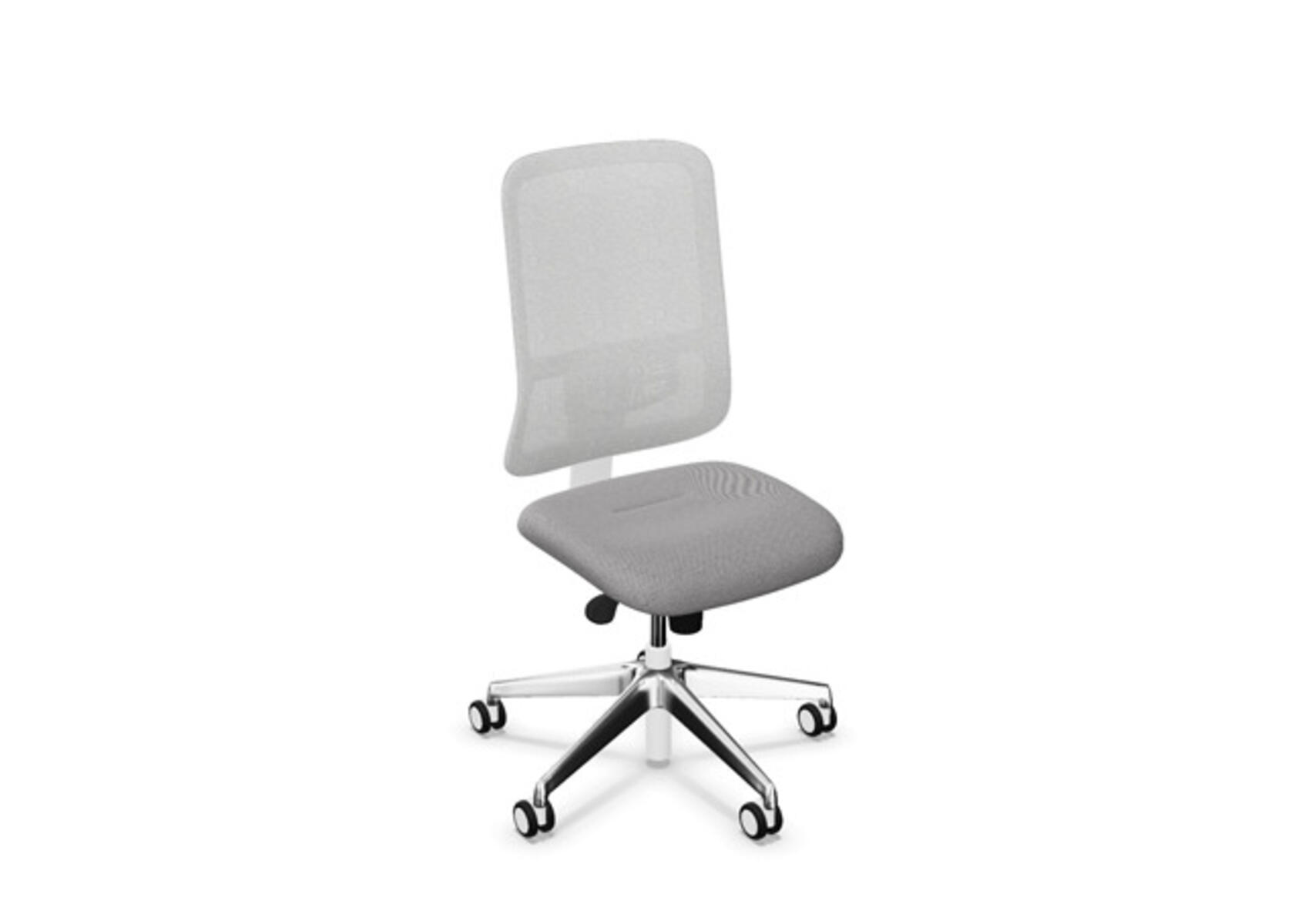 Ergonominen toimistotuoli, jossa verhoiltu selkänoja. Edistynyt synkronimekanismi takaa aktiivisen ja mukavan istuma-asennon koko työpäivän ajan. Verhoiltu polyesterikankaalla. Synkronoitu selkänojan ja istuimen kallistus mahdollistaa aktiivisen ja mukavan istuma-asennon. Selkänojan kallistuskulma 20° synkronoitu istuimen 11° kallistuskulman kanssa. Selkänoja lukittavissa 5 asentoon, selkänojan vastus säädettävissä säätönupilla. Selkänoja on korkeussäädettävä 70 mm ja lukittavissa 5 eri asentoon. Selkänojassa on Anti-Shock-toiminto, joka estää selkänojaa palautumasta äkillisesti, kun kallistus vapautetaan. Valitse ristikko vaaleanharmaasta polyamidista tai kiillotetusta alumiinista sekä itsestään jarruttavat pyörät pehmeille tai koville lattioille. Lisävarusteena saatavilla lannerangan tuki, manuaalisesti säädettävä syvyyssuunnassa (15 mm) ja korkeussuunnassa (20 mm). Käsinojat (2D, 3D tai 4D) myydään erikseen.