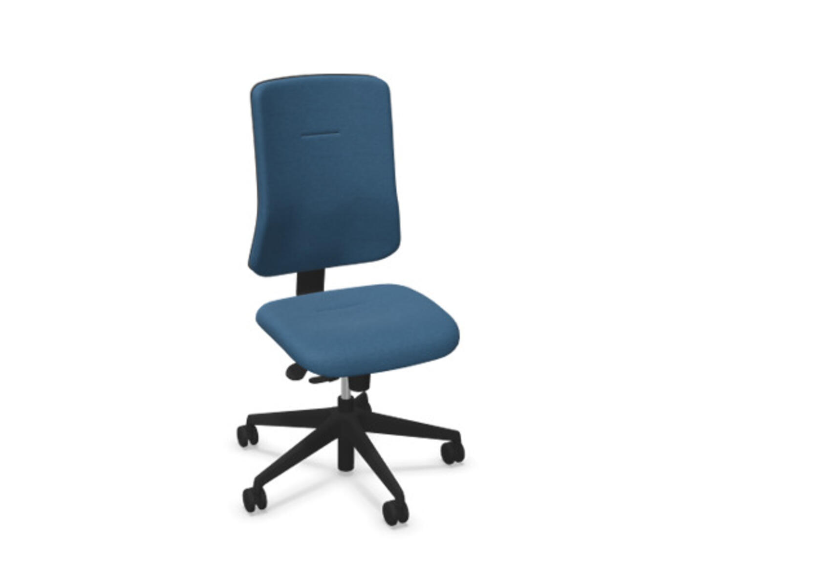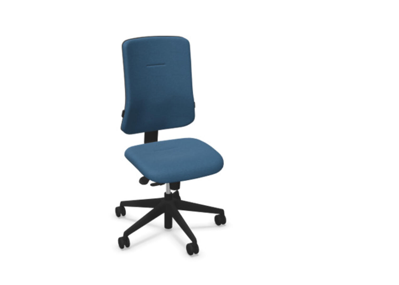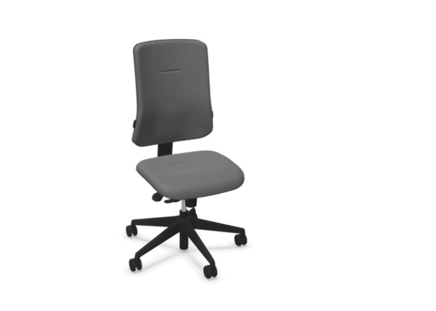 Ergonominen toimistotuoli, jossa verhoiltu selkänoja ja istuinsyvyyden säätö. Suunniteltu tukemaan aktiivista istumista koko työpäivän ajan. Verhoiltu polyesterikankaalla. Synkronoitu selkänojan ja istuimen kallistus mahdollistaa aktiivisen ja mukavan istuma-asennon. Selkänojan kallistuskulma 20° synkronoitu istuimen 11° kallistuskulman kanssa. Selkänoja lukittavissa 5 asentoon, selkänojan vastus säädettävissä säätönupilla. Selkänoja on korkeussäädettävä 70 mm ja lukittavissa 5 eri asentoon. Istuinsyvyyden säätö 50 mm. Selkänojassa on Anti-Shock-toiminto, joka estää selkänojaa palautumasta äkillisesti, kun kallistus vapautetaan. Valitse ristikko mustasta polyamidista tai kiillotetusta alumiinista sekä itsestään jarruttavat pyörät pehmeille tai koville lattioille. Lisävarusteena saatavilla lannerangan tuki, manuaalisesti säädettävä syvyyssuunnassa (15 mm) ja korkeussuunnassa (20 mm). Käsinojat (2D, 3D tai 4D) myydään erikseen.