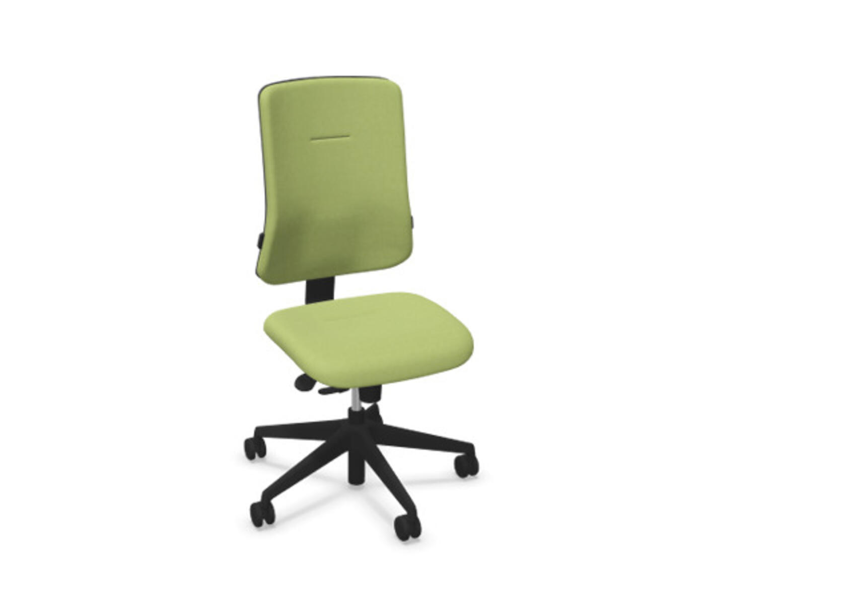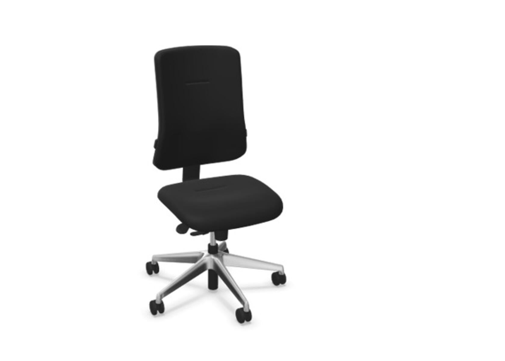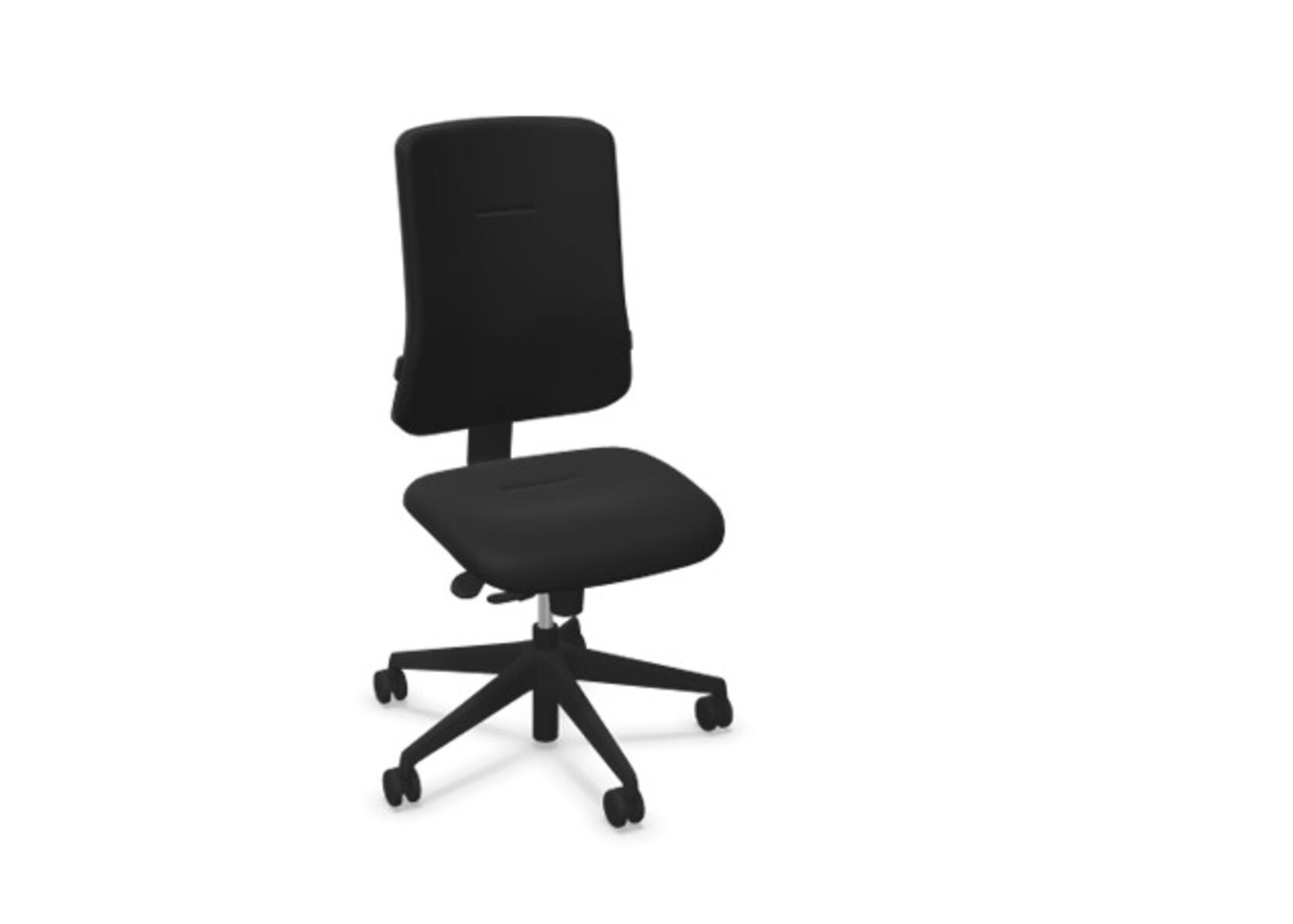 Ergonominen toimistotuoli, jossa verhoiltu selkänoja ja istuinsyvyyden säätö. Suunniteltu tukemaan aktiivista istumista koko työpäivän ajan. Verhoiltu polyesterikankaalla. Synkronoitu selkänojan ja istuimen kallistus mahdollistaa aktiivisen ja mukavan istuma-asennon. Selkänojan kallistuskulma 20° synkronoitu istuimen 11° kallistuskulman kanssa. Selkänoja lukittavissa 5 asentoon, selkänojan vastus säädettävissä säätönupilla. Selkänoja on korkeussäädettävä 70 mm ja lukittavissa 5 eri asentoon. Istuinsyvyyden säätö 50 mm. Selkänojassa on Anti-Shock-toiminto, joka estää selkänojaa palautumasta äkillisesti, kun kallistus vapautetaan. Valitse ristikko mustasta polyamidista tai kiillotetusta alumiinista sekä itsestään jarruttavat pyörät pehmeille tai koville lattioille. Lisävarusteena saatavilla lannerangan tuki, manuaalisesti säädettävä syvyyssuunnassa (15 mm) ja korkeussuunnassa (20 mm). Käsinojat (2D, 3D tai 4D) myydään erikseen.