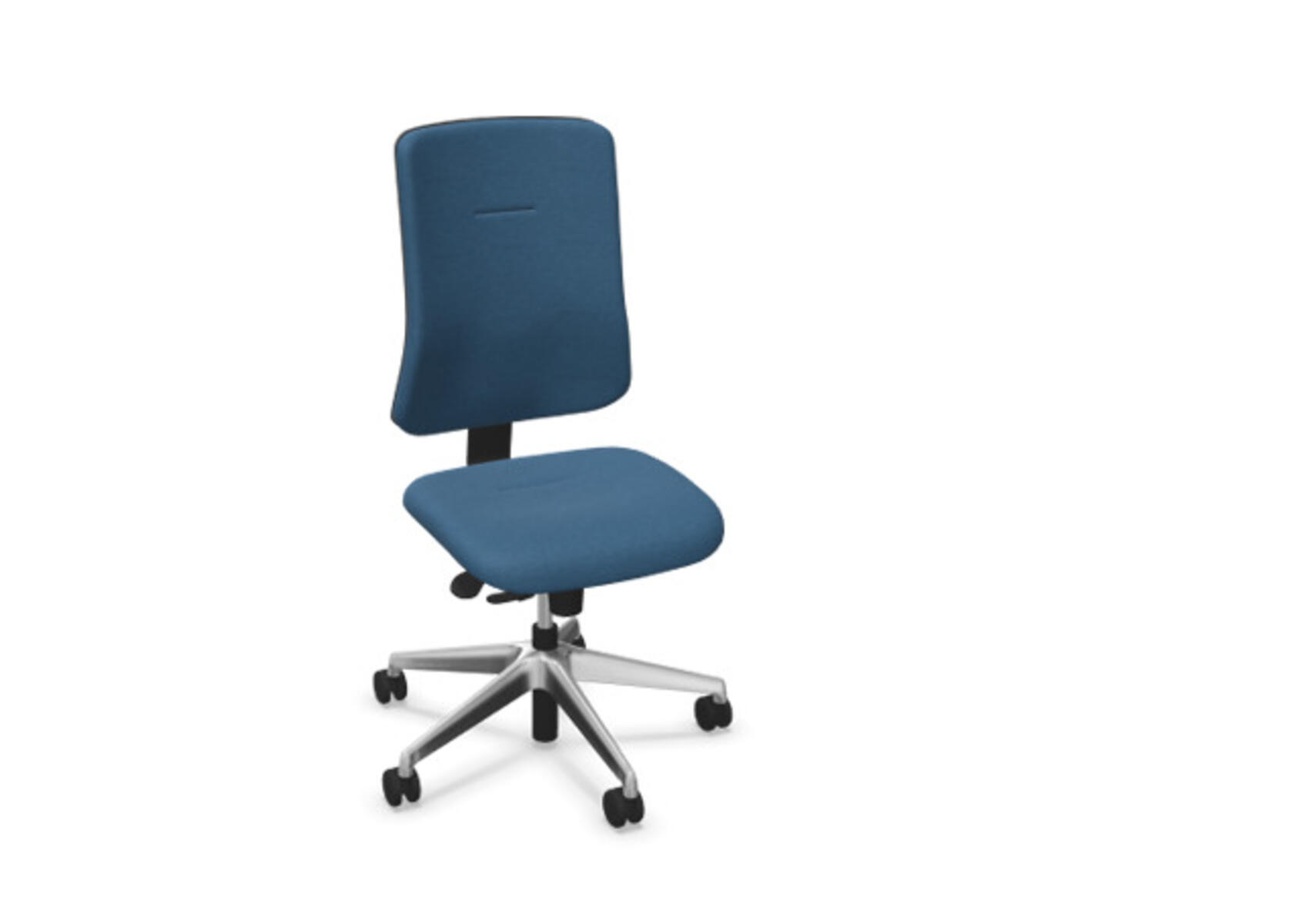 Ergonominen toimistotuoli, jossa verhoiltu selkänoja. Edistynyt synkronimekanismi takaa aktiivisen ja mukavan istuma-asennon koko työpäivän ajan. Verhoiltu polyesterikankaalla. Synkronoitu selkänojan ja istuimen kallistus mahdollistaa aktiivisen ja mukavan istuma-asennon. Selkänojan kallistuskulma 20° synkronoitu istuimen 11° kallistuskulman kanssa. Selkänoja lukittavissa 5 asentoon, selkänojan vastus säädettävissä säätönupilla. Selkänoja on korkeussäädettävä 70 mm ja lukittavissa 5 eri asentoon. Verhoiltu niskatuki, säädettävä: syvyys 20 mm, kulma 70° ja korkeus 100 mm. Selkänojassa on Anti-Shock-toiminto, joka estää selkänojaa palautumasta äkillisesti, kun kallistus vapautetaan. Valitse ristikko mustasta polyamidista tai kiillotetusta alumiinista sekä itsestään jarruttavat pyörät pehmeille tai koville lattioille. Lisävarusteena saatavilla lannerangan tuki, manuaalisesti säädettävä syvyyssuunnassa (15 mm) ja korkeussuunnassa (20 mm). Käsinojat (2D, 3D tai 4D) myydään erikseen.