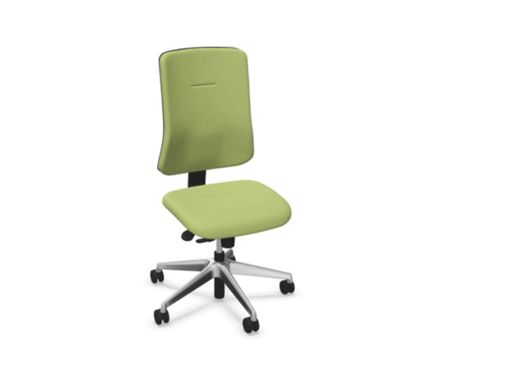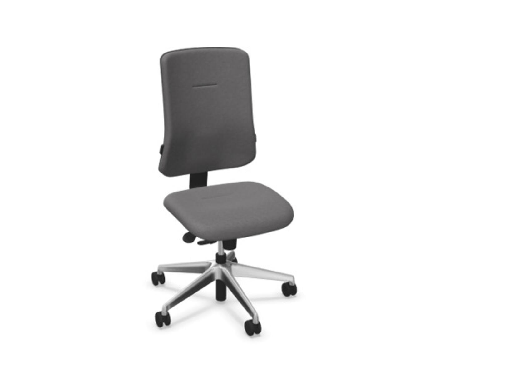 Ergonominen toimistotuoli, jossa verhoiltu selkänoja. Edistynyt synkronimekanismi takaa aktiivisen ja mukavan istuma-asennon koko työpäivän ajan. Verhoiltu polyesterikankaalla. Synkronoitu selkänojan ja istuimen kallistus mahdollistaa aktiivisen ja mukavan istuma-asennon. Selkänojan kallistuskulma 20° synkronoitu istuimen 11° kallistuskulman kanssa. Selkänoja lukittavissa 5 asentoon, selkänojan vastus säädettävissä säätönupilla. Selkänoja on korkeussäädettävä 70 mm ja lukittavissa 5 eri asentoon. Selkänojassa on Anti-Shock-toiminto, joka estää selkänojaa palautumasta äkillisesti, kun kallistus vapautetaan. Valitse ristikko vaaleanharmaasta polyamidista tai kiillotetusta alumiinista sekä itsestään jarruttavat pyörät pehmeille tai koville lattioille. Lisävarusteena saatavilla lannerangan tuki, manuaalisesti säädettävä syvyyssuunnassa (15 mm) ja korkeussuunnassa (20 mm). Käsinojat (2D, 3D tai 4D) myydään erikseen.