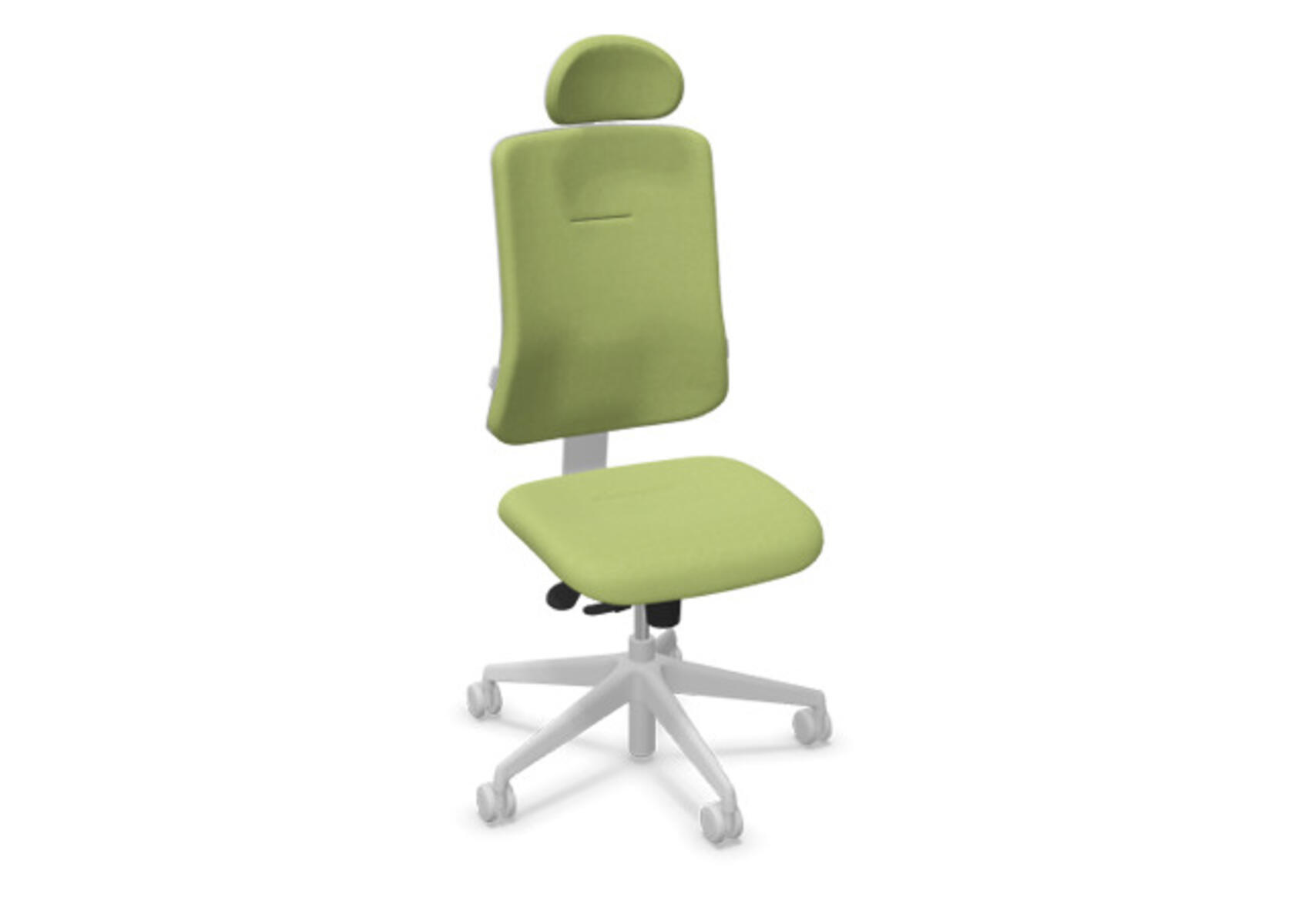 Ergonominen toimistotuoli, jossa verhoiltu selkänoja ja istuinsyvyyden säätö. Suunniteltu tukemaan aktiivista istumista koko työpäivän ajan. Verhoiltu polyesterikankaalla. Synkronoitu selkänojan ja istuimen kallistus mahdollistaa aktiivisen ja mukavan istuma-asennon. Selkänojan kallistuskulma 20° synkronoitu istuimen 11° kallistuskulman kanssa. Selkänoja lukittavissa 5 asentoon, selkänojan vastus säädettävissä säätönupilla. Selkänoja on korkeussäädettävä 70 mm ja lukittavissa 5 eri asentoon. Verhoiltu niskatuki, säädettävä: syvyys 20 mm, kulma 70° ja korkeus 100 mm. Istuinsyvyyden säätö 50 mm. Selkänojassa on Anti-Shock-toiminto, joka estää selkänojaa palautumasta äkillisesti, kun kallistus vapautetaan. Valitse ristikko vaaleanharmaasta polyamidista tai kiillotetusta alumiinista sekä itsestään jarruttavat pyörät pehmeille tai koville lattioille. Lisävarusteena saatavilla lannerangan tuki, manuaalisesti säädettävä syvyyssuunnassa (15 mm) ja korkeussuunnassa (20 mm). Käsinojat (2D, 3D tai 4D) myydään erikseen.