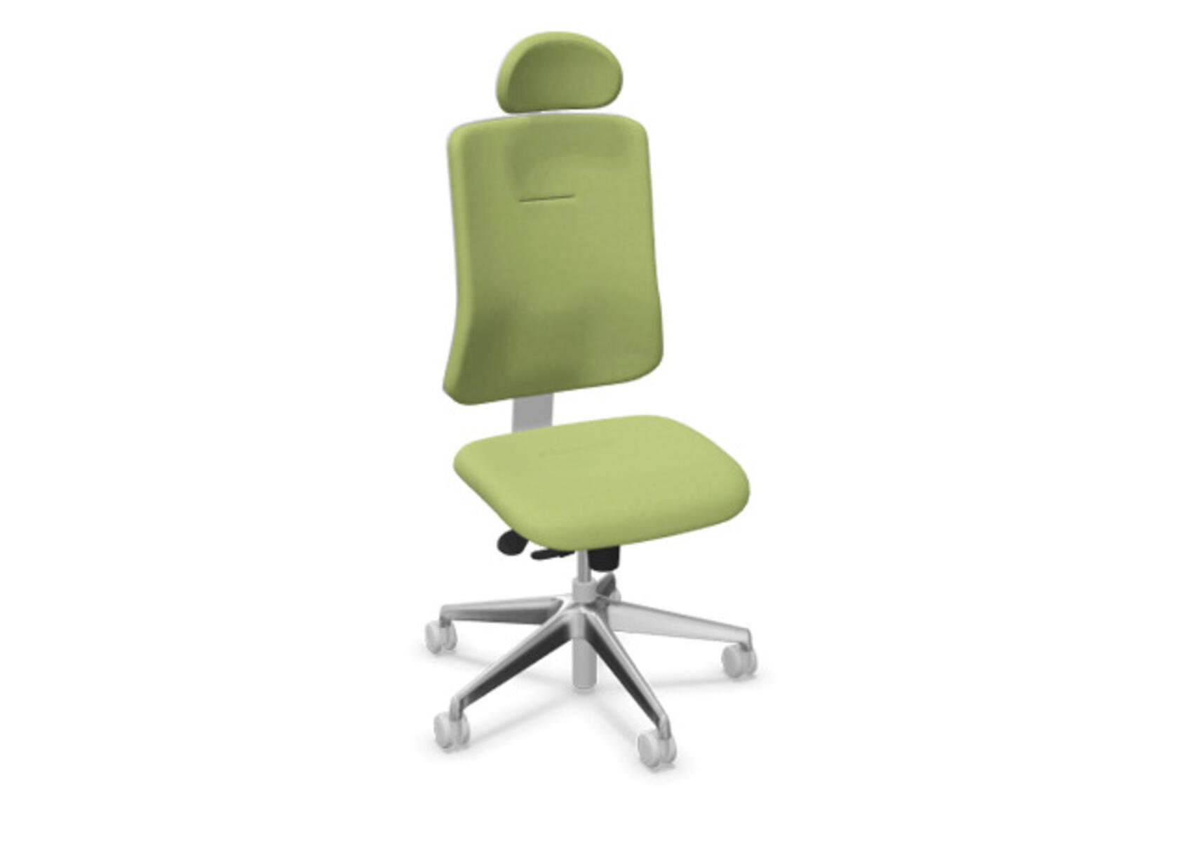 Ergonominen toimistotuoli, jossa verhoiltu selkänoja. Edistynyt synkronimekanismi takaa aktiivisen ja mukavan istuma-asennon koko työpäivän ajan. Verhoiltu polyesterikankaalla. Synkronoitu selkänojan ja istuimen kallistus mahdollistaa aktiivisen ja mukavan istuma-asennon. Selkänojan kallistuskulma 20° synkronoitu istuimen 11° kallistuskulman kanssa. Selkänoja lukittavissa 5 asentoon, selkänojan vastus säädettävissä säätönupilla. Selkänoja on korkeussäädettävä 70 mm ja lukittavissa 5 eri asentoon. Selkänojassa on Anti-Shock-toiminto, joka estää selkänojaa palautumasta äkillisesti, kun kallistus vapautetaan. Valitse ristikko vaaleanharmaasta polyamidista tai kiillotetusta alumiinista sekä itsestään jarruttavat pyörät pehmeille tai koville lattioille. Lisävarusteena saatavilla lannerangan tuki, manuaalisesti säädettävä syvyyssuunnassa (15 mm) ja korkeussuunnassa (20 mm). Käsinojat (2D, 3D tai 4D) myydään erikseen.