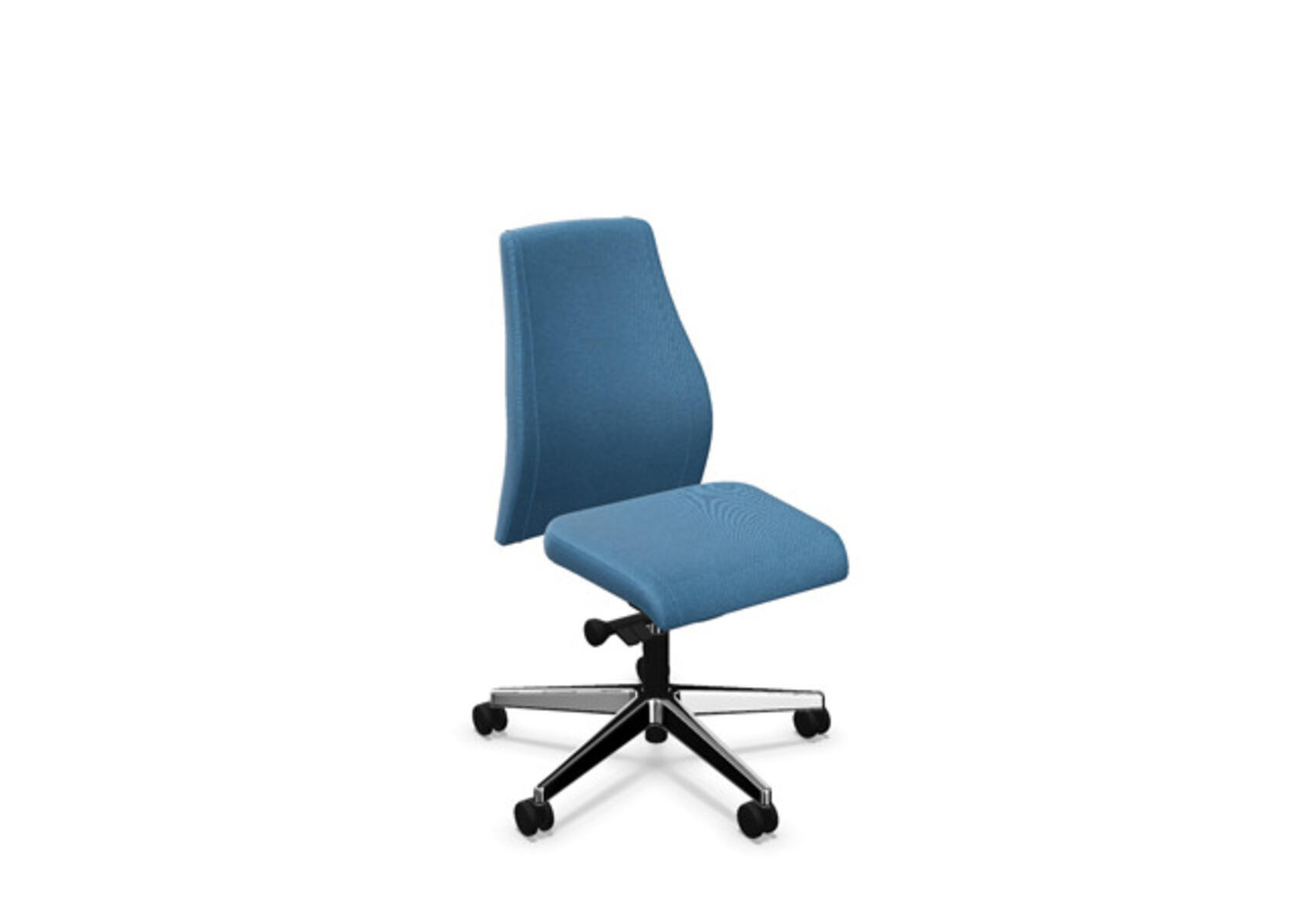 Tyylikäs ja ergonominen toimistotuoli, jossa ympäriverhoiltu matala selkänoja. Synkronimekanismi tarjoaa optimaalista tukea aktiiviseen istumiseen koko työpäivän ajan. Verhoiltu kestävällä polyesterikankaalla. Synkronoitu selkänojan ja istuimen kallistus mahdollistaa aktiivisen ja mukavan istuma-asennon. Selkänojan kallistuskulma 23° synkronoitu istuinosan kallistuskulmaan 10°. Selkänoja lukittavissa 5 eri asentoon, mahdollistaen yksilöllisen säädön, ja vastusta voi säätää helposti säätönupilla 7 eri kohtaan. Selkänoja on korkeussäädettävä 70 mm ja lukittavissa 13 eri asentoon. Istuinsyvyys säädettävissä 60 mm. Negatiivinen istuinosan kallistus –2°, synkronoitu selkänojan 5° kallistukseen. Tämä takaa optimaalisen tuen kaikissa kallistuskulmissa. Tuolissa on Anti-Shock-toiminto, joka estää selkänojaa palautumasta äkillisesti, kun kallistuslukitus vapautetaan. Valittavissa musta polyamidinen tai kiillotettu alumiiniristikko sekä itsestään jarruttavat pyörät pehmeille tai koville lattioille. Lisävarusteena saatavilla lannerangan tuki, joka on manuaalisesti säädettävissä syvyyssuunnassa (20 mm) säätönupin avulla. Käsinojat (2D, 3D tai 4D) myydään erikseen.