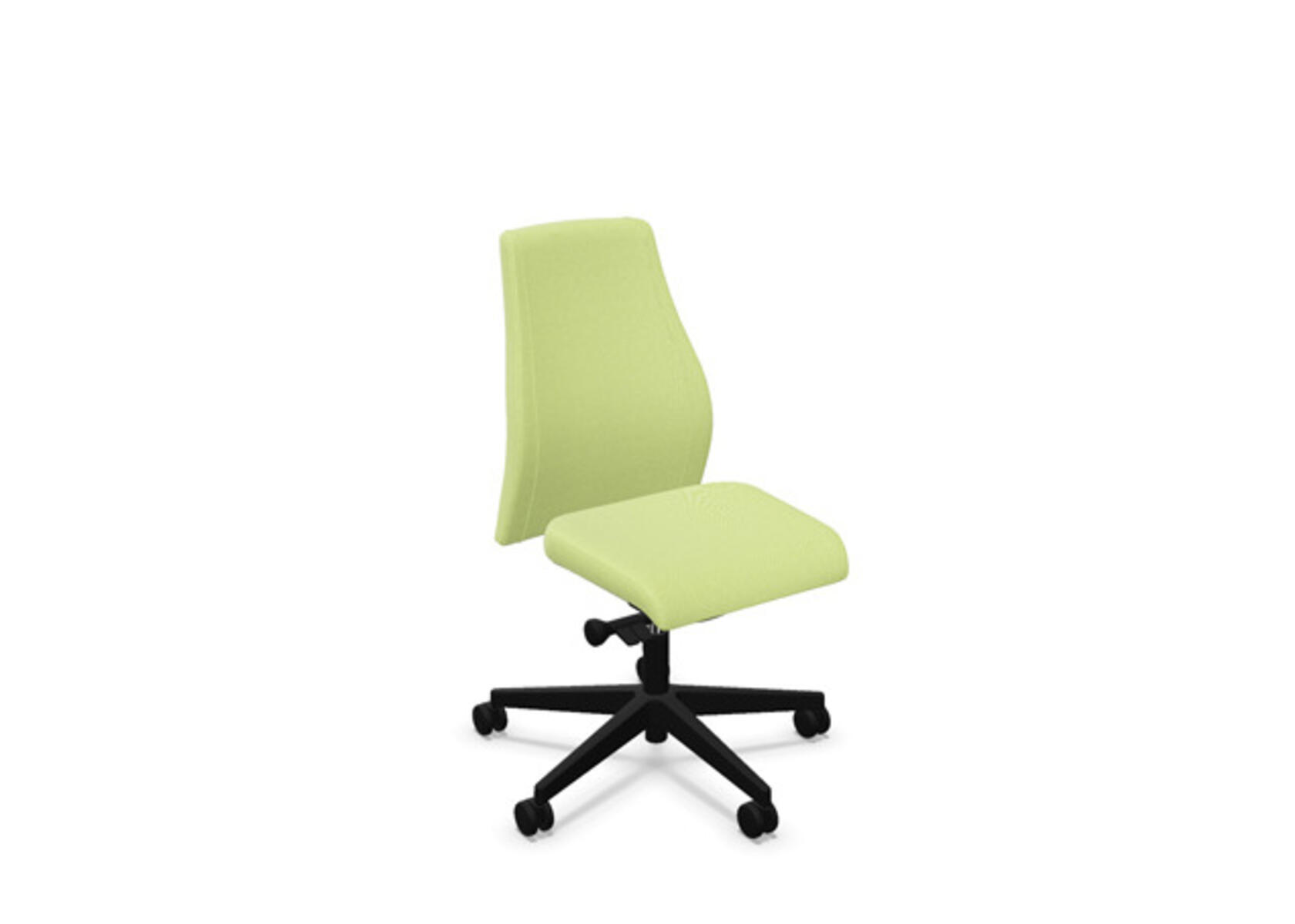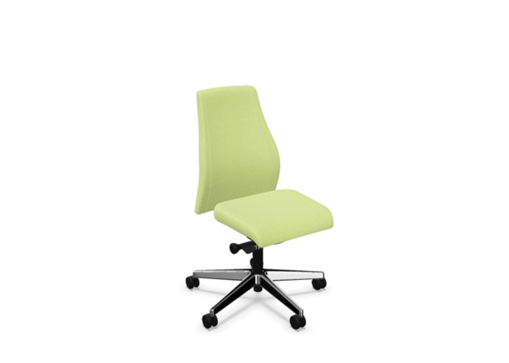 Tyylikäs ja ergonominen toimistotuoli, jossa ympäriverhoiltu matala selkänoja. Synkronimekanismi tarjoaa optimaalista tukea aktiiviseen istumiseen koko työpäivän ajan. Verhoiltu kestävällä polyesterikankaalla. Synkronoitu selkänojan ja istuimen kallistus mahdollistaa aktiivisen ja mukavan istuma-asennon. Selkänojan kallistuskulma 20° synkronoitu istuimen 11° kulmaan. Selkänoja lukittavissa 5 eri asentoon, mahdollistaen yksilöllisen säädön, ja vastusta voi säätää helposti säätönupilla. Selkänoja on korkeussäädettävä 70 mm ja lukittavissa 13 eri asentoon. Tuolissa on Anti-Shock-toiminto, joka estää selkänojaa palautumasta äkillisesti, kun kallistuslukitus vapautetaan. Valittavissa musta polyamidinen tai kiillotettu alumiiniristikko sekä itsestään jarruttavat pyörät pehmeille tai koville lattioille. Lisävarusteena saatavilla lannerangan tuki, joka on manuaalisesti säädettävissä syvyyssuunnassa (20 mm) säätönupin avulla. Käsinojat (2D, 3D tai 4D) myydään erikseen.