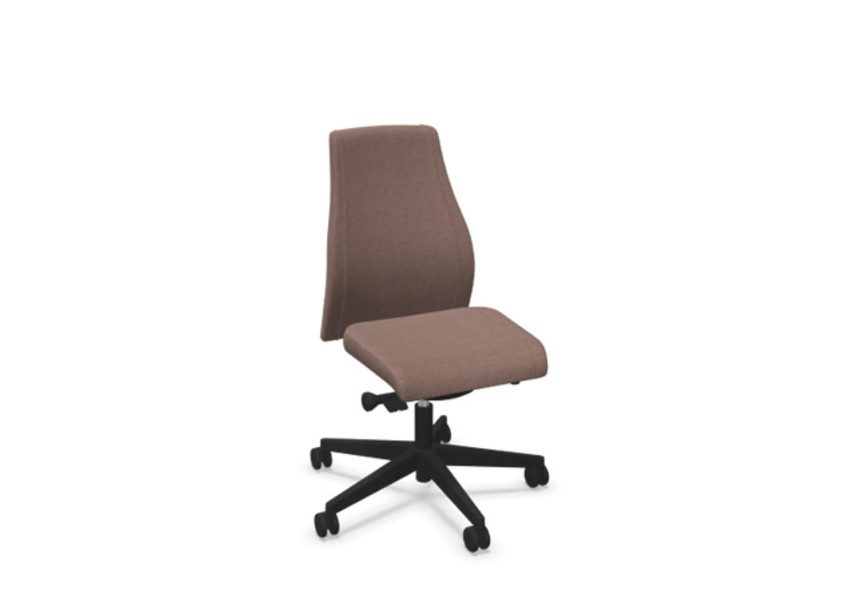 Tyylikäs ja ergonominen toimistotuoli, jossa ympäriverhoiltu korkea selkänoja. Synkronimekanismi tarjoaa optimaalista tukea aktiiviseen istumiseen koko työpäivän ajan. Verhoiltu kestävällä polyesterikankaalla. Synkronoitu selkänojan ja istuimen kallistus mahdollistaa aktiivisen ja mukavan istuma-asennon. Selkänojan kallistuskulma 20° synkronoitu istuimen 11° kulmaan. Selkänoja lukittavissa 5 eri asentoon, mahdollistaen yksilöllisen säädön, ja vastusta voi säätää helposti säätönupilla. Selkänoja on korkeussäädettävä 70 mm ja lukittavissa 13 eri asentoon. Säädettävä, verhoiltu niskatuki, jossa kulma- ja korkeussäätö 75 mm. Tuolissa on Anti-Shock-toiminto, joka estää selkänojaa palautumasta äkillisesti, kun kallistuslukitus vapautetaan. Valittavissa musta polyamidinen tai kiillotettu alumiiniristikko sekä itsestään jarruttavat pyörät pehmeille tai koville lattioille. Lisävarusteena saatavilla lannerangan tuki, joka on manuaalisesti säädettävissä syvyyssuunnassa (20 mm) säätönupin avulla. Käsinojat (2D, 3D tai 4D) myydään erikseen.