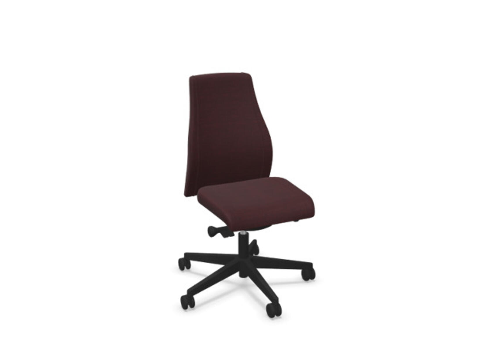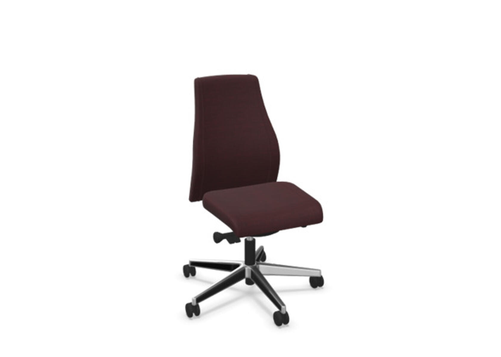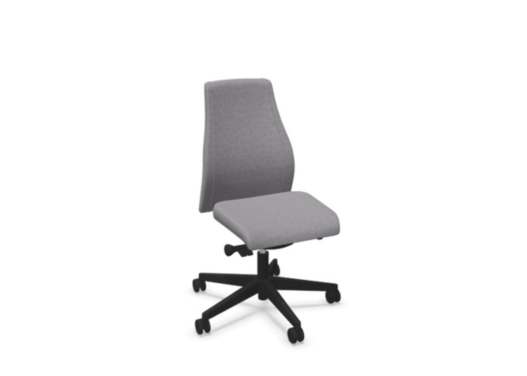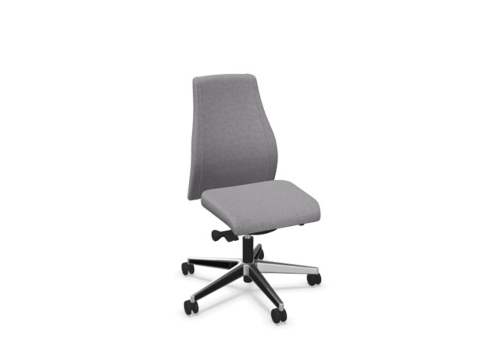 Tyylikäs ja ergonominen toimistotuoli, jossa ympäriverhoiltu keskikorkea selkänoja. Synkronimekanismi tarjoaa optimaalista tukea aktiiviseen istumiseen koko työpäivän ajan. Verhoiltu villakankaalla. Synkronoitu selkänojan ja istuimen kallistus mahdollistaa aktiivisen ja mukavan istuma-asennon. Selkänojan kallistuskulma 23° synkronoitu istuinosan kallistuskulmaan 10°. Selkänoja lukittavissa 5 eri asentoon, mahdollistaen yksilöllisen säädön, ja vastusta voi säätää helposti säätönupilla 7 eri kohtaan. Selkänoja on korkeussäädettävä 70 mm ja lukittavissa 13 eri asentoon. Istuinsyvyys säädettävissä 60 mm. Negatiivinen istuinosan kallistus –2°, synkronoitu selkänojan 5° kallistukseen. Tämä takaa optimaalisen tuen kaikissa kallistuskulmissa. Tuolissa on Anti-Shock-toiminto, joka estää selkänojaa palautumasta äkillisesti, kun kallistuslukitus vapautetaan. Valittavissa musta polyamidinen tai kiillotettu alumiiniristikko sekä itsestään jarruttavat pyörät pehmeille tai koville lattioille. Lisävarusteena saatavilla lannerangan tuki, joka on manuaalisesti säädettävissä syvyyssuunnassa (20 mm) säätönupin avulla. Käsinojat (2D, 3D tai 4D) myydään erikseen.